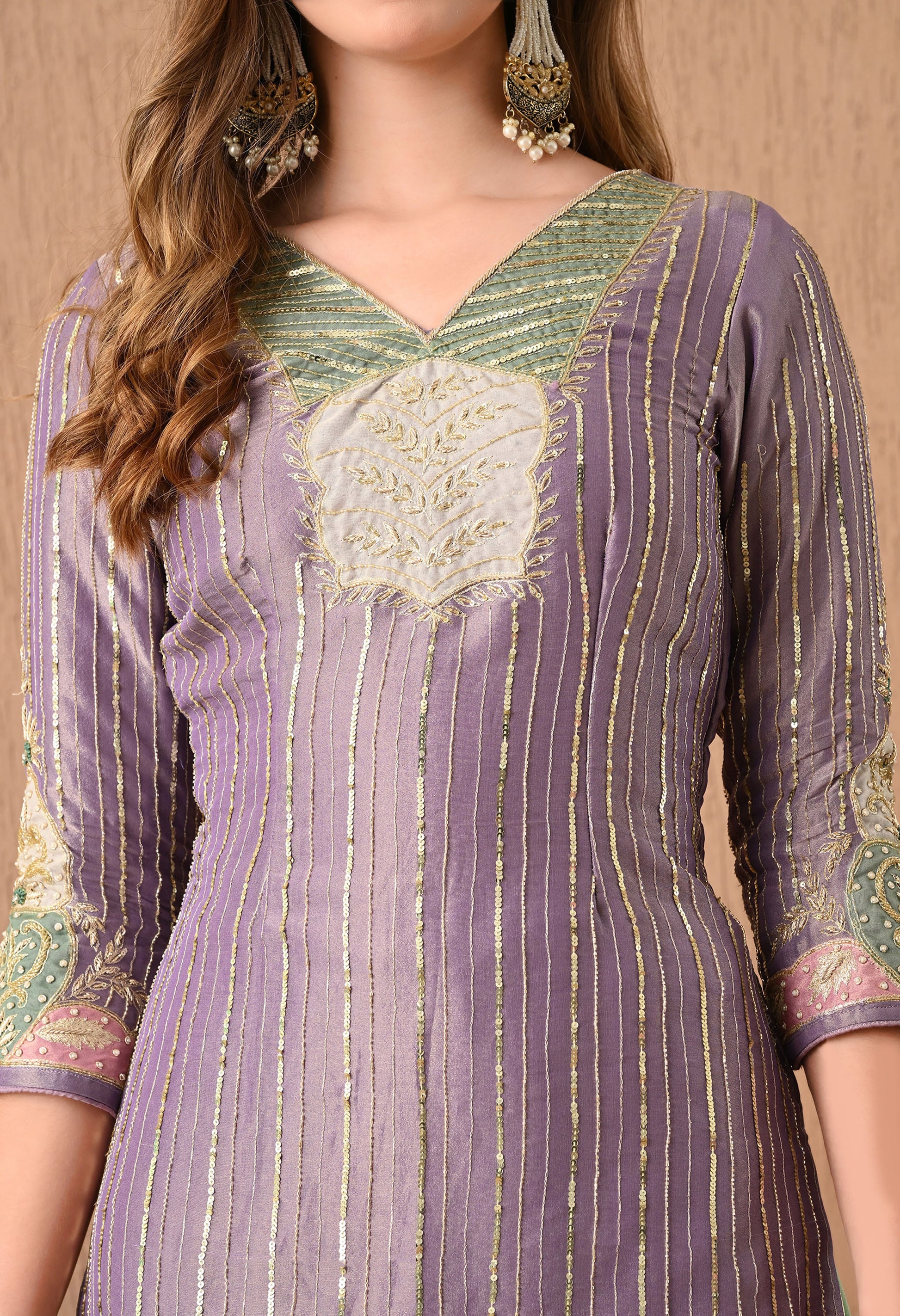 Exquisite Purple Lehnga Set with Zardozi, Sequence, and Applique Work
