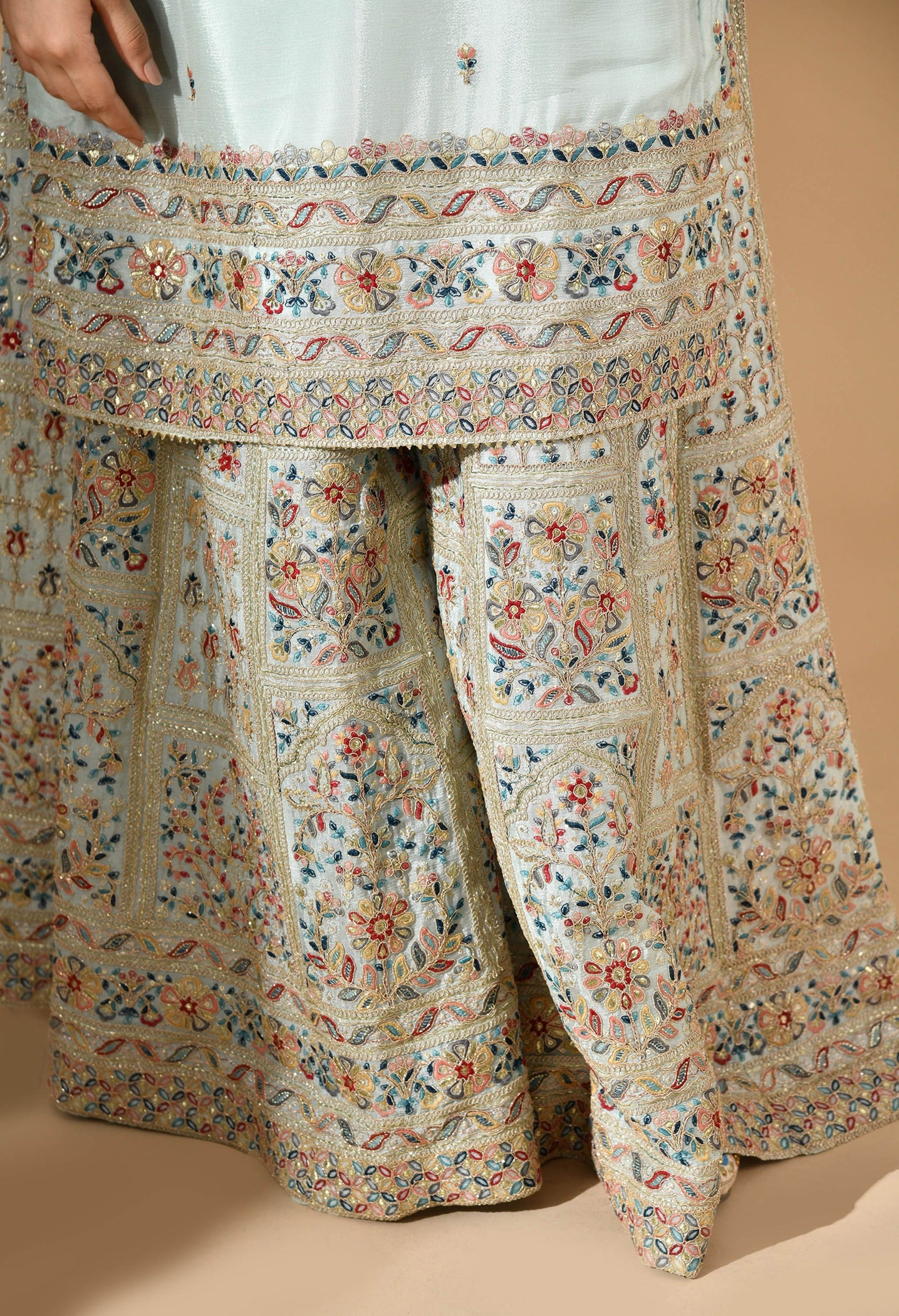 Aqua Blue Sharara Set with Zardozi, Crystal & Pearl Work