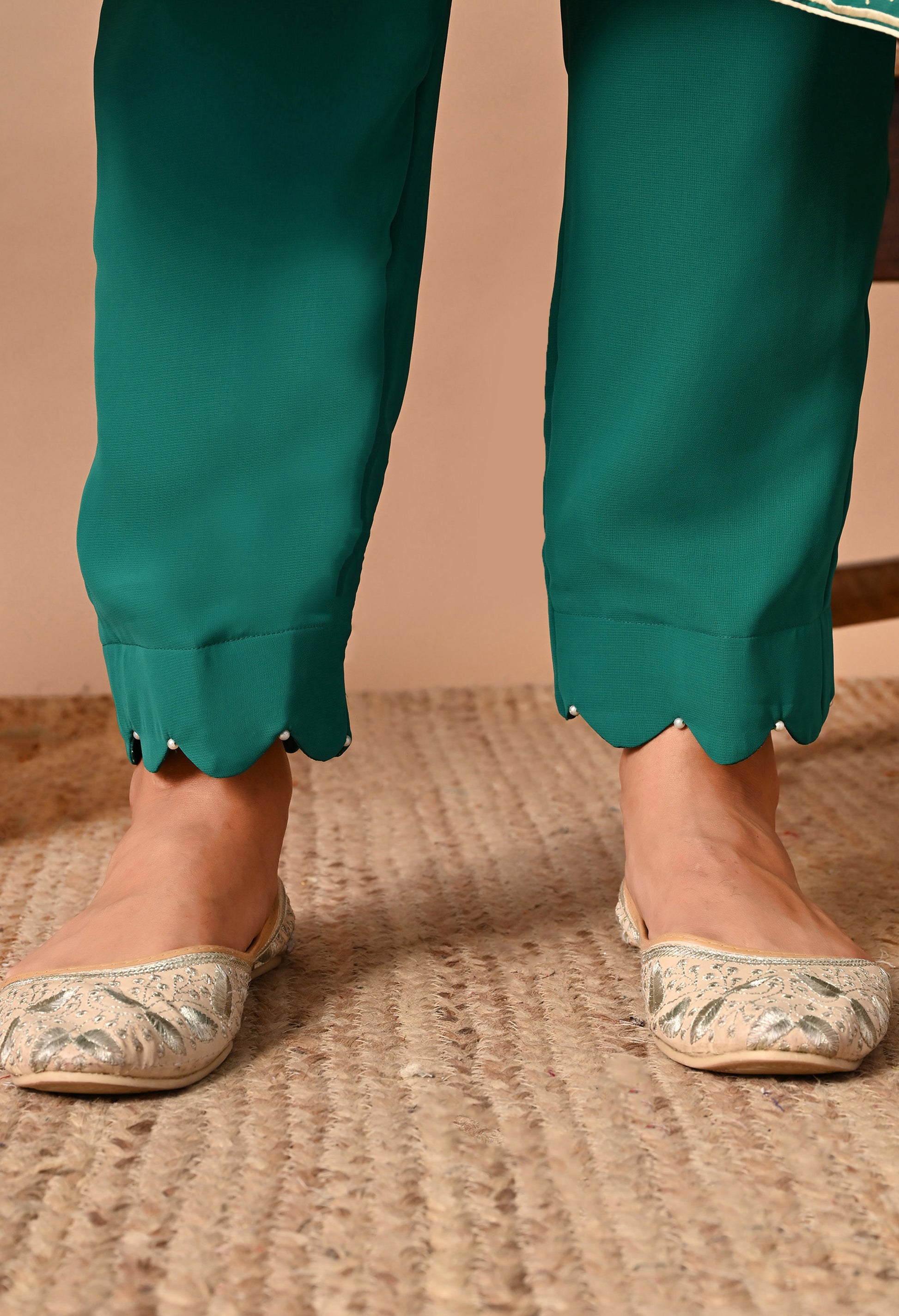 Beautiful Green Kurta Set with Excellent Craftsmanship of Parsi Work