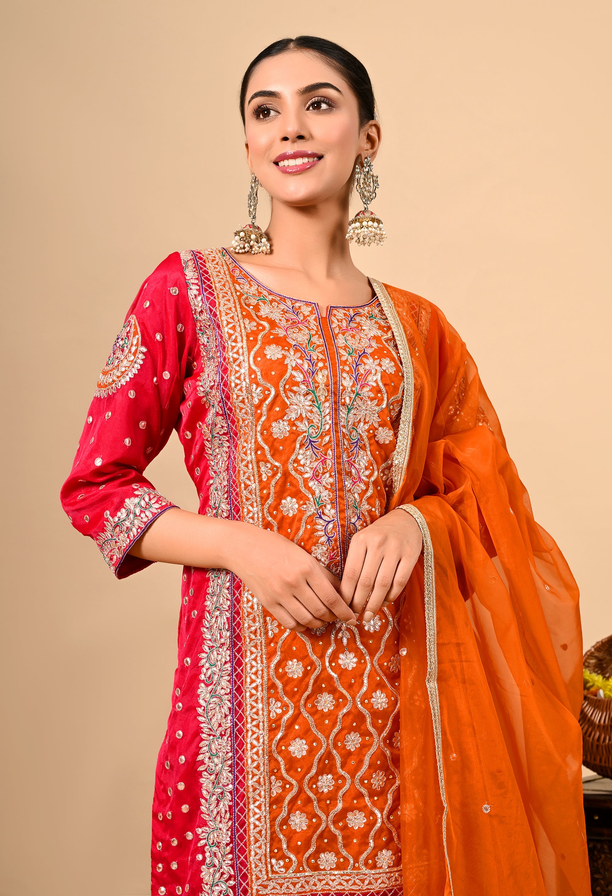 Beautiful Reddish Orange Kurta Set with Gota Patti, Thread, Zardozi, and Dabka Work