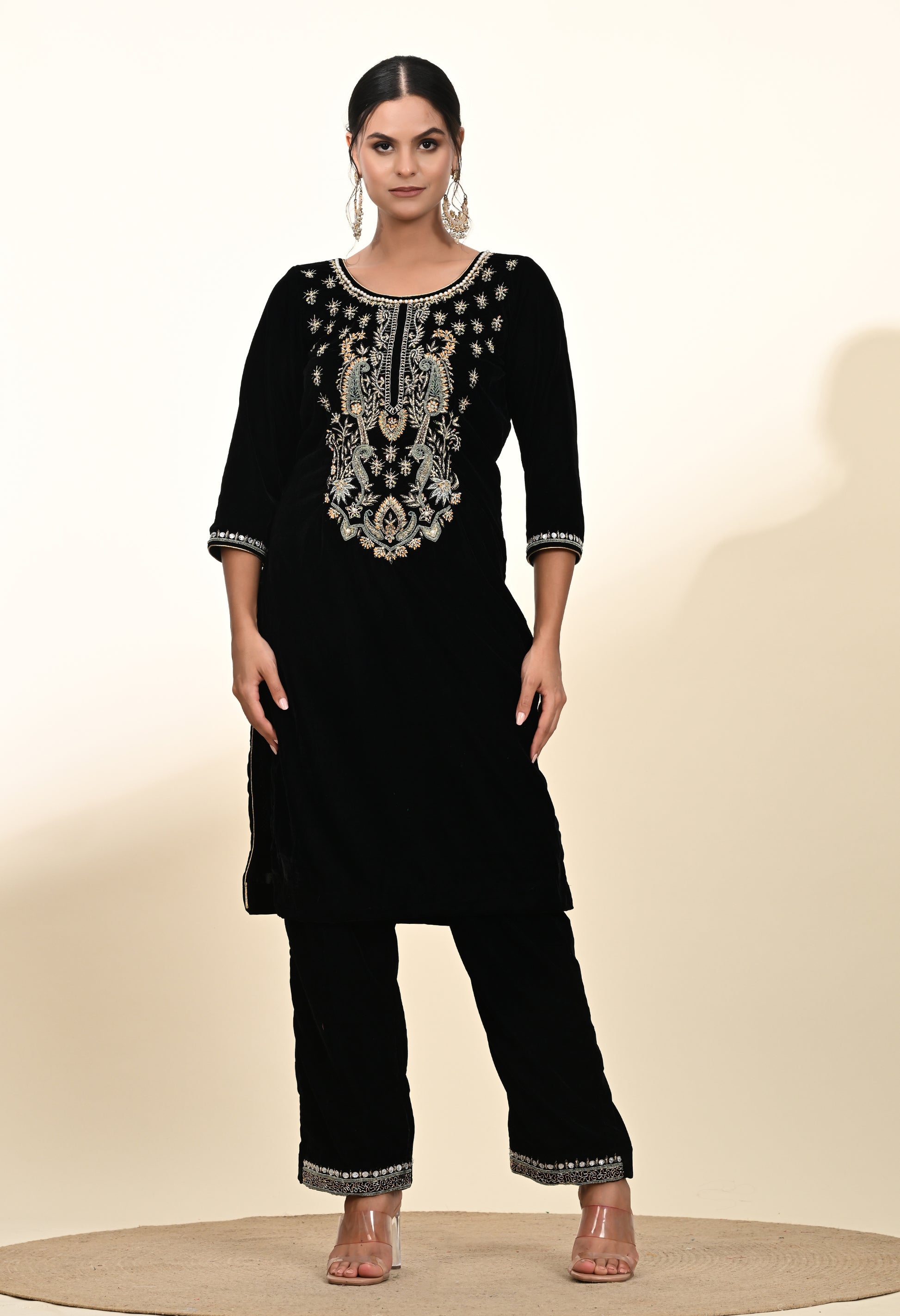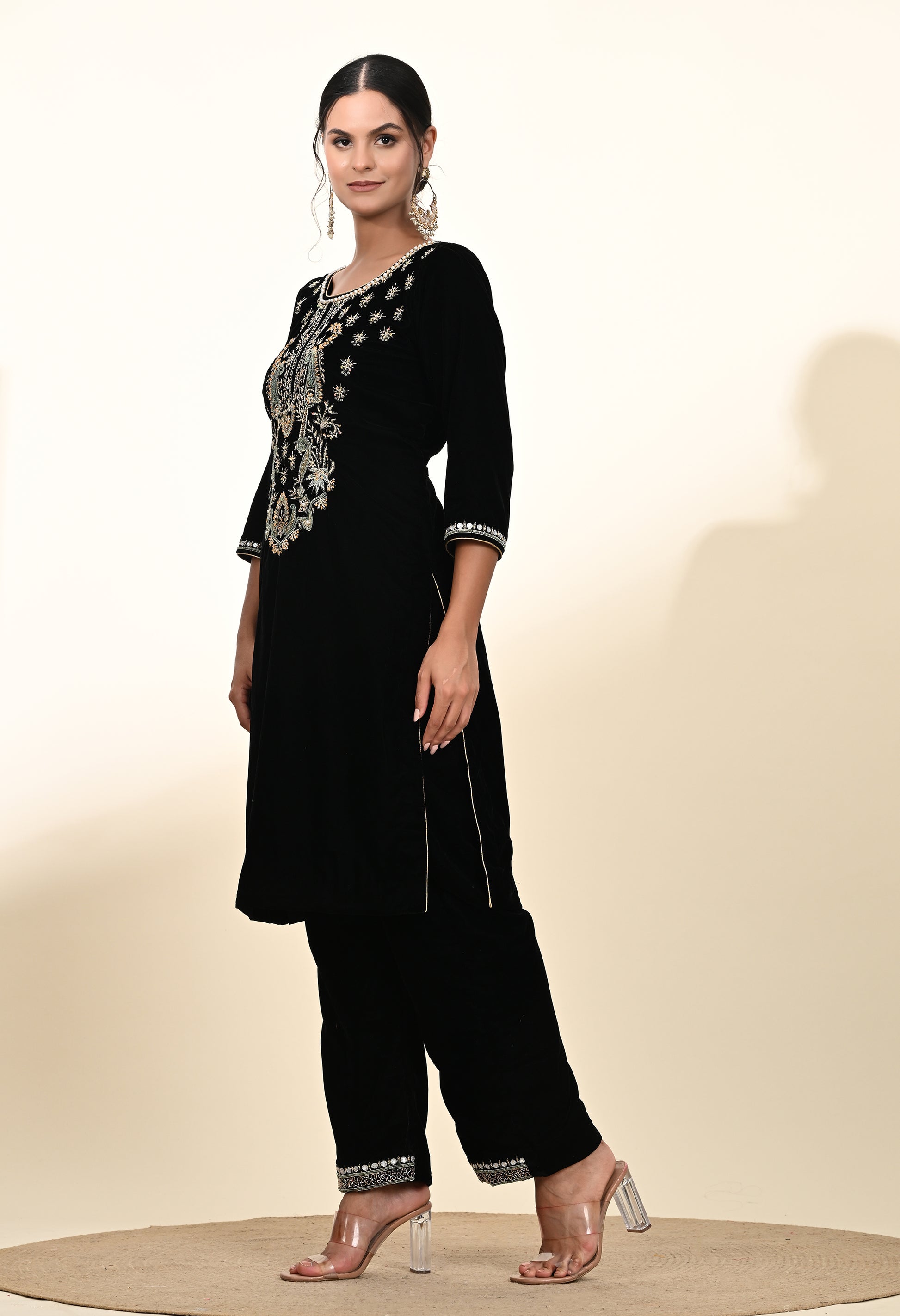 Chic Black Kurta Set with Elegant Zardozi Embroidery