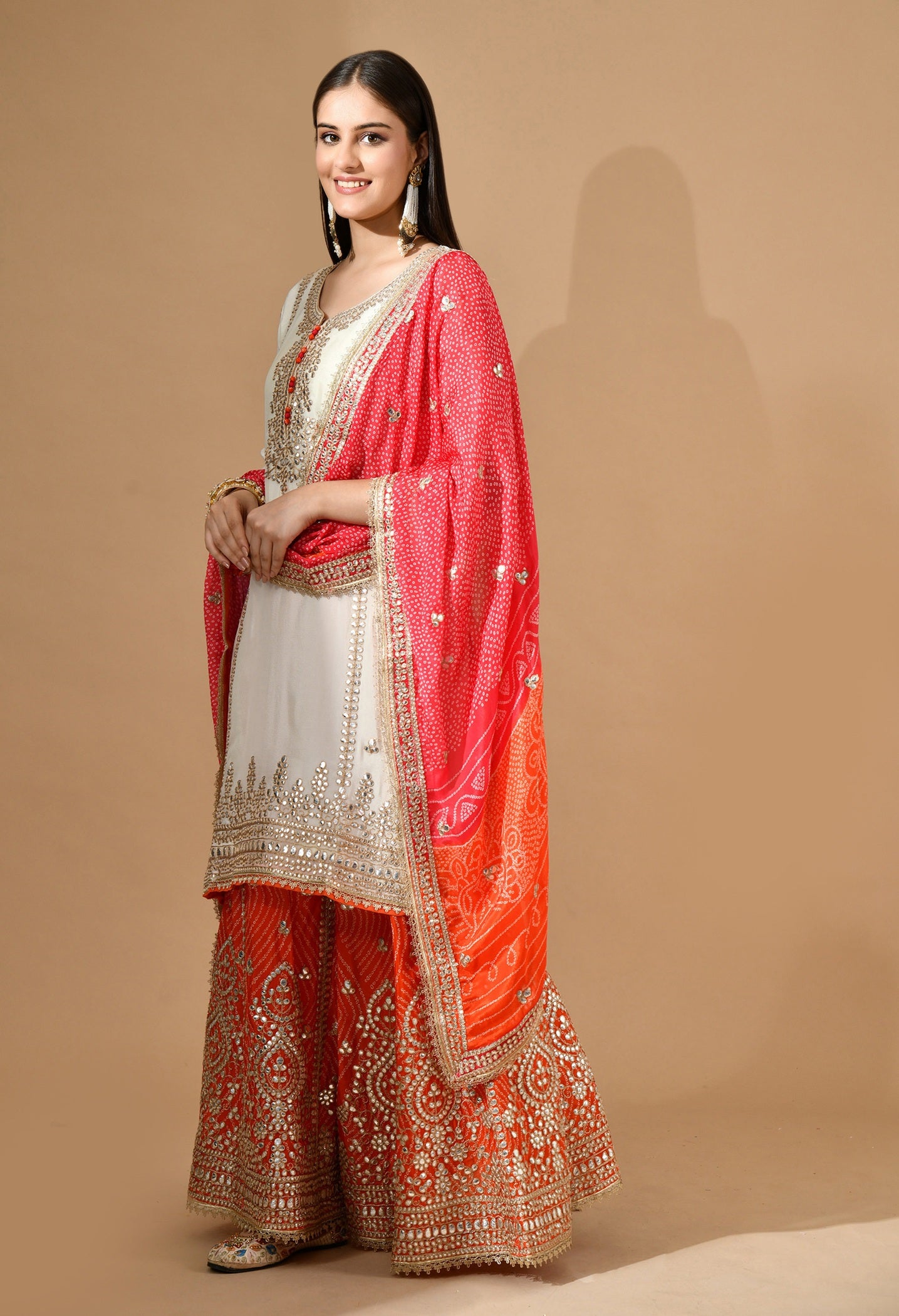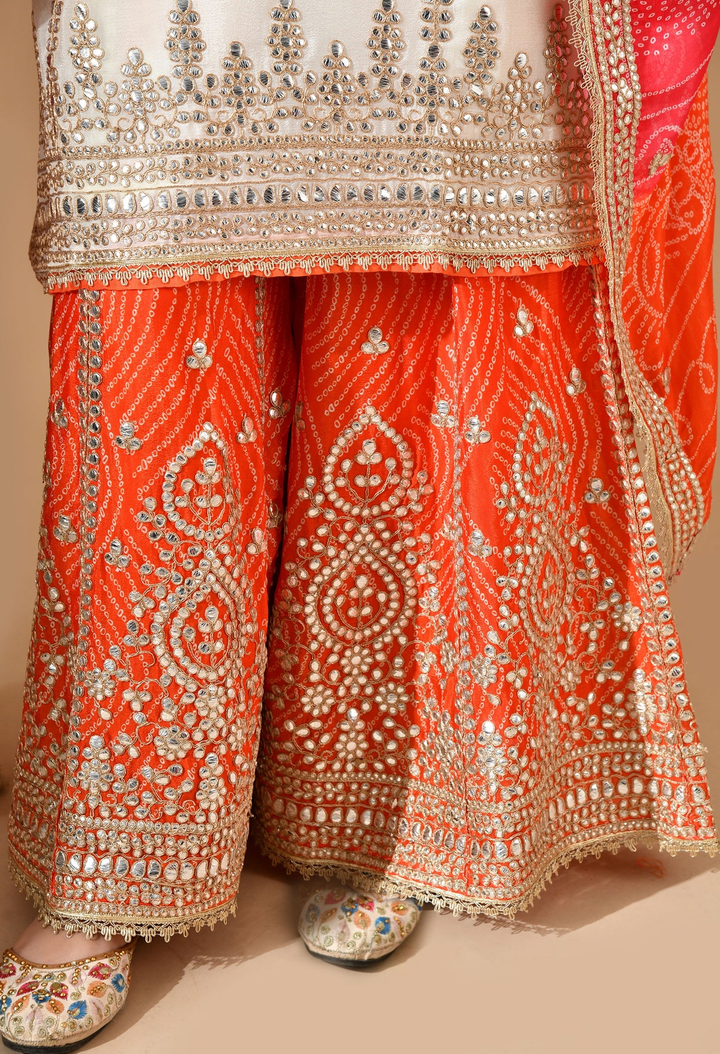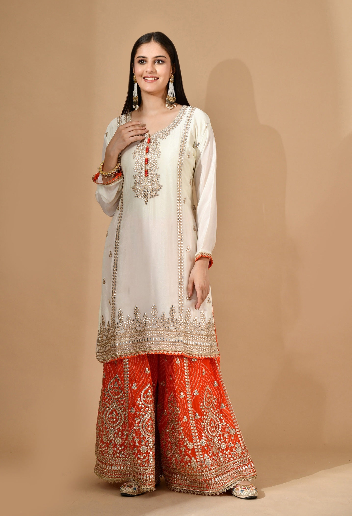 Cream Chinon Sharara Set with Gotta & Zari Work