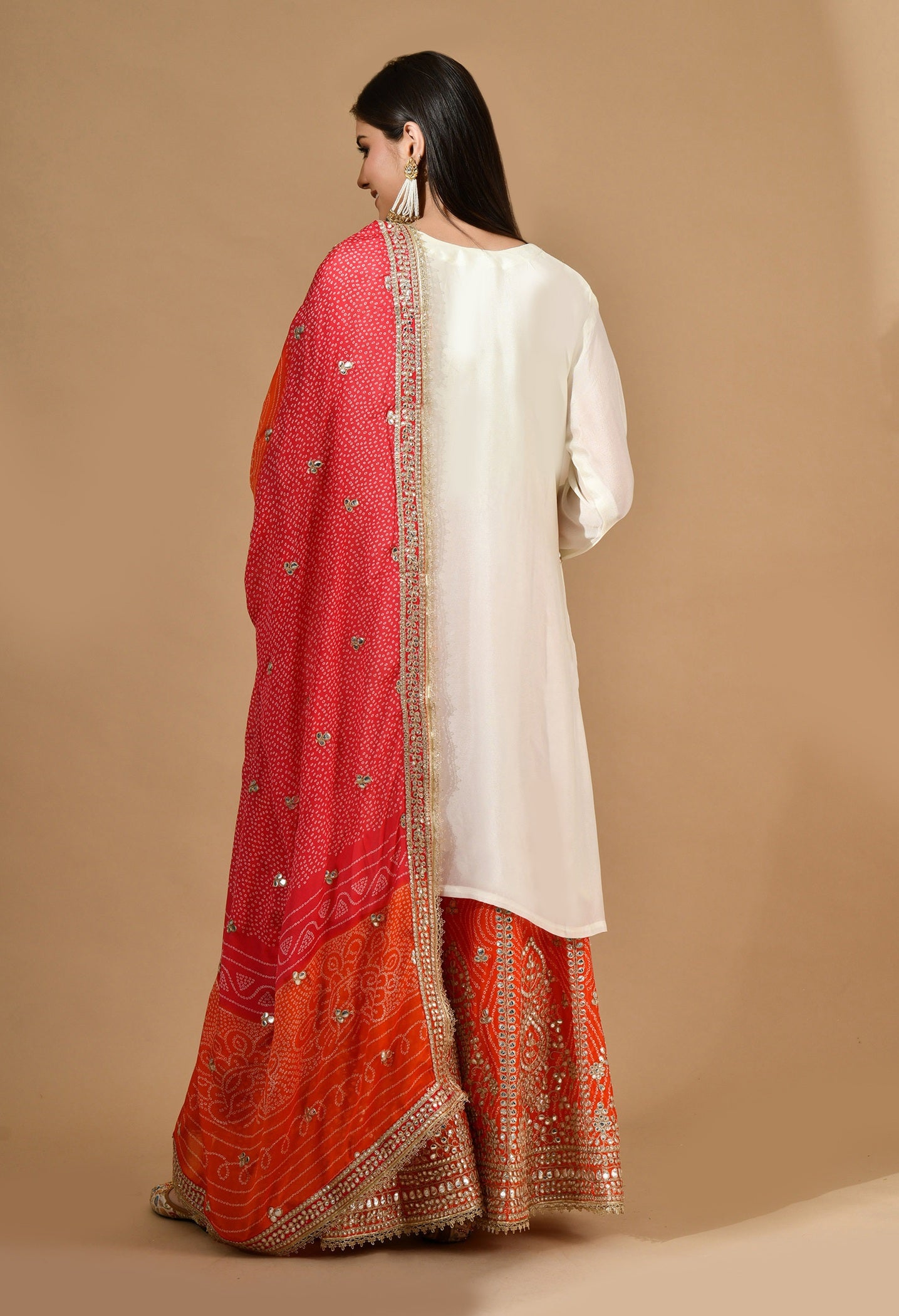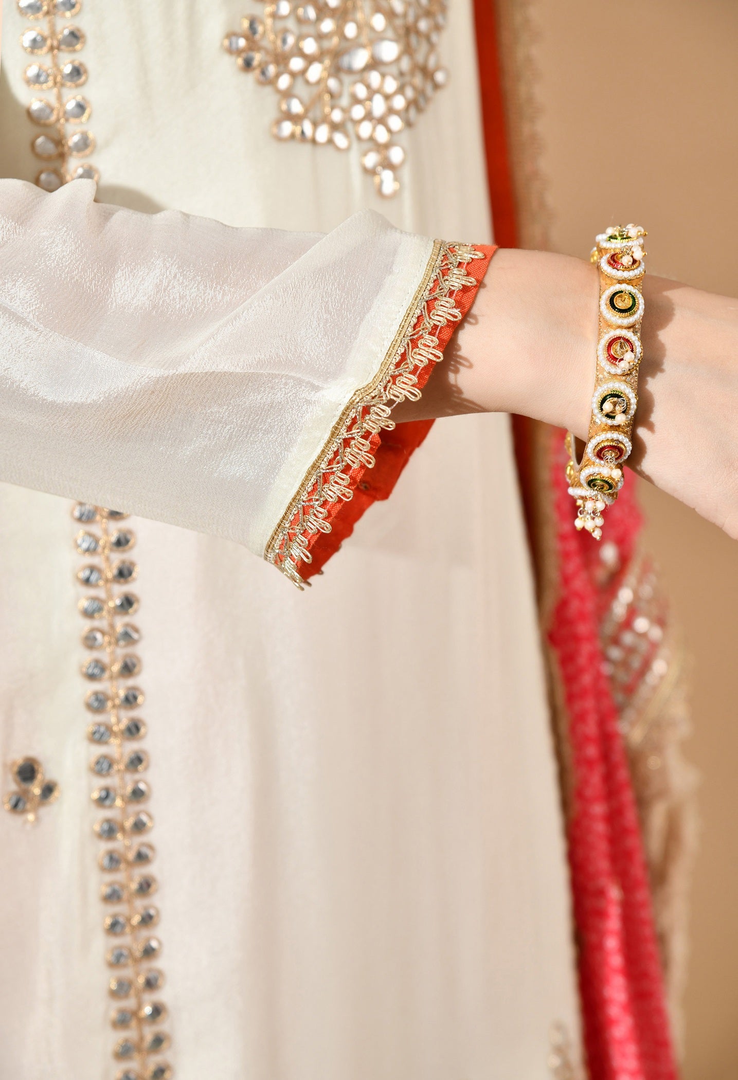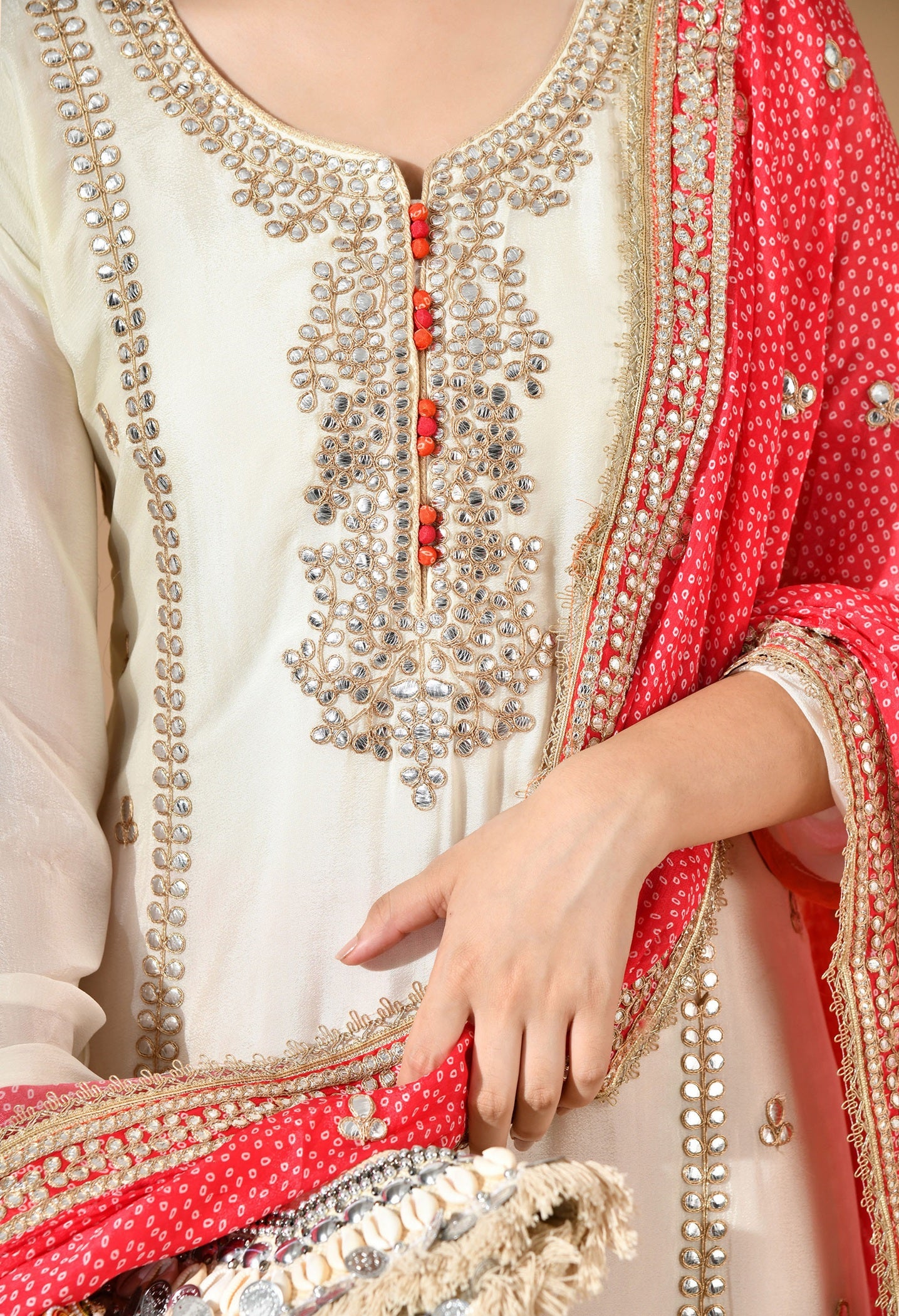 Cream Chinon Sharara Set with Gotta & Zari Work