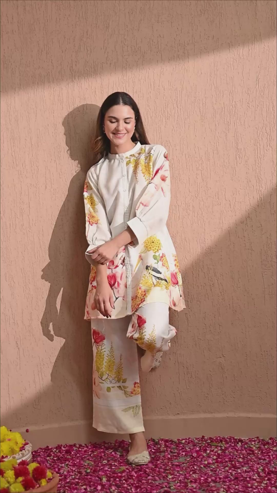 - Graceful floral printed Bottom with pockets