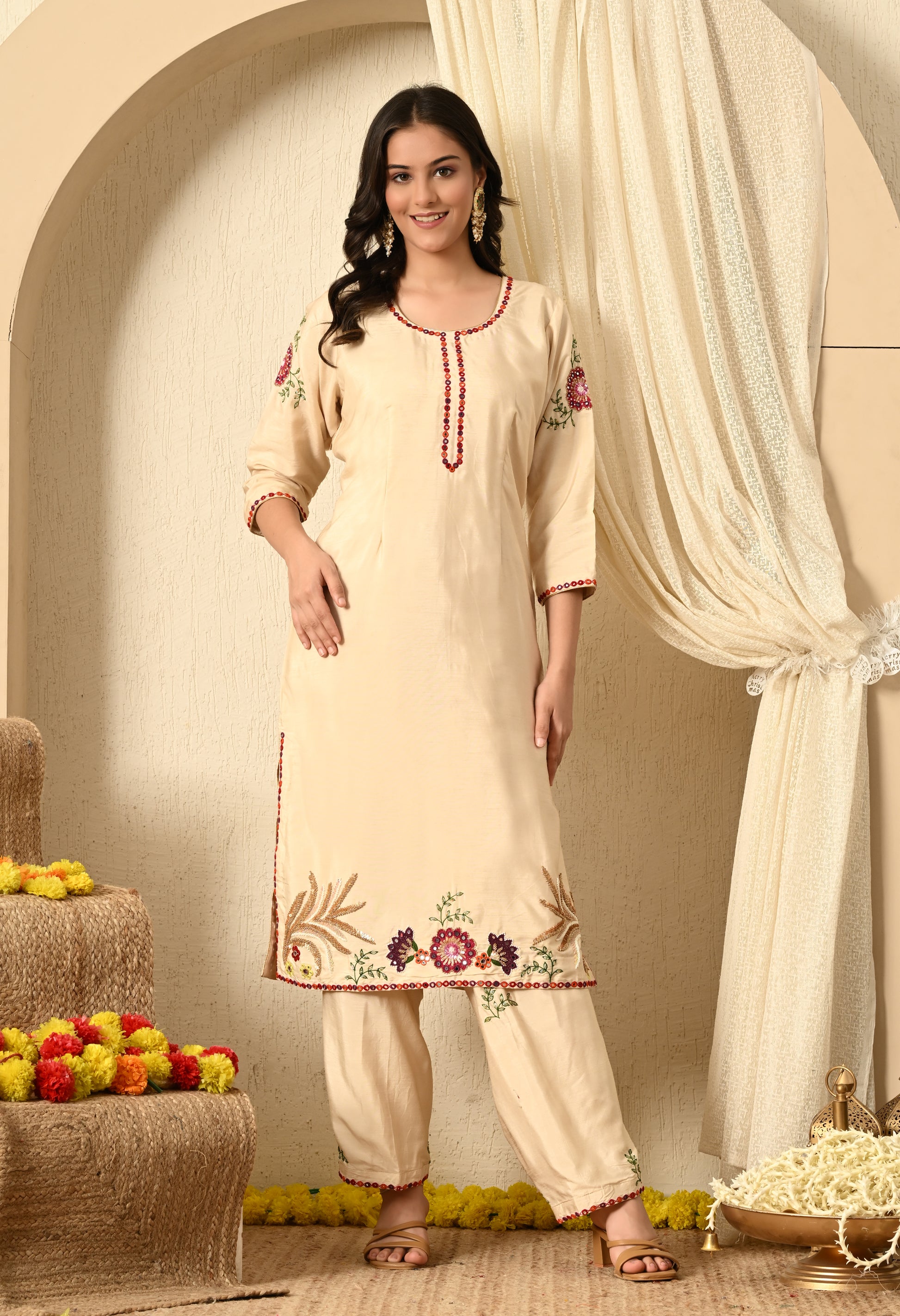 - Lower Detail - Straight Pant with Embroidery on Bottom