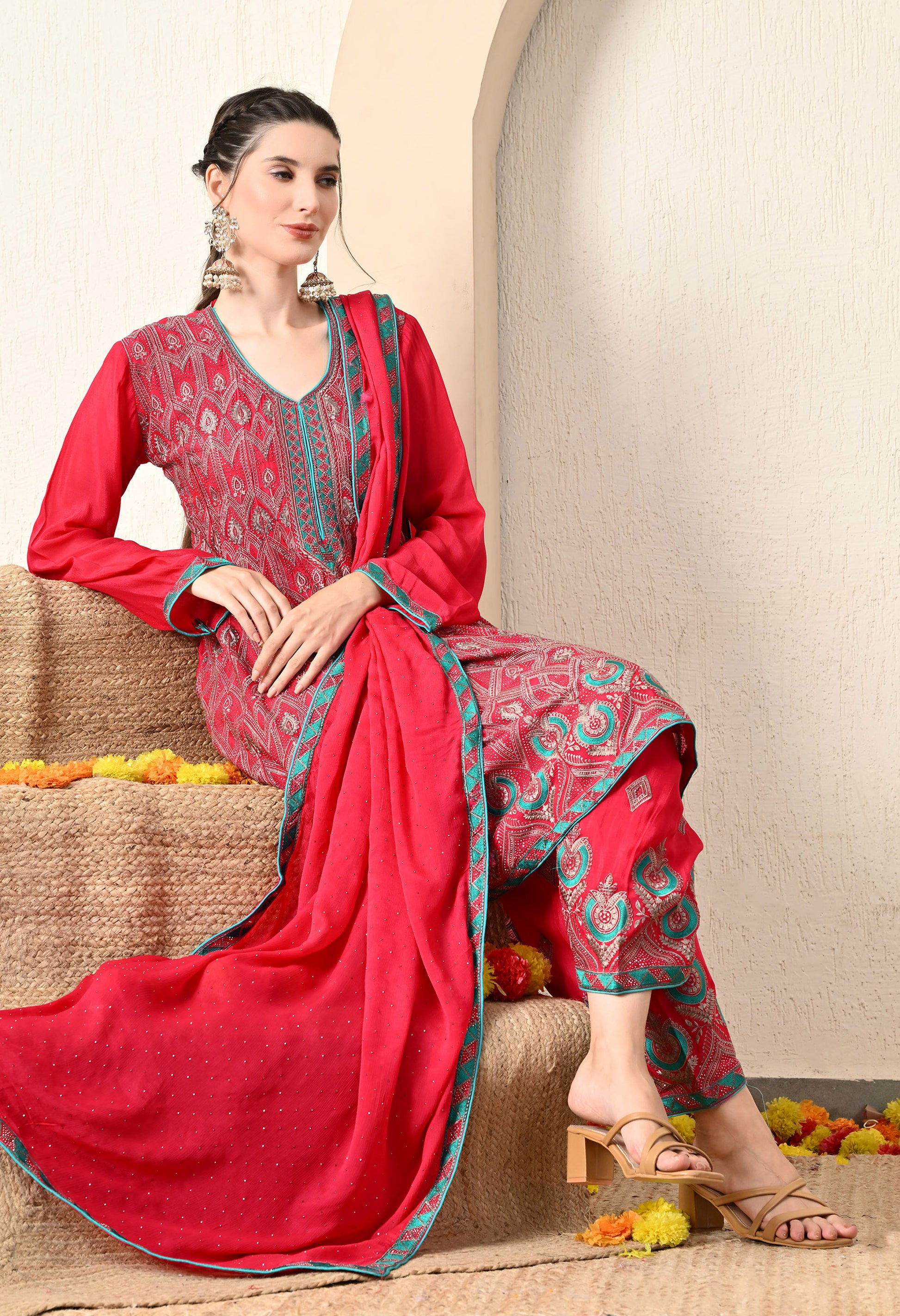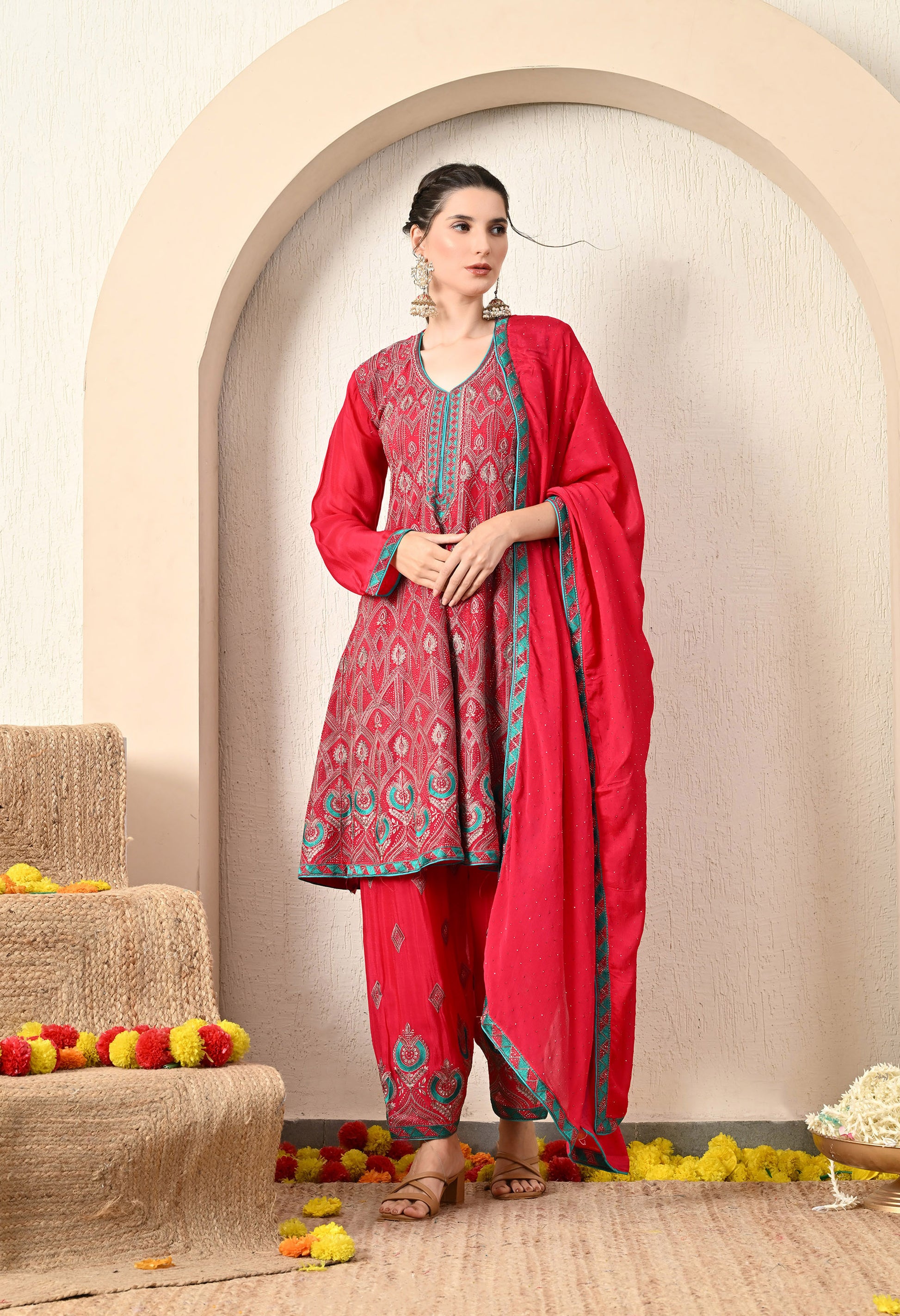 Components: Kurta, Dupatta, and Straight Salwar