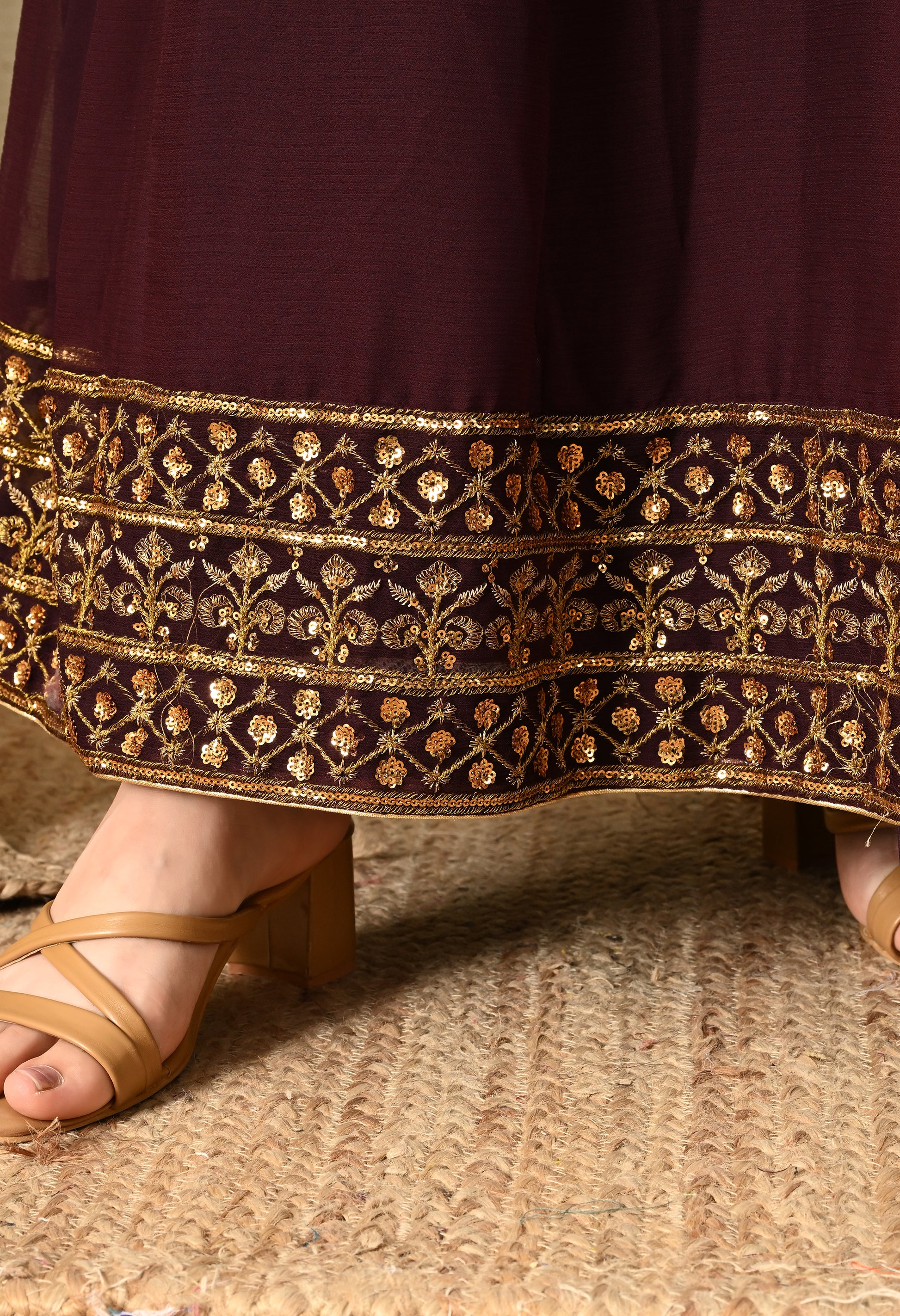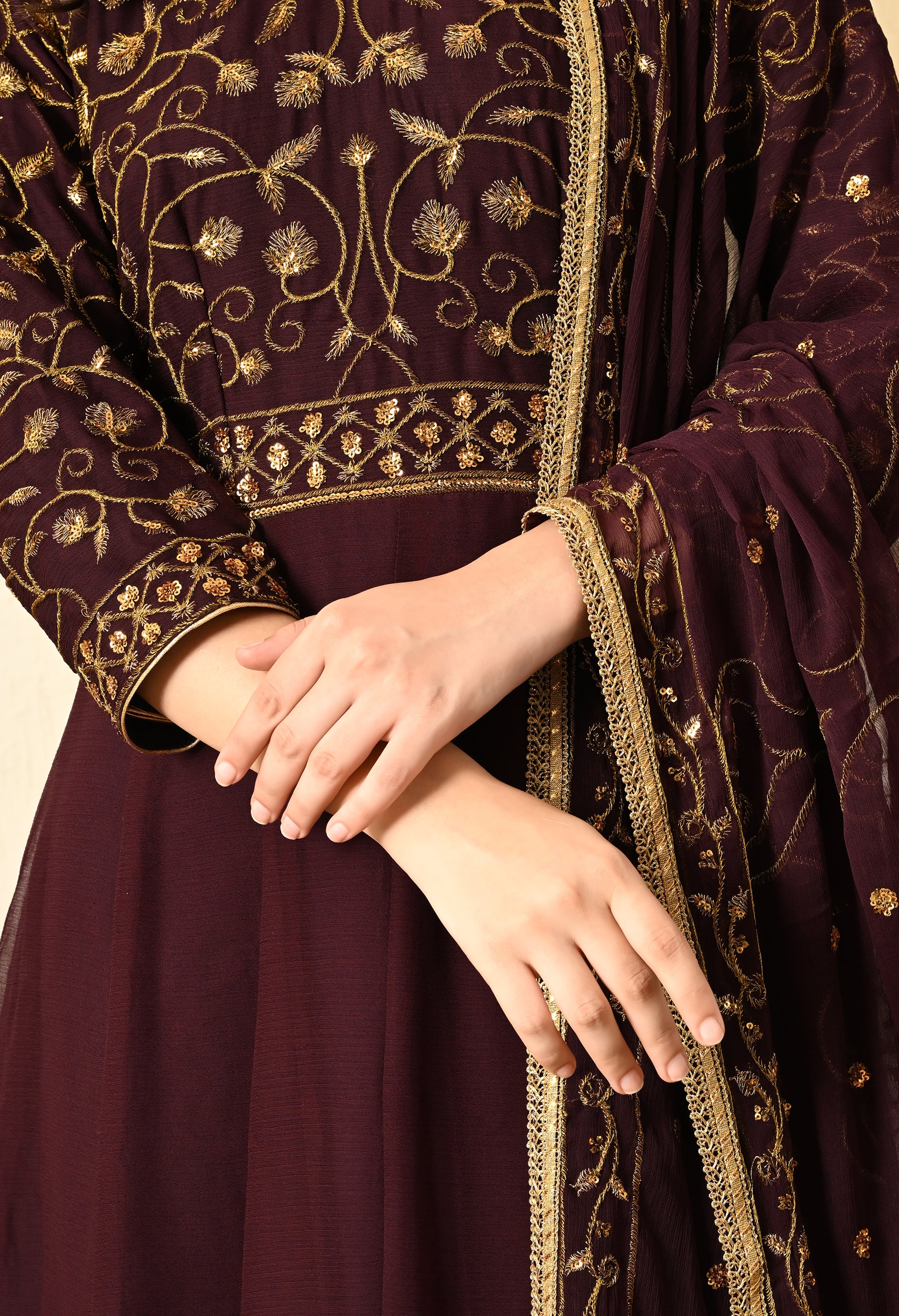Dark Wine Anarkali with Zardozi and Sequin Work