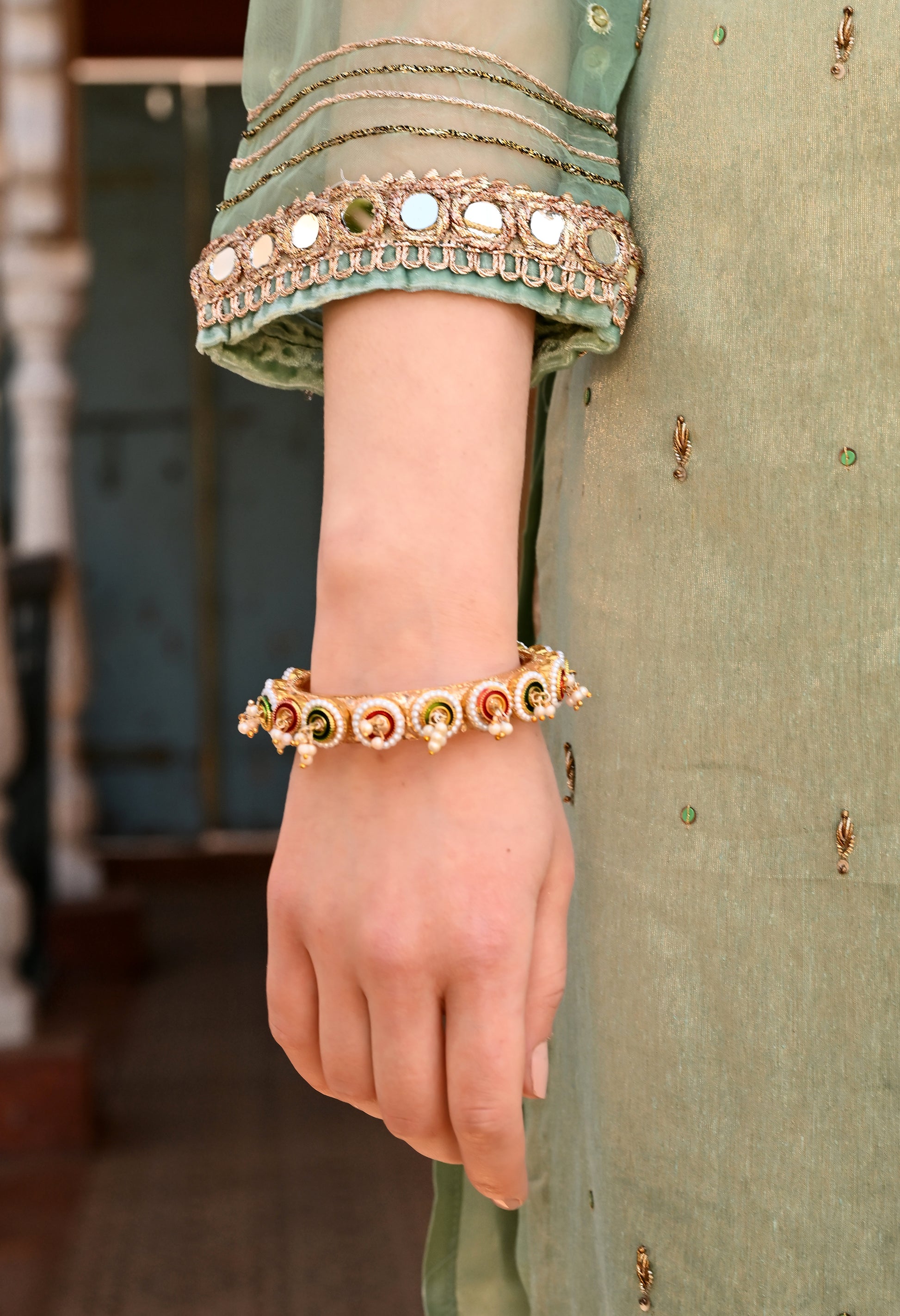 Elegant Green Kurta Set with Gota Patti, Dabka, and Mirror Work