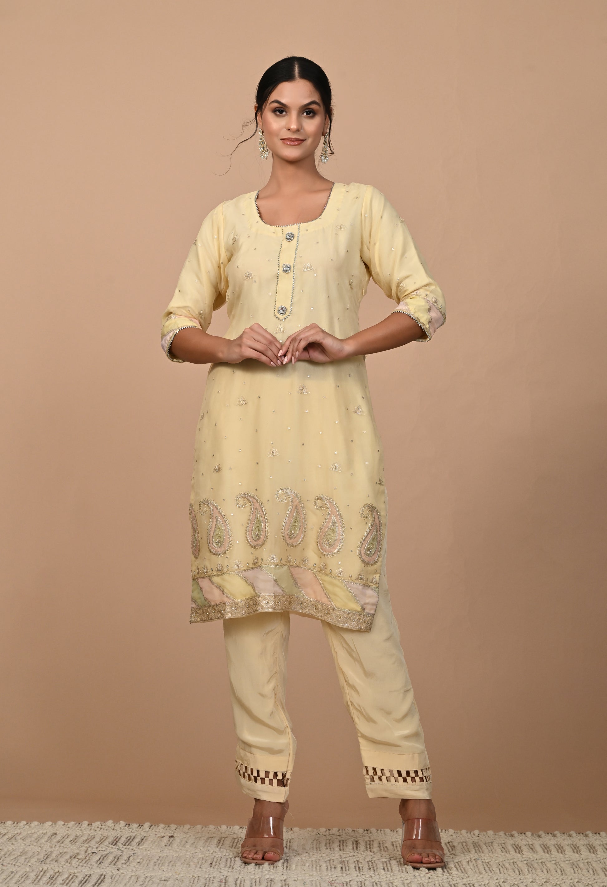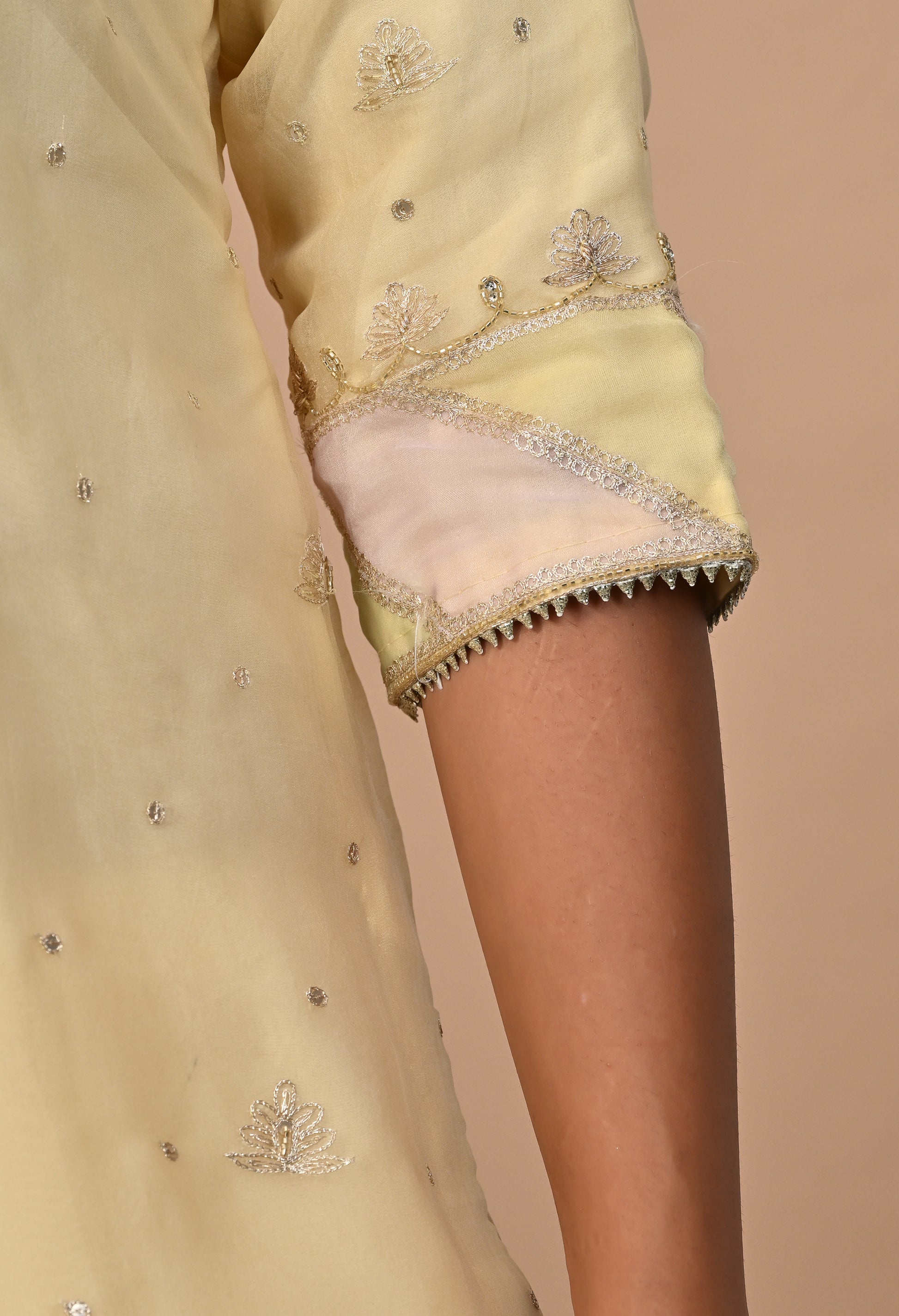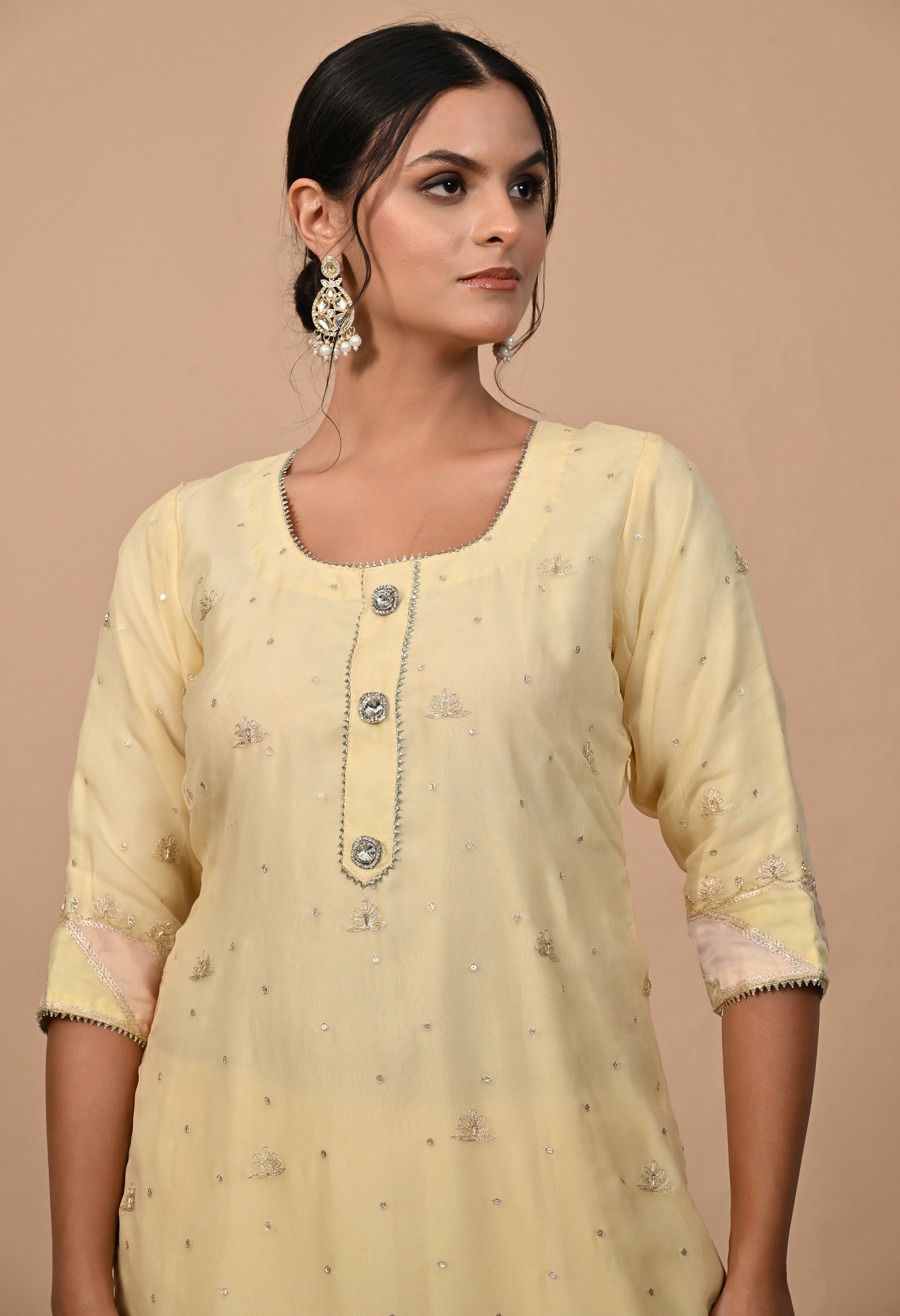 Elegant Light Yellow Kurta Set with Zardozi Embroidery