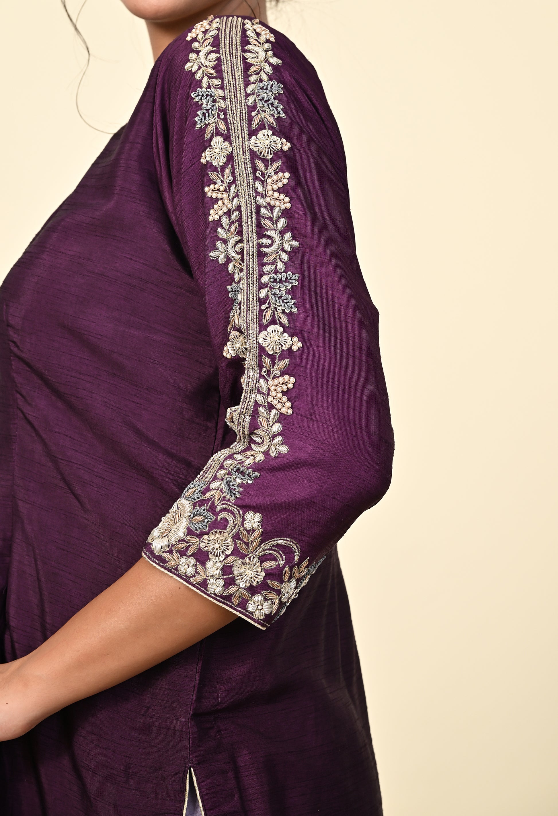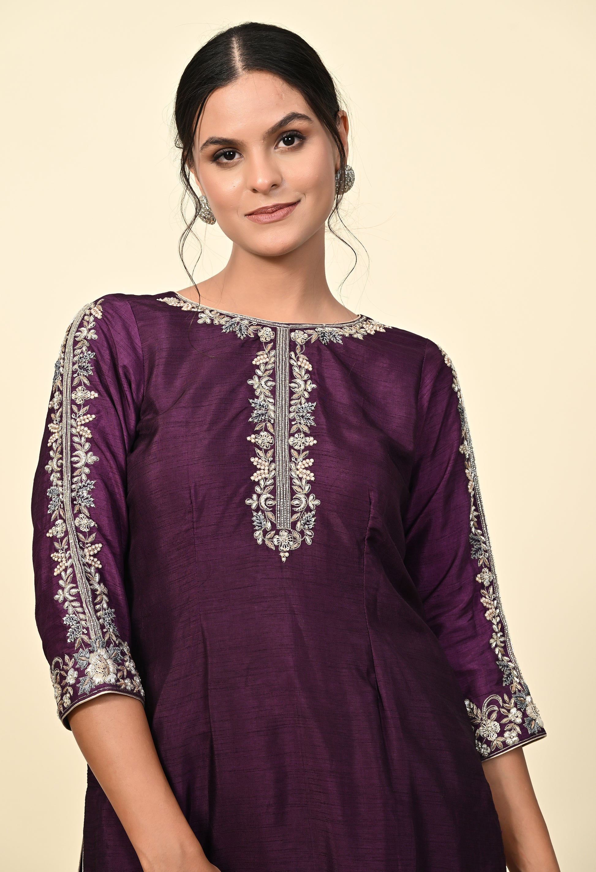 Elegant Purple Kurta Set with Intricate Zardozi Embroidery