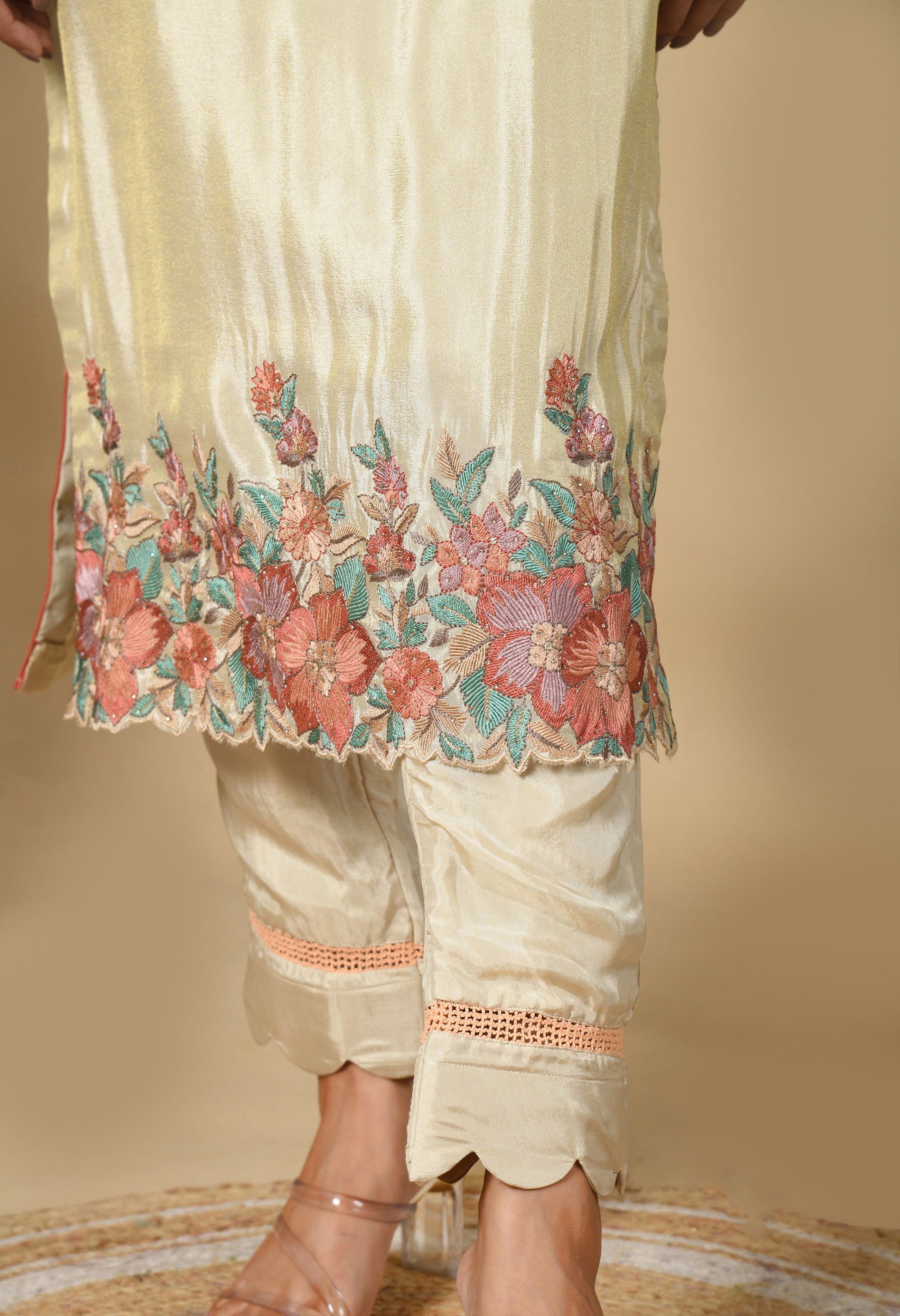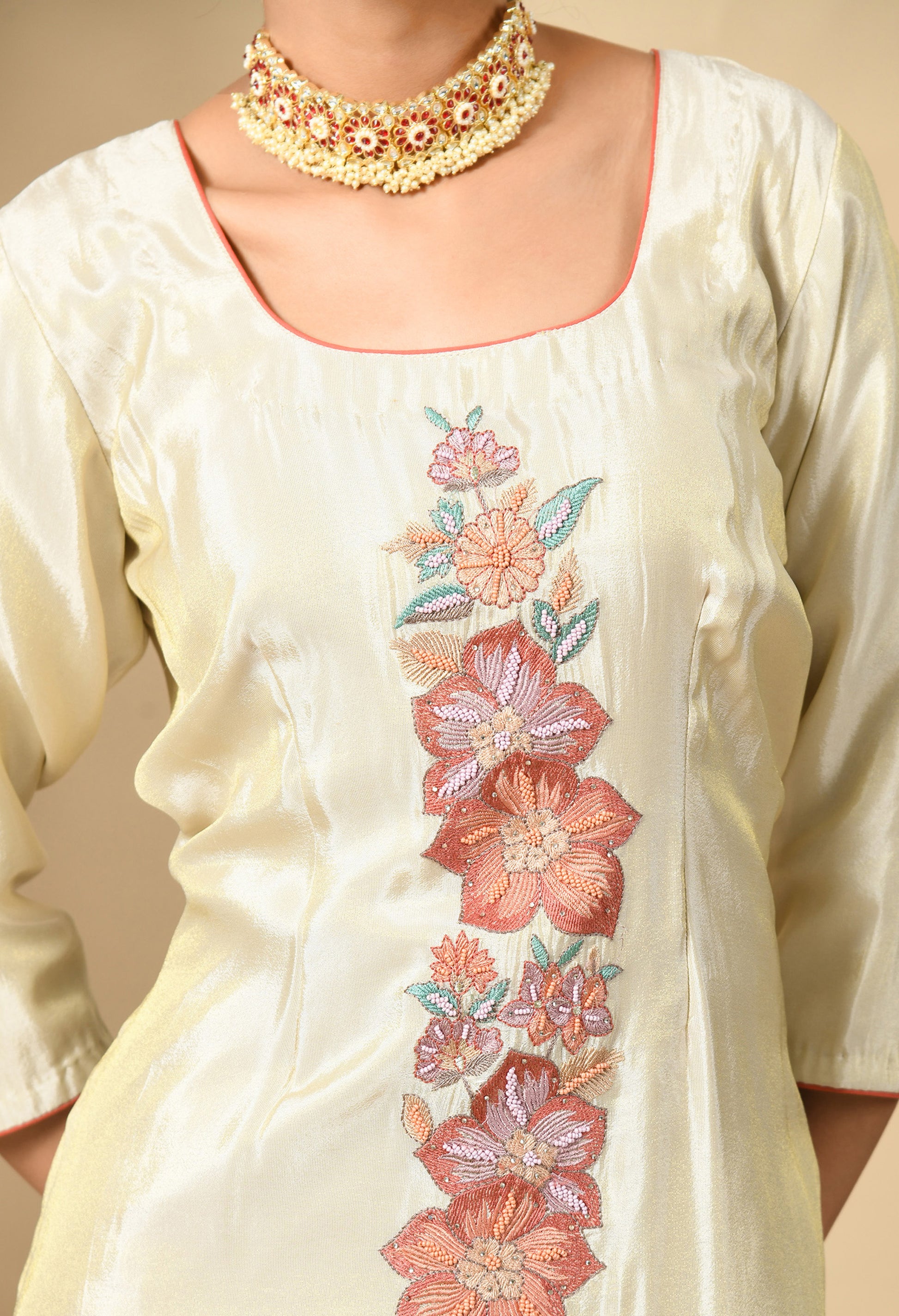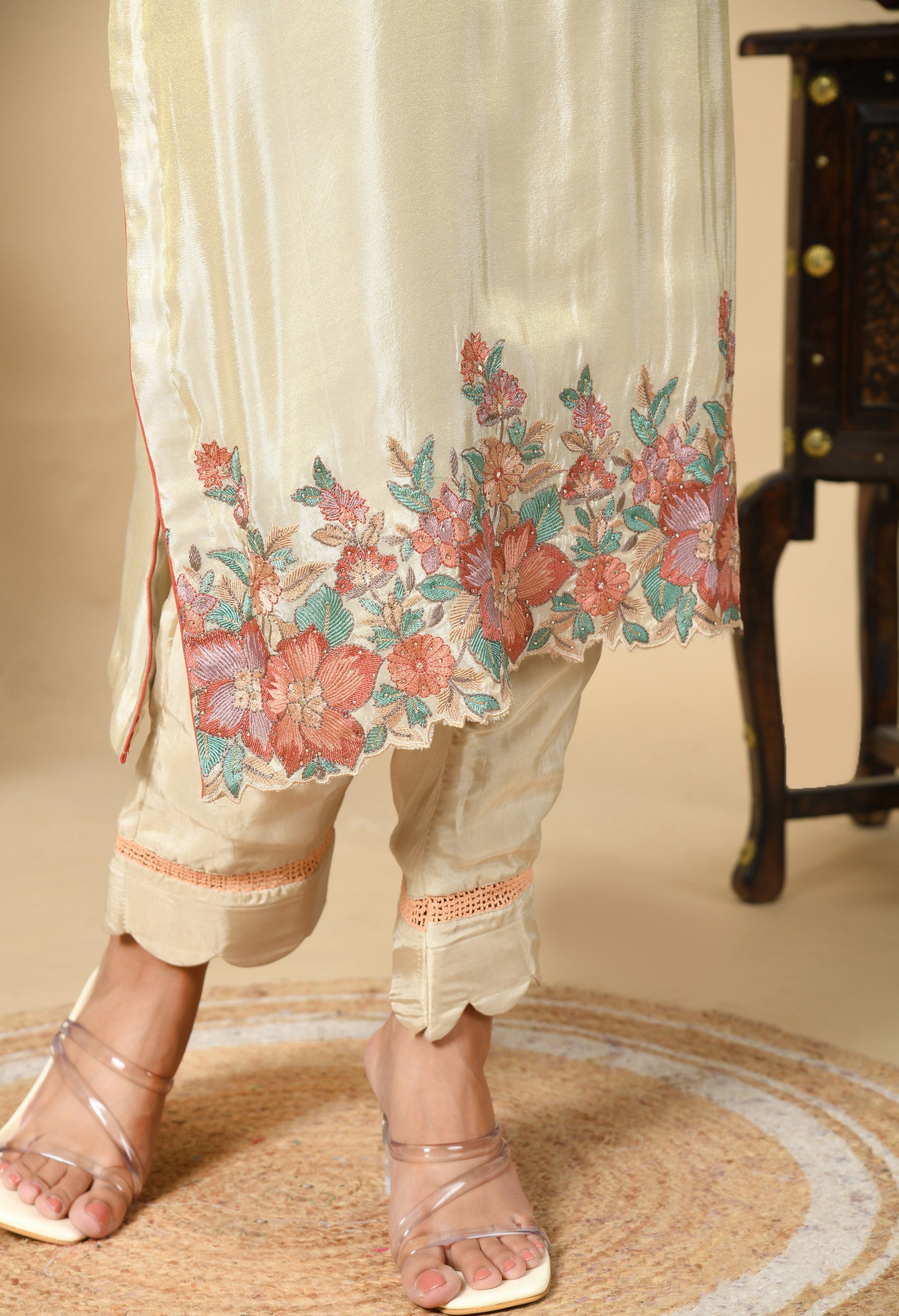Golden Cream Kurta Set with Astonishing Parsi Thread Work