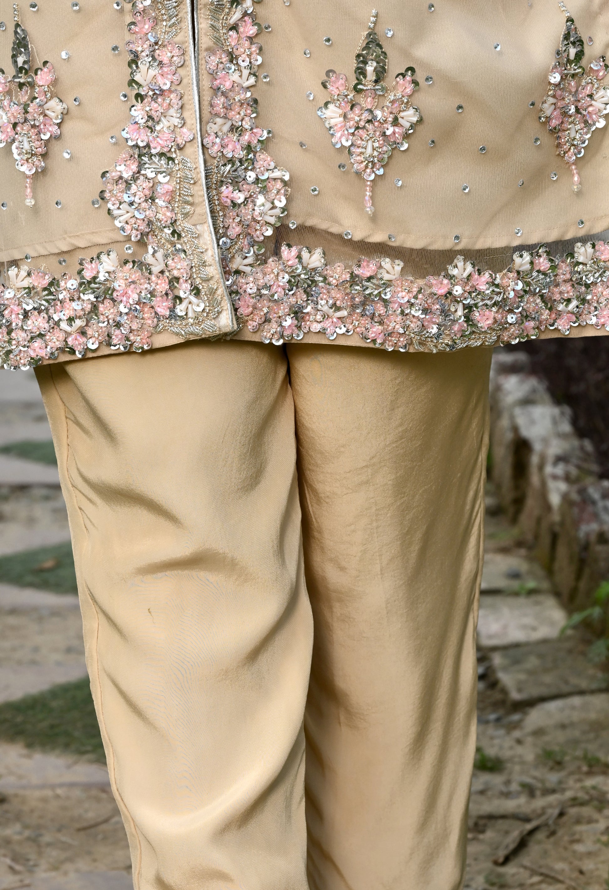 Golden Net Kurta Set with Sequins and Thread Detailing
