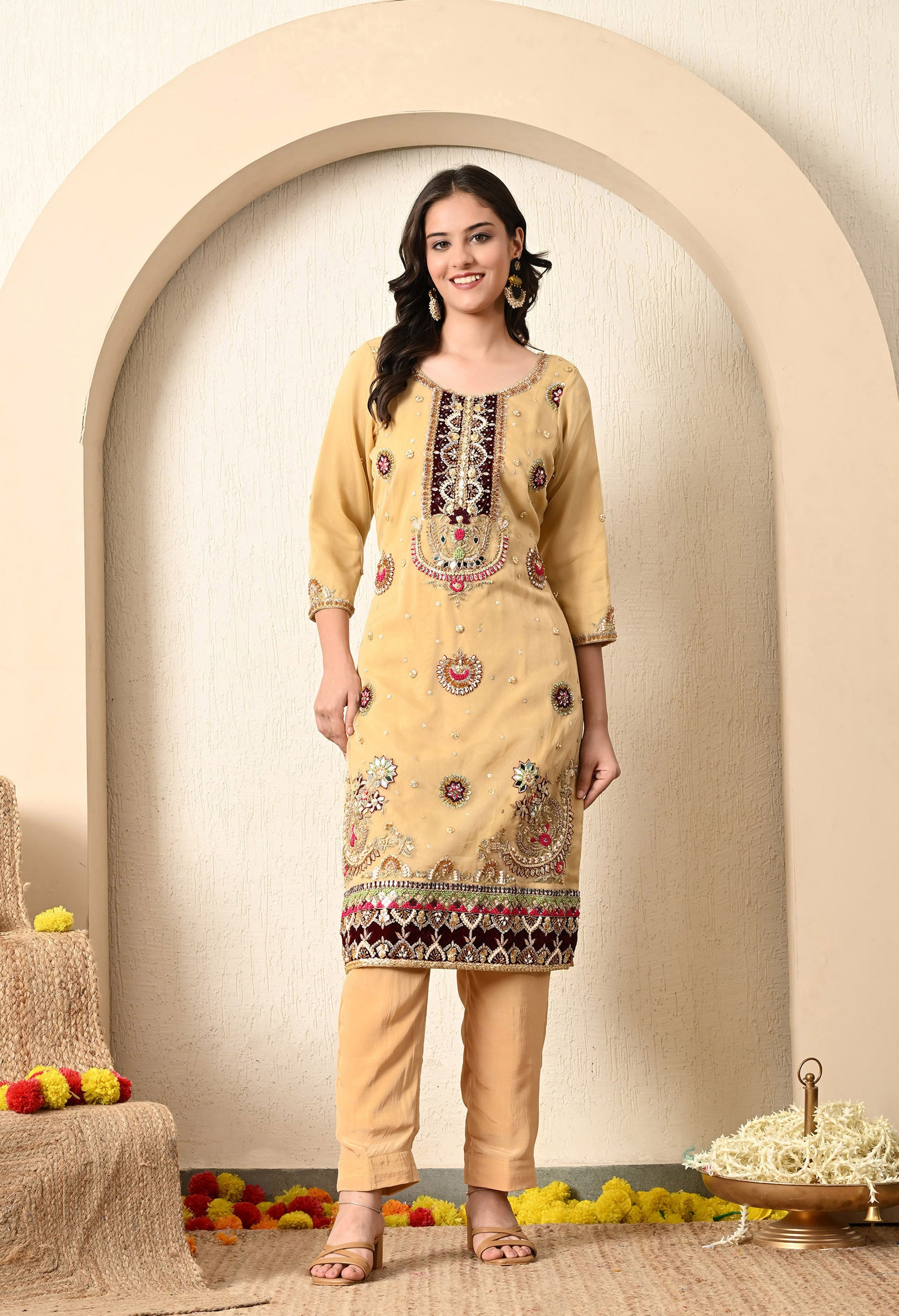 Components: Kurta, Dupatta, and Straight Pant