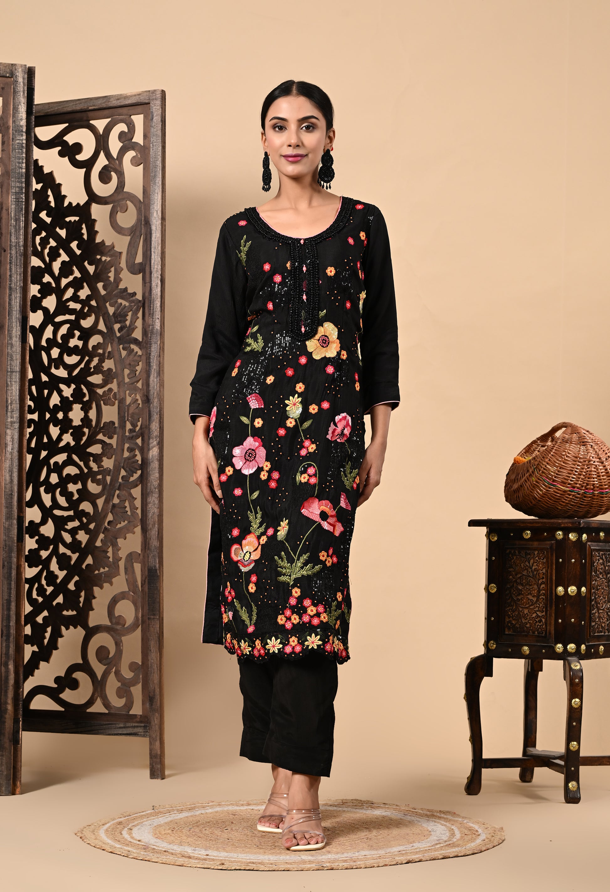 Graceful Black Kurta Set with Elegant Thread and Sequence Work