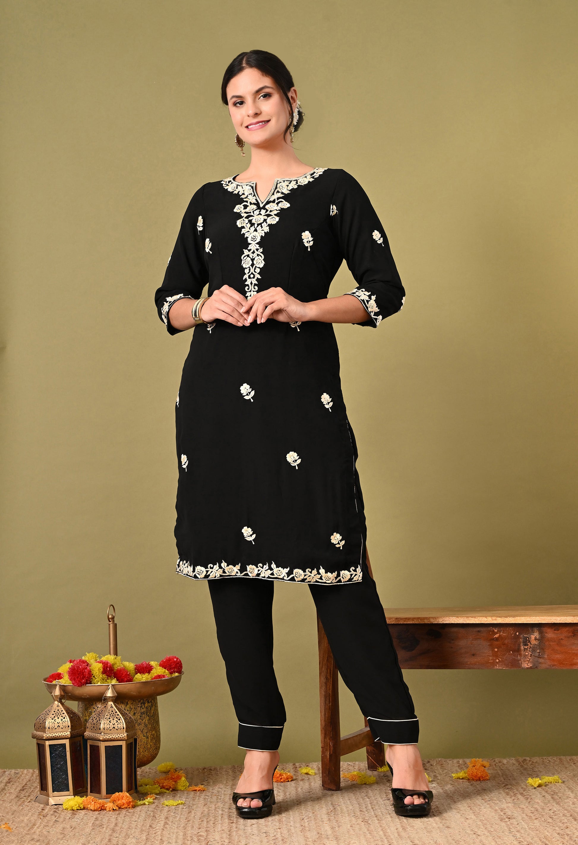 Graceful Black Kurta Set with Mesmerising Parsi Work