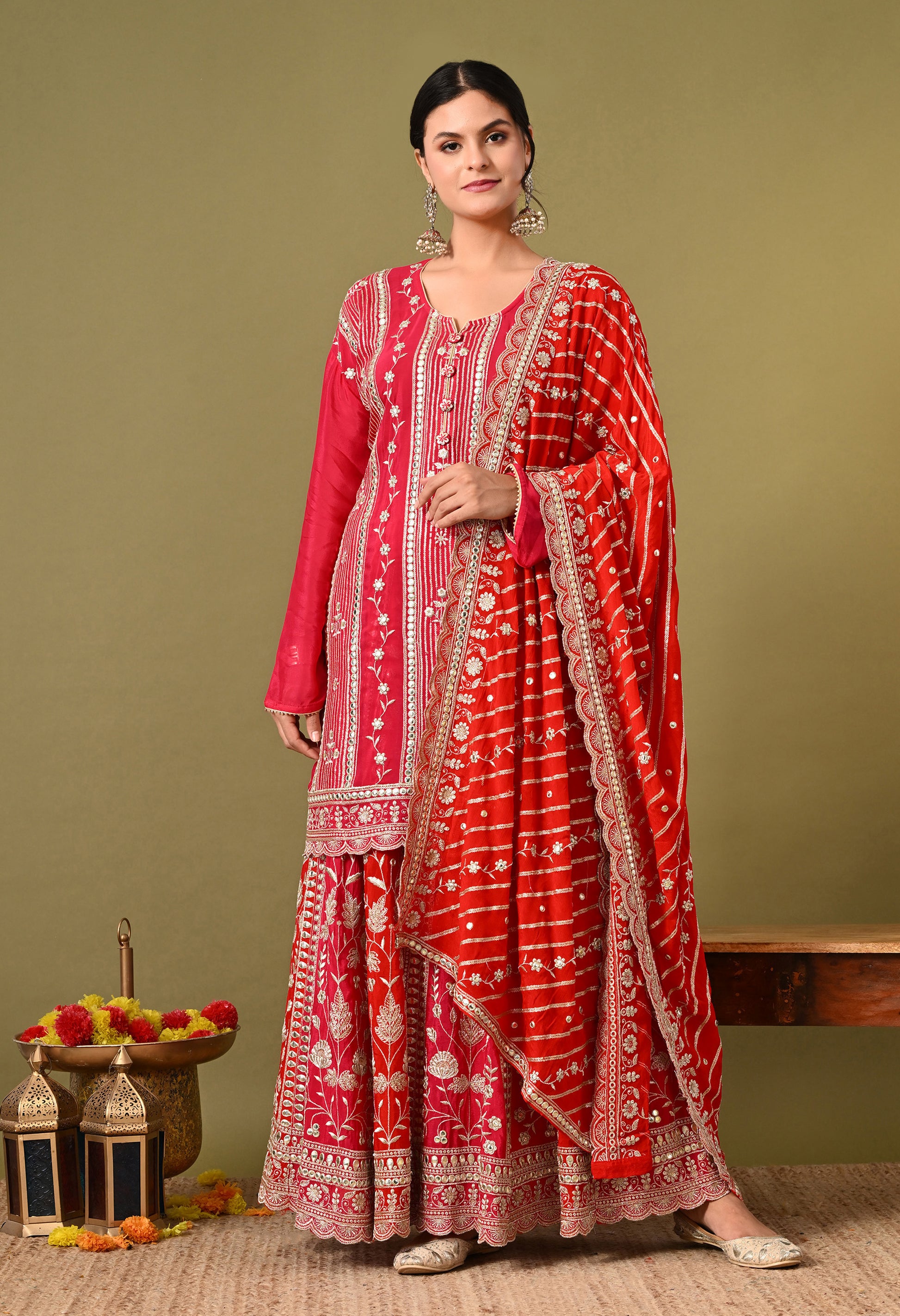 - Beautiful gotta and zardozi work on the Kurta.