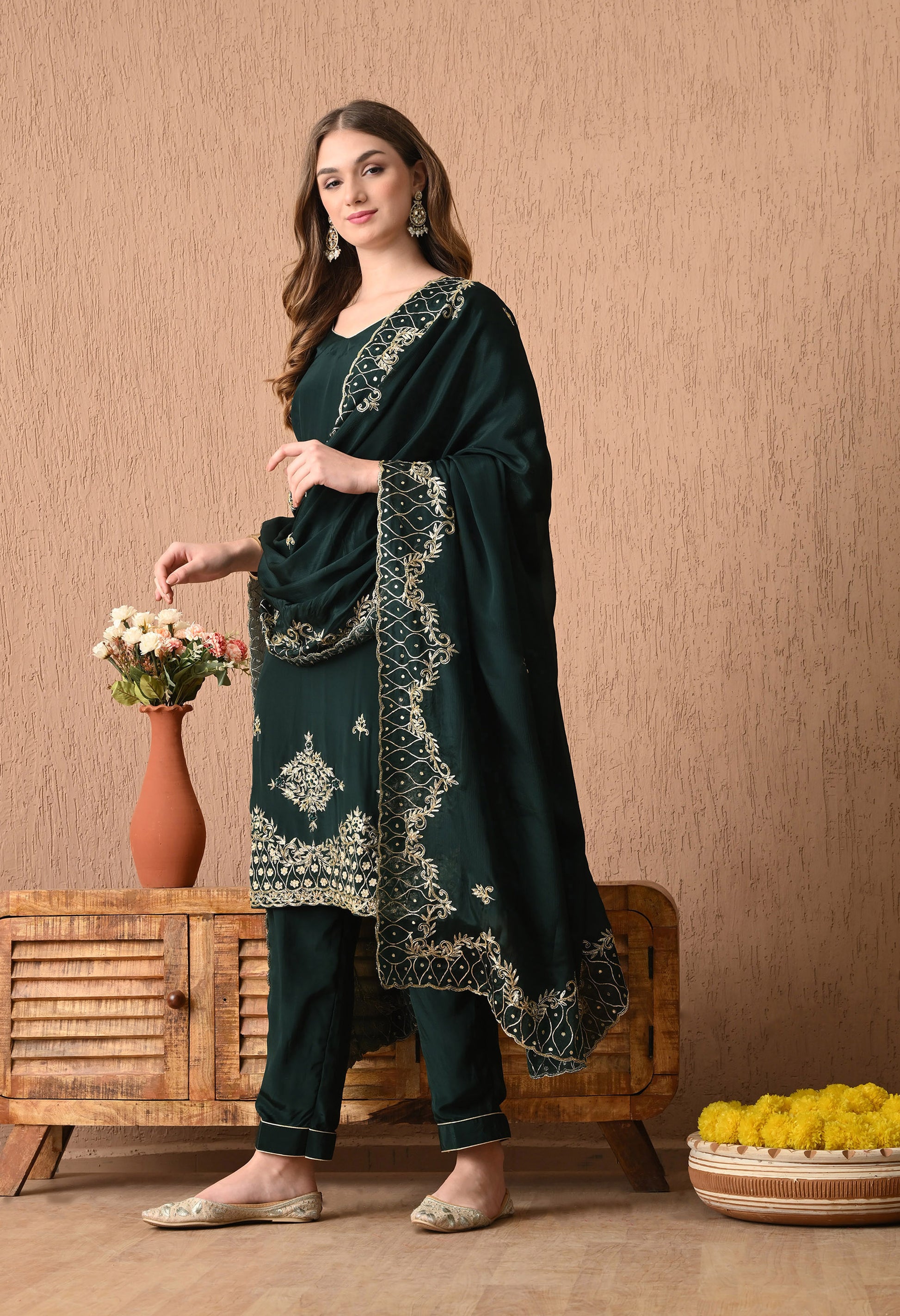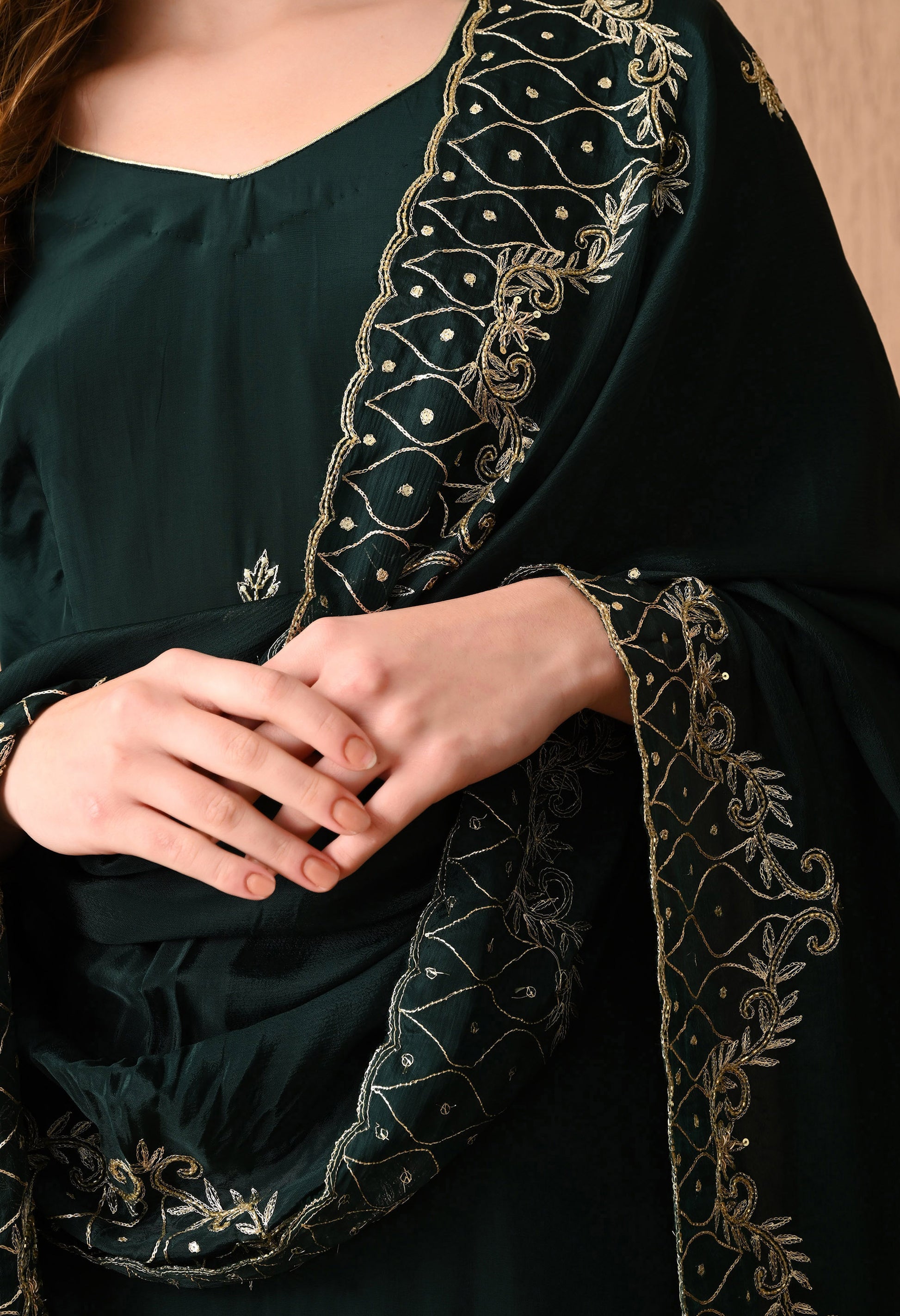 Gracious Bottle Green Kurta Set with Zardozi and Sequin Work