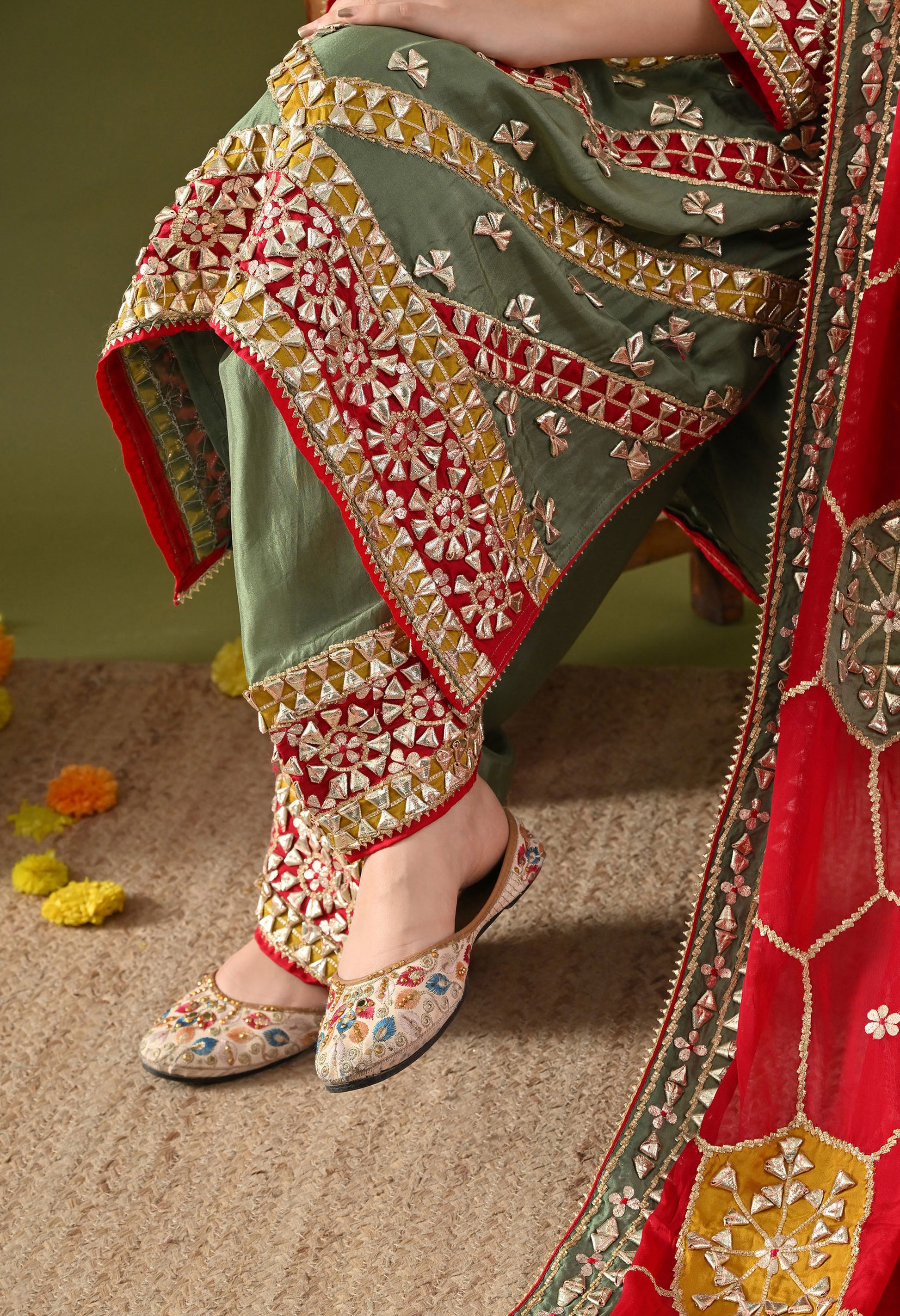 Green Tissue Silk & Organza Gotta–Applique Kurta Set