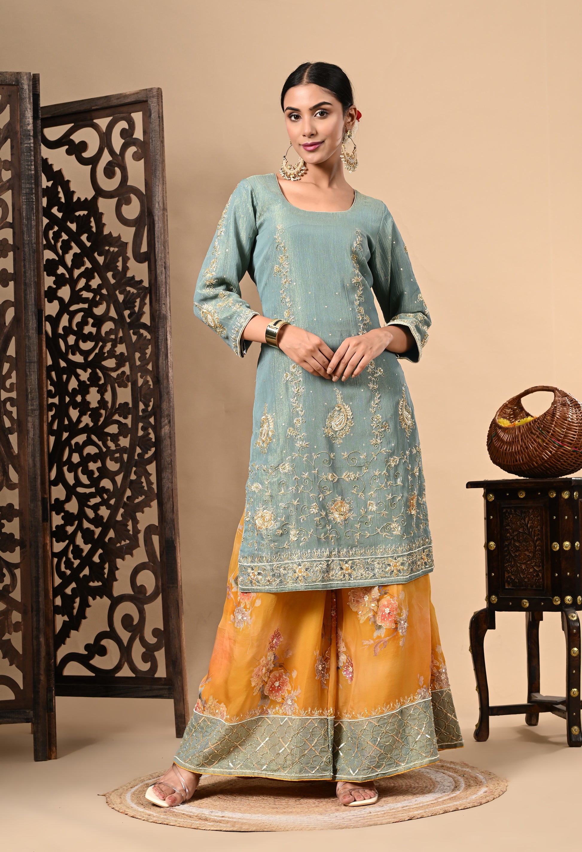 Disclaimer: Colour of the product may vary from the image. These are a made-to-order designer Sharara Set, slight variations are to be expected.