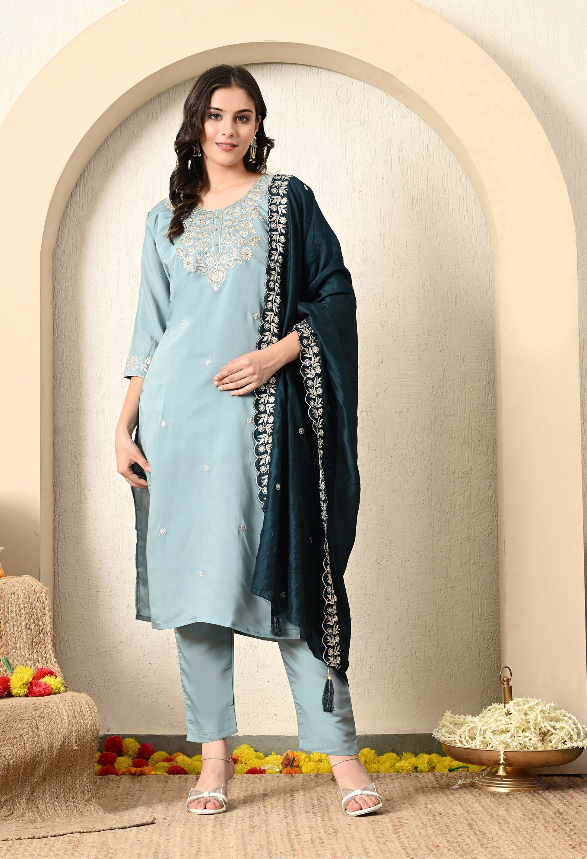 Components: Kurta, Straight Pant, and Dupatta