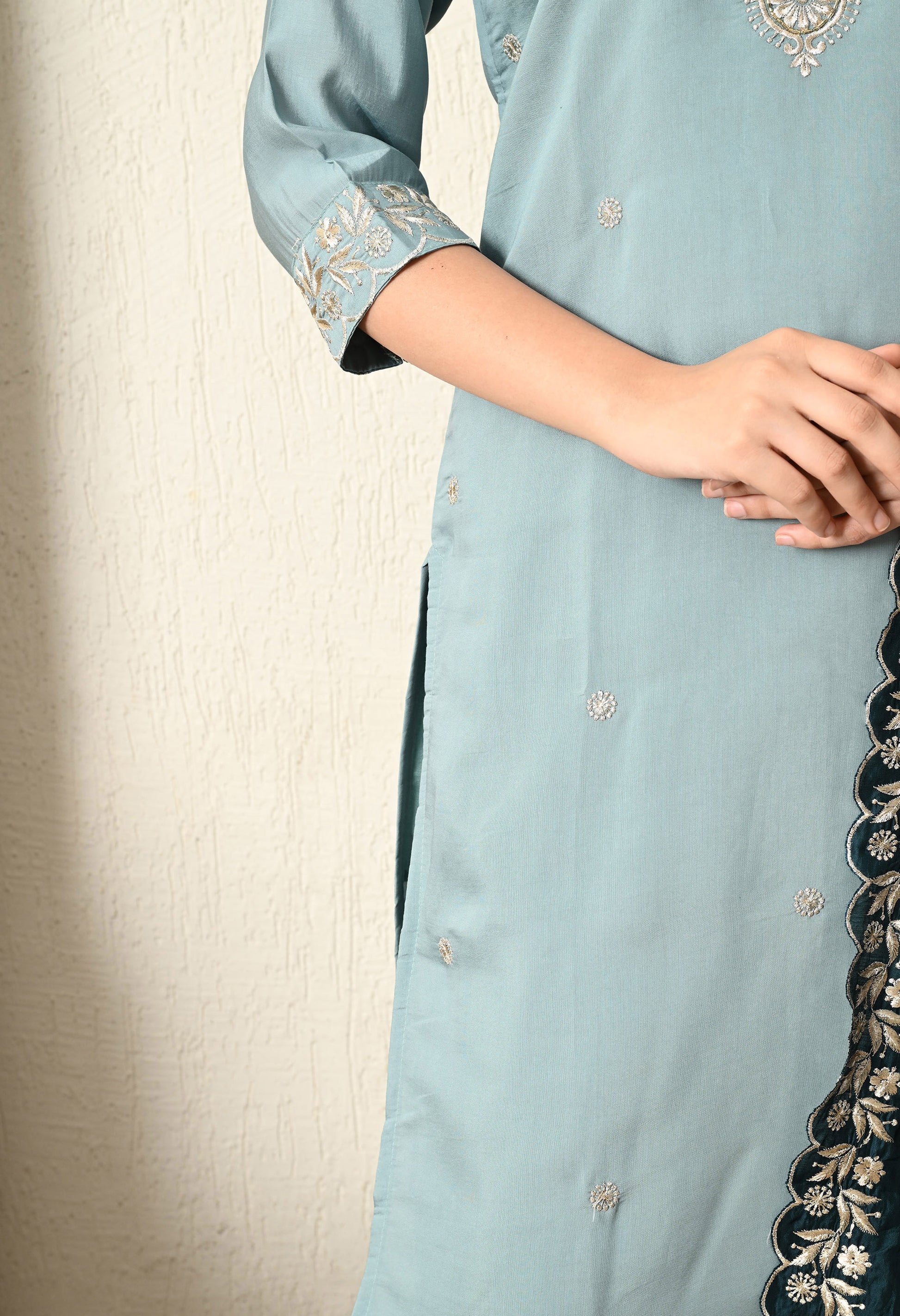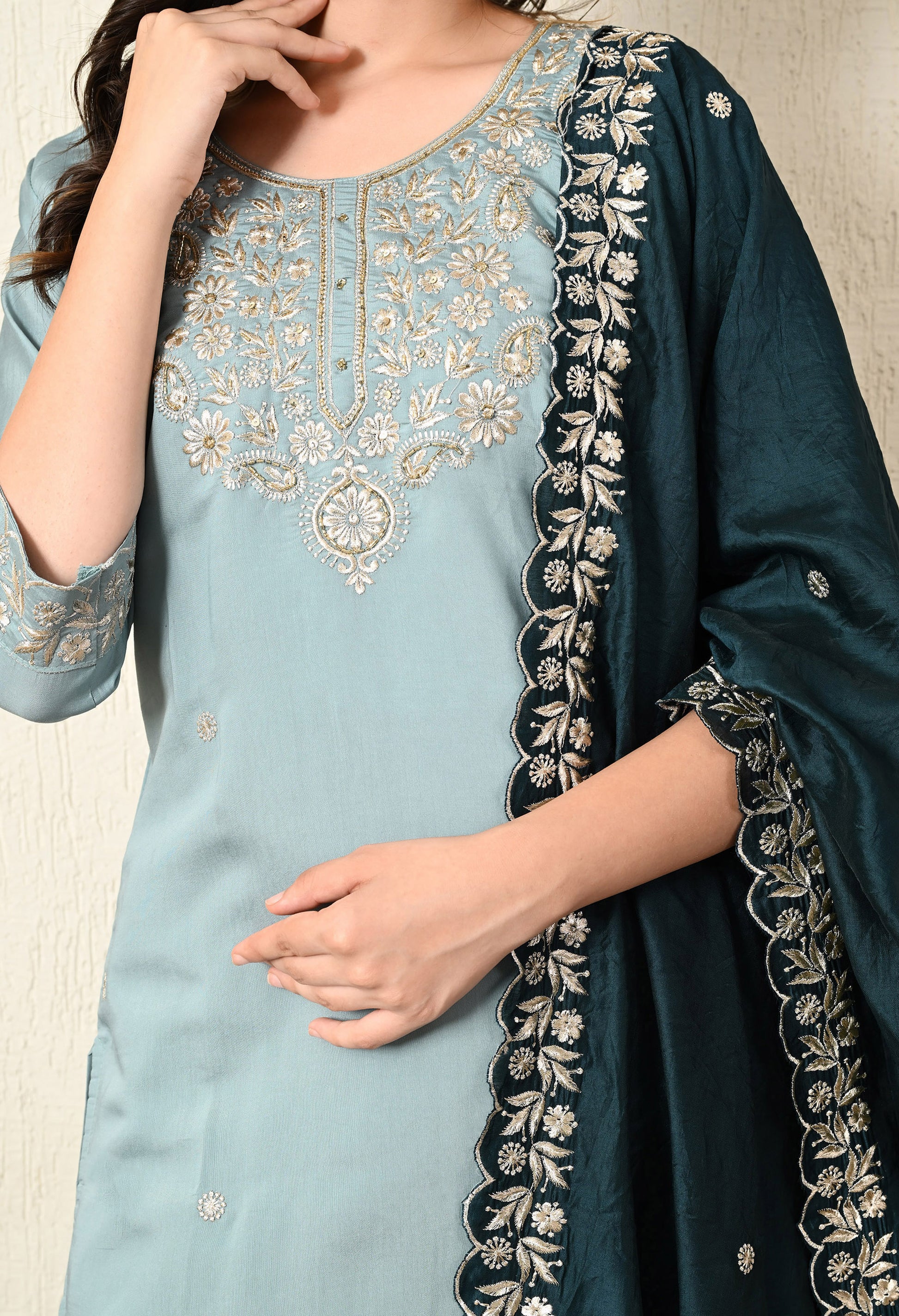 Greyish Blue Kurta Set with Zardozi and Zari work