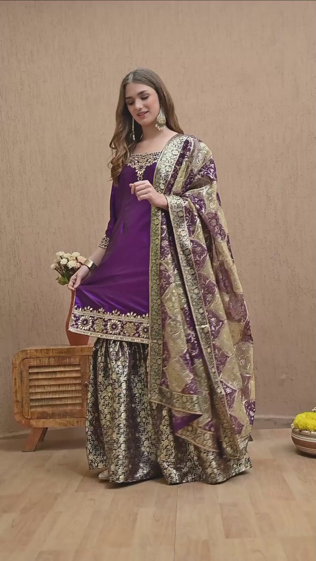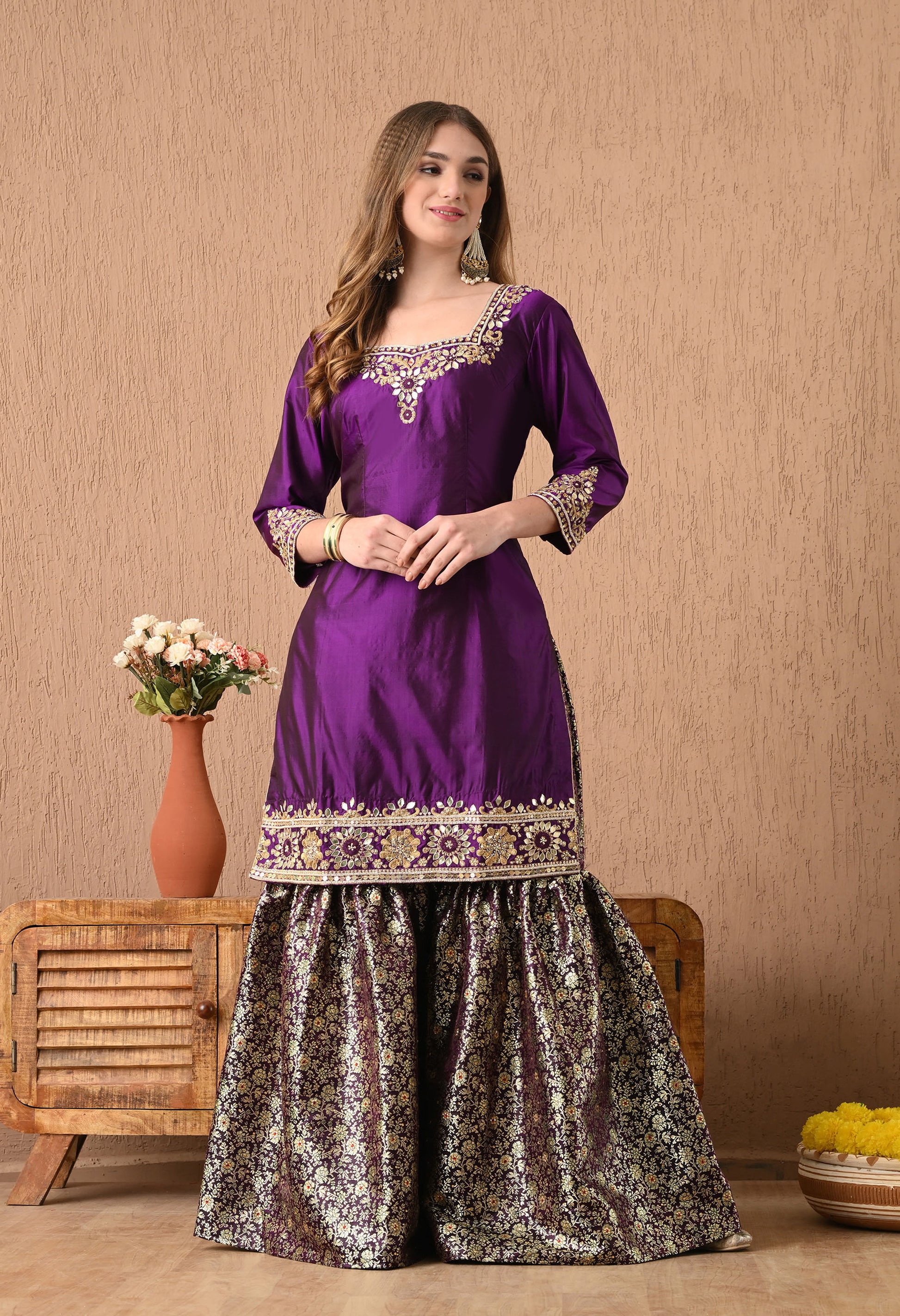 I wore this purple sharara set to a wedding. The gota patti and zardozi work looked amazing. Got lots of compliments.