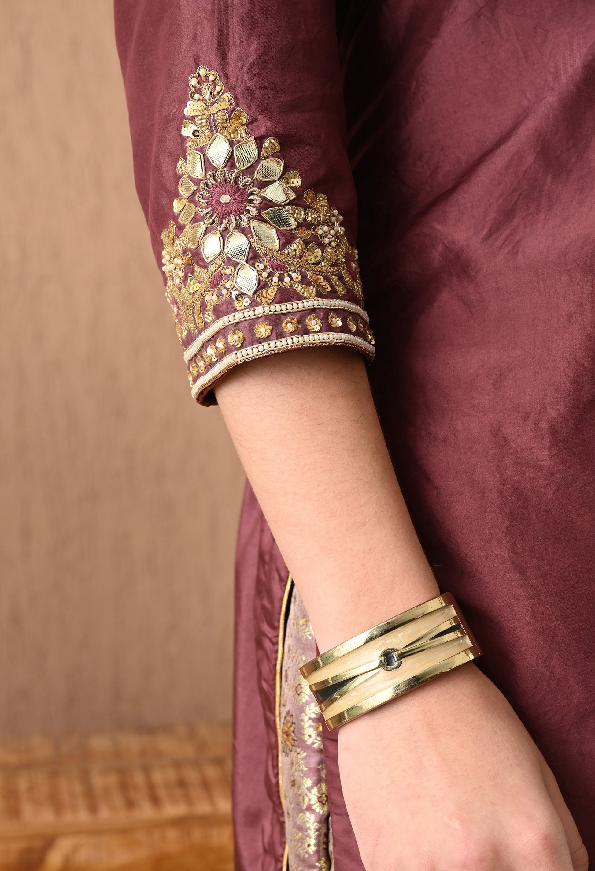 - Beautiful hand embroidered gotta, zardozi, and pearl work on the Ghera, Sleeves & Neck of pure silk Kurta.