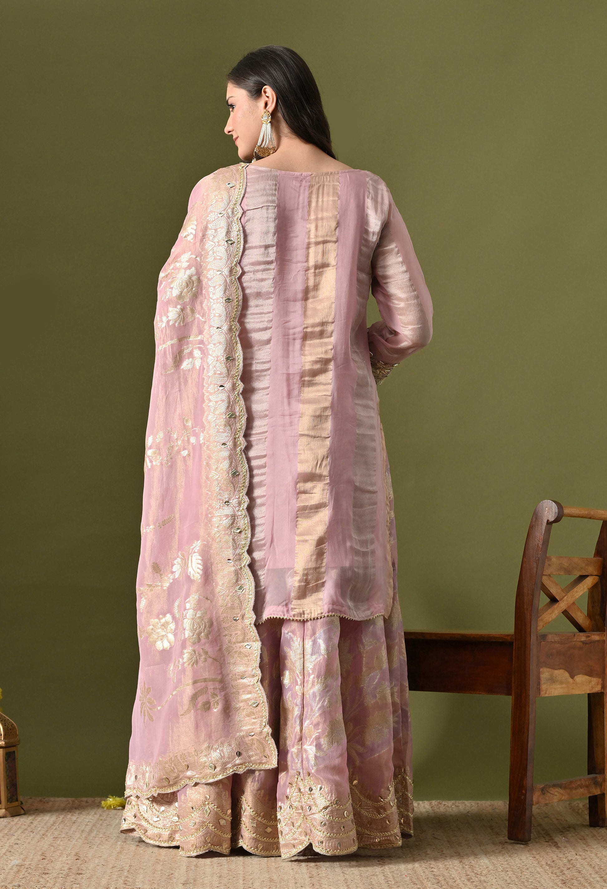 Lavender Pink Organza & Banarasi Organza Gotta Work Sharara Set