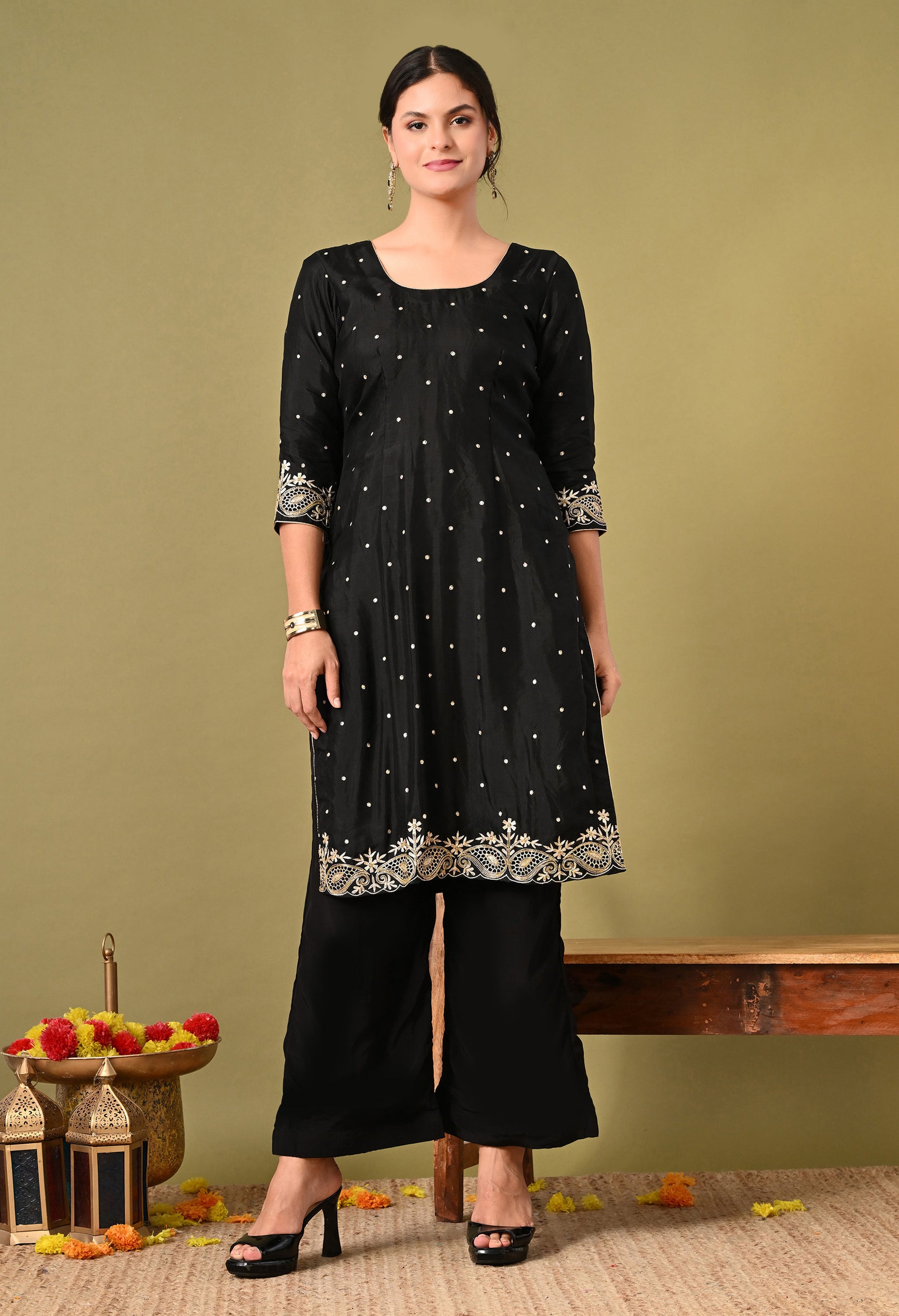 - Components: Duppatta, Kurta, and Straight Plazo.