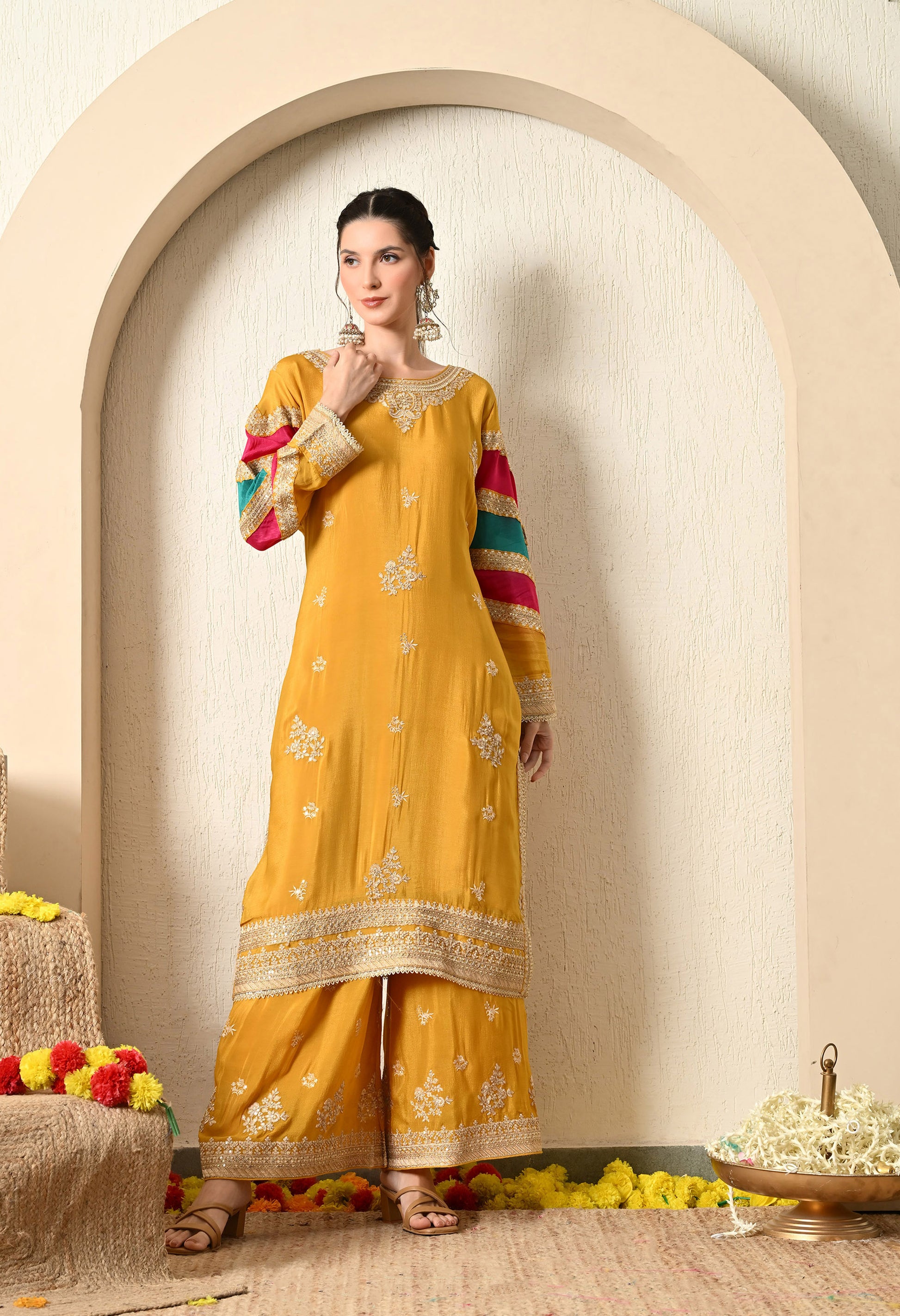 Mustard Yellow Kurta Set with Beautiful Thread and Zari Work