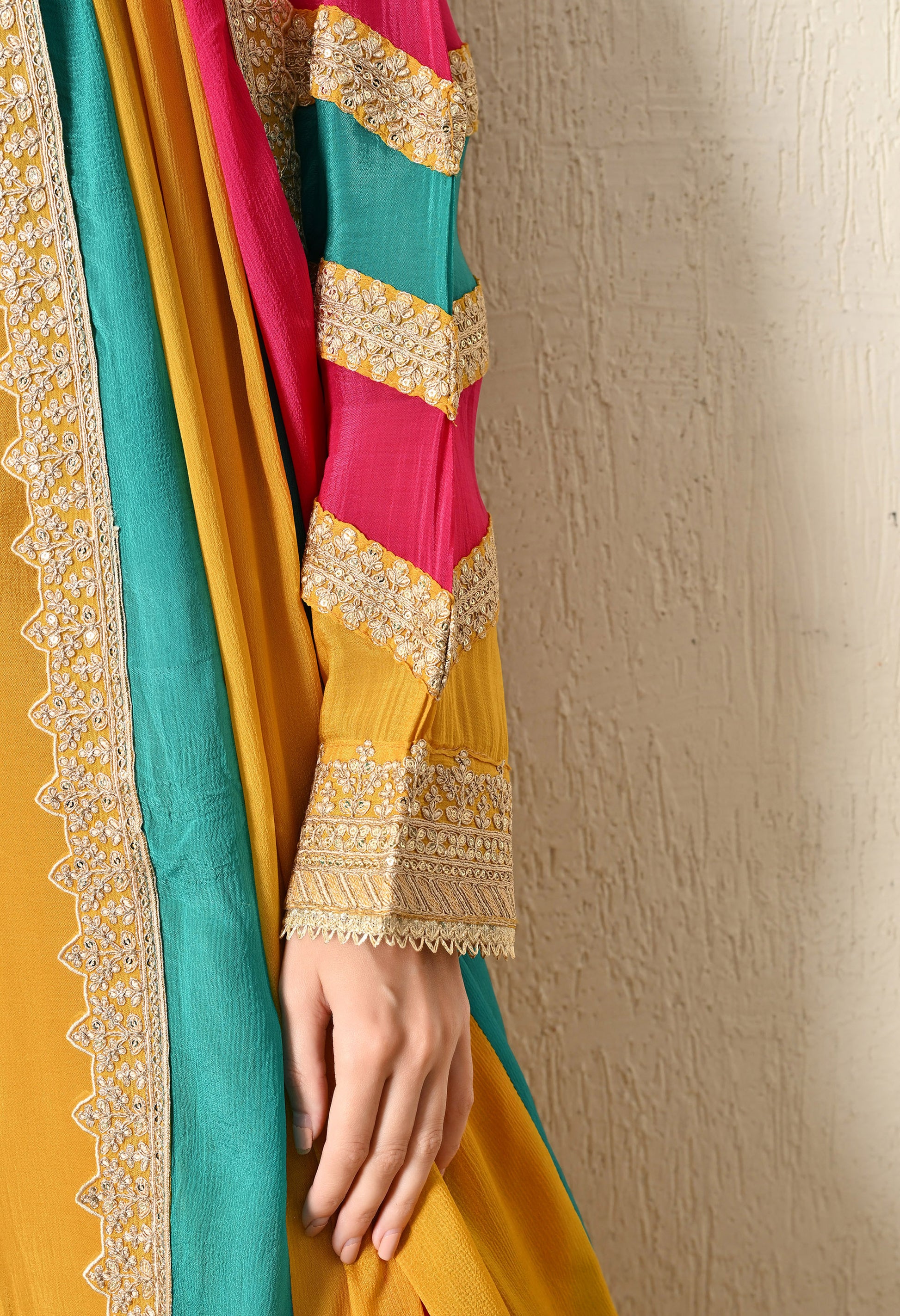 - Multi Coloured Sleeves & Dupatta with Beautiful Embroidery