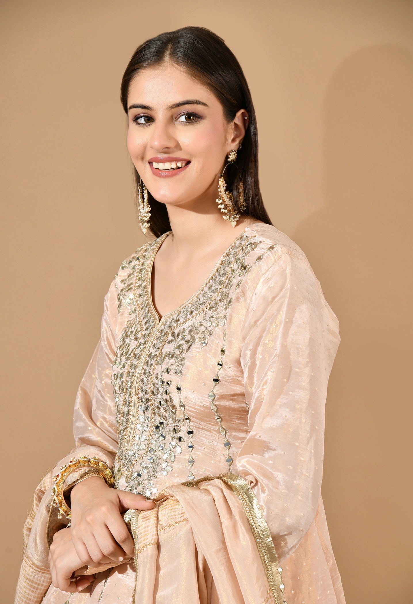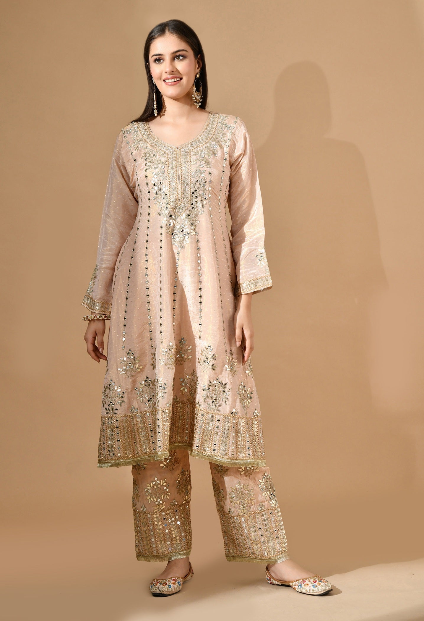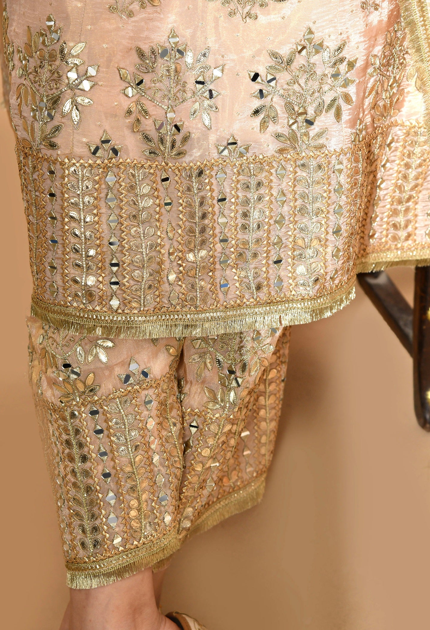 Peach Kurta Set with Gotta, Mirror & Zardozi Work