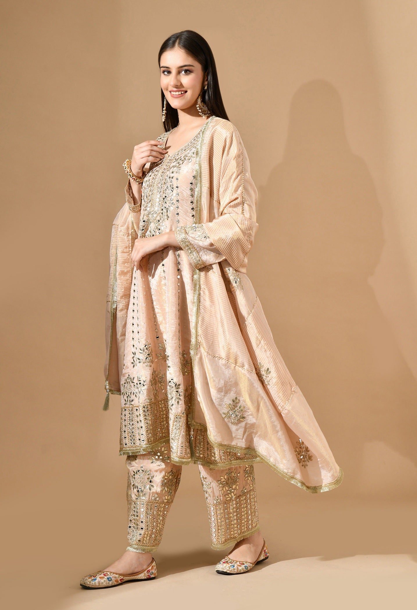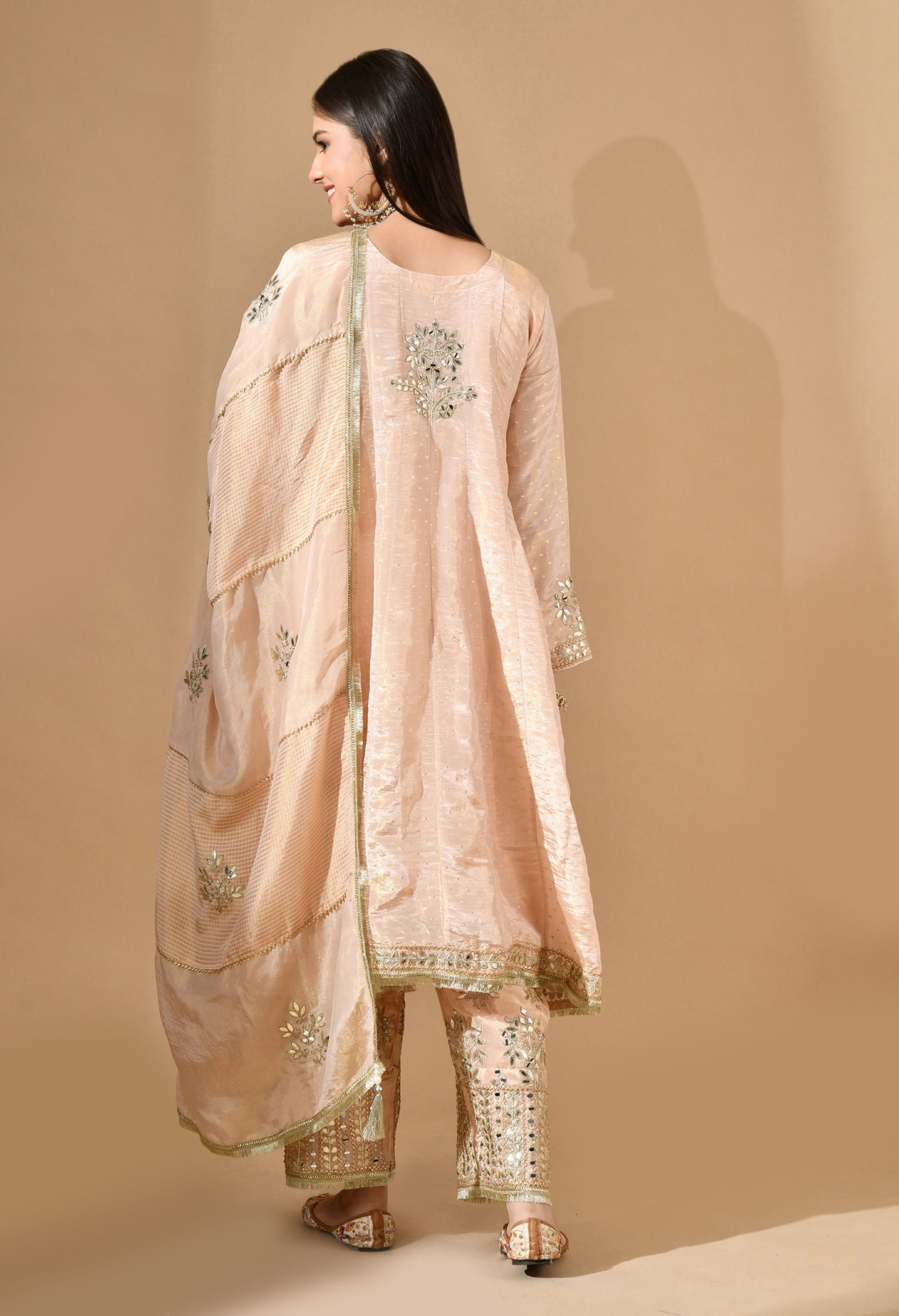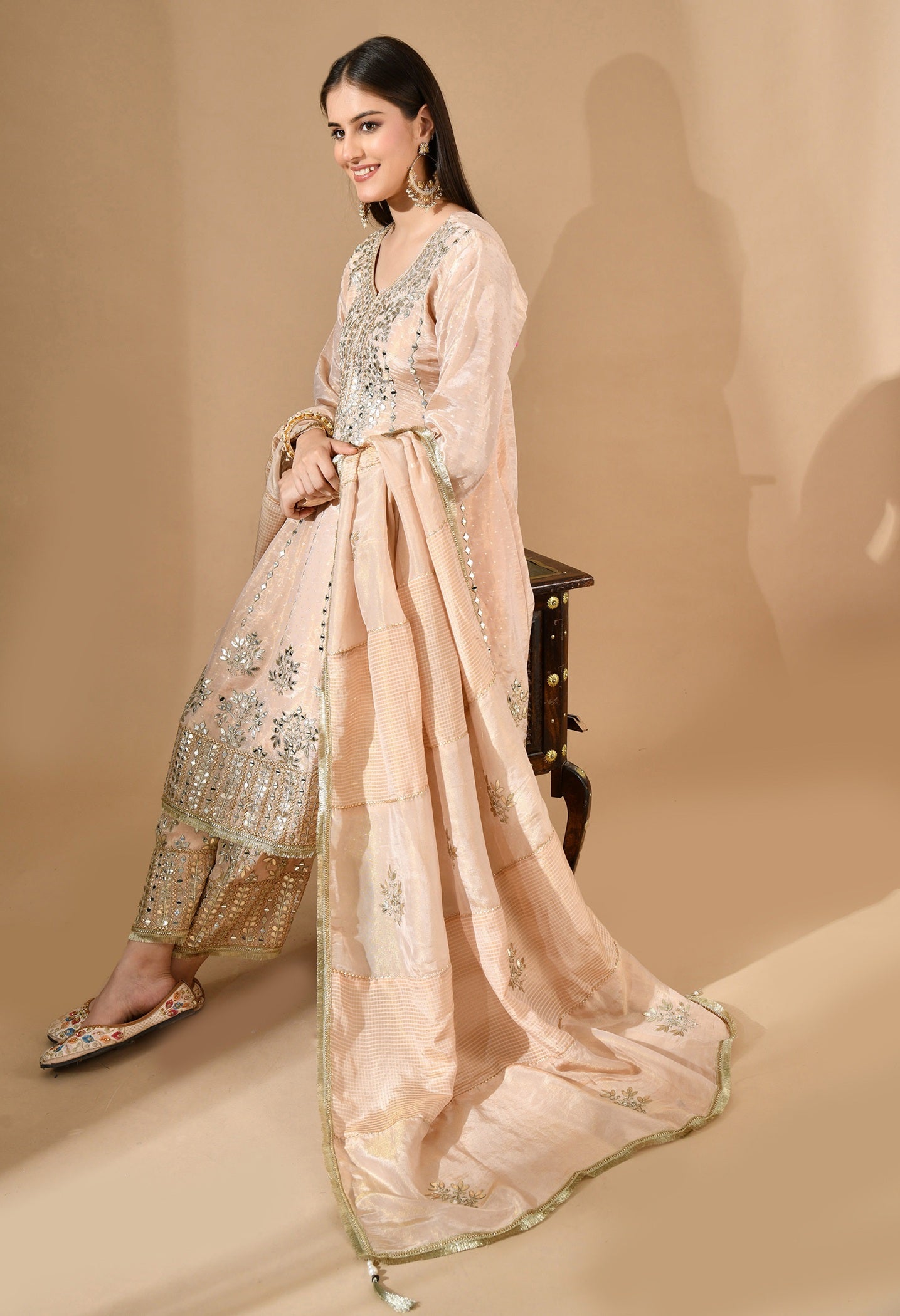 Peach Kurta Set with Gotta, Mirror & Zardozi Work