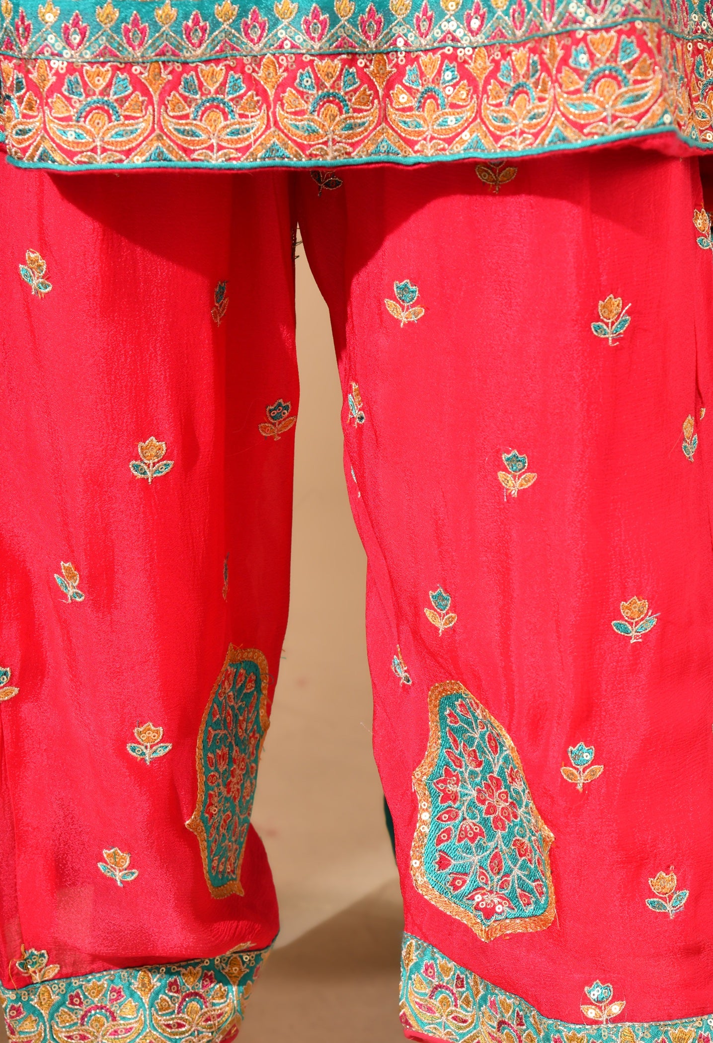 Pink Chinon Kurta Set with Zardozi & Sequin Embroidery