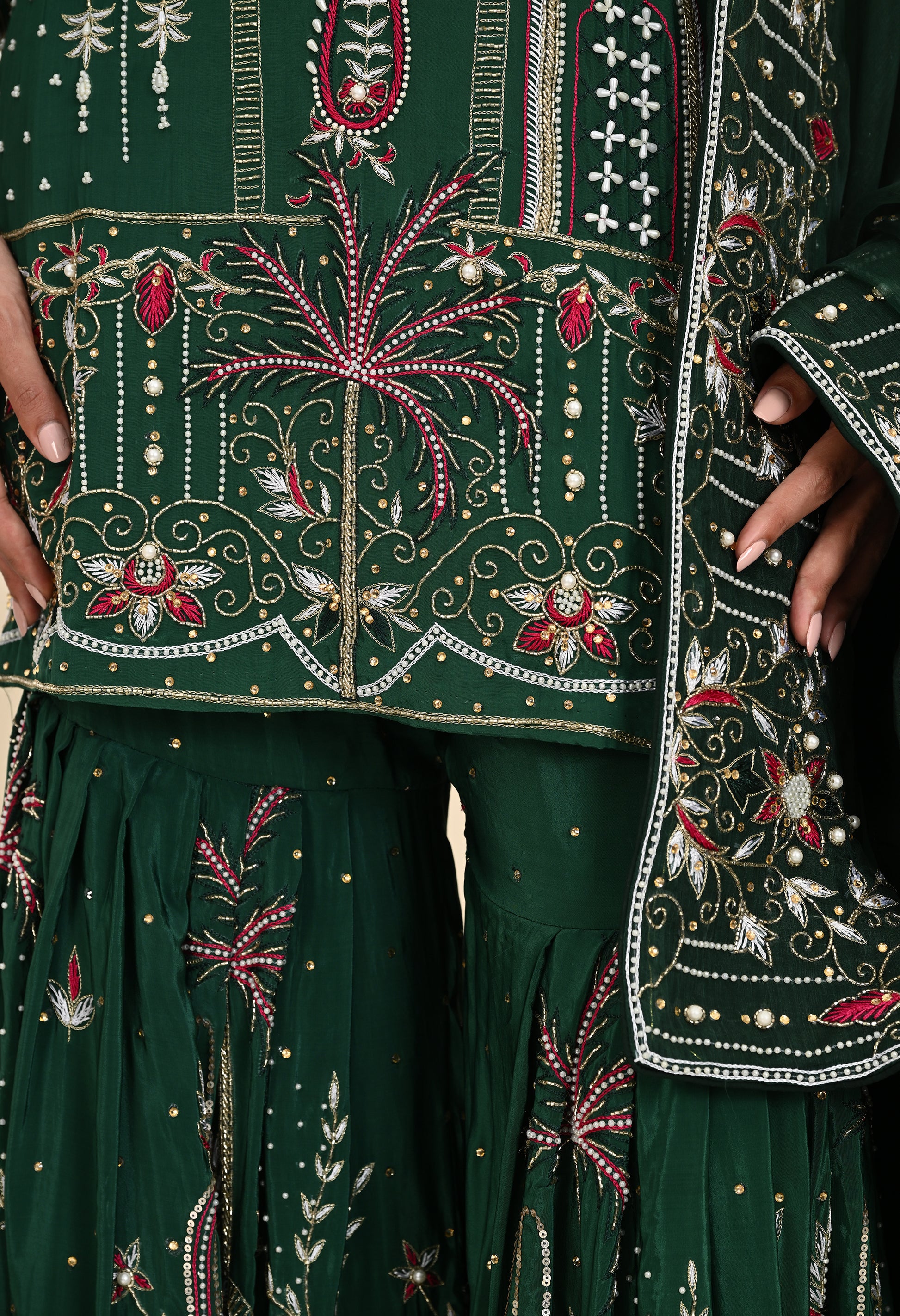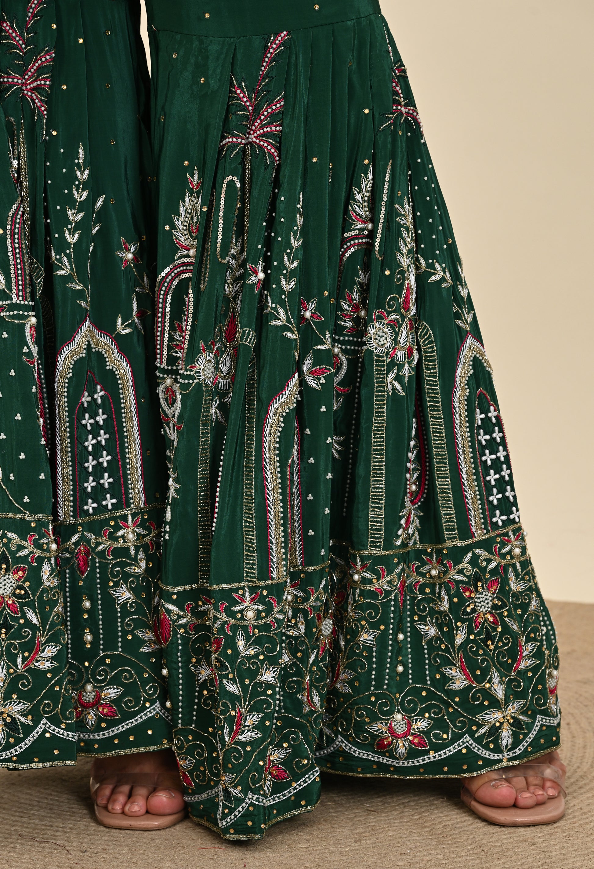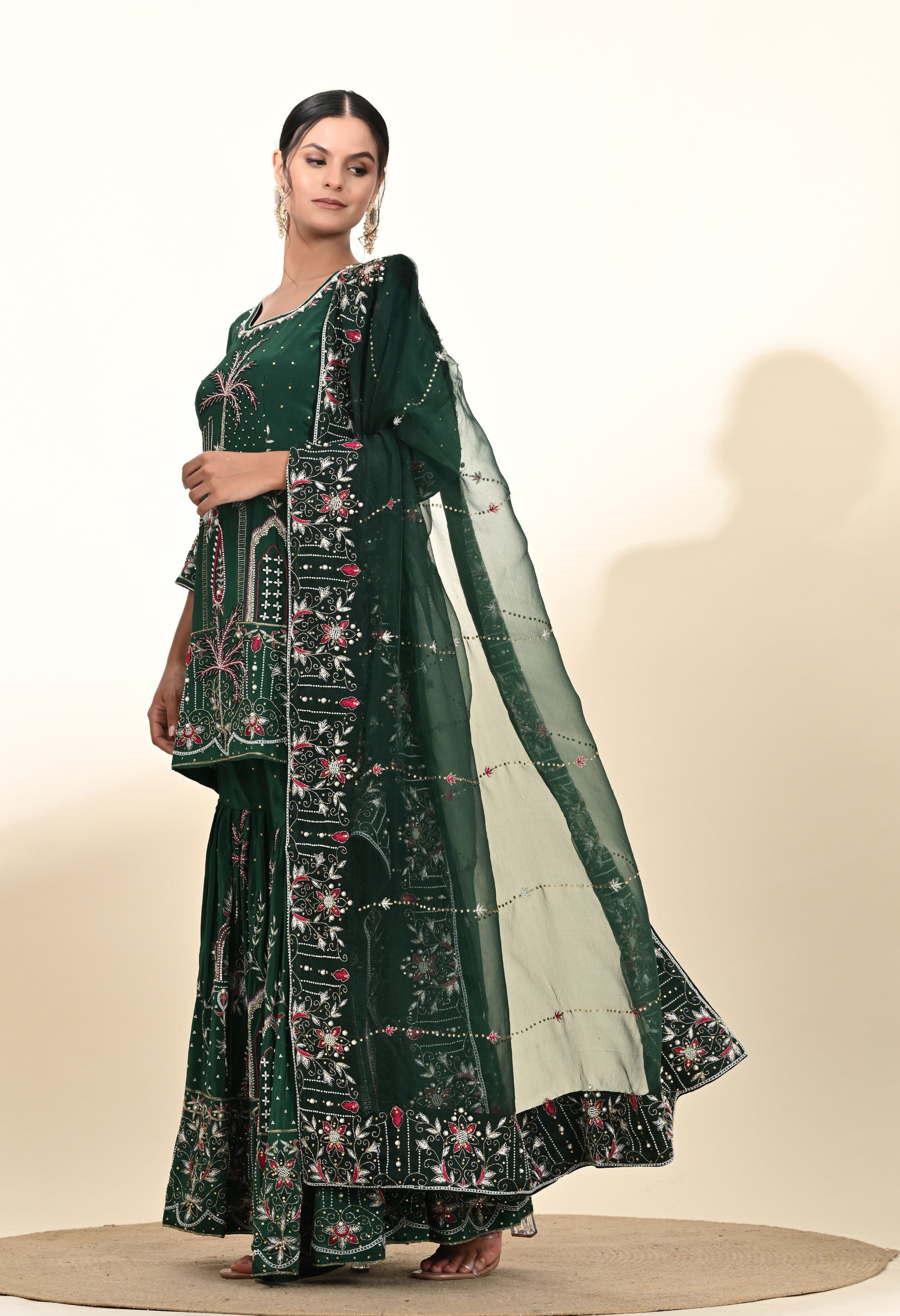 Royal Bottle Green Sharara Set with Exquisite Zardozi Embroidery