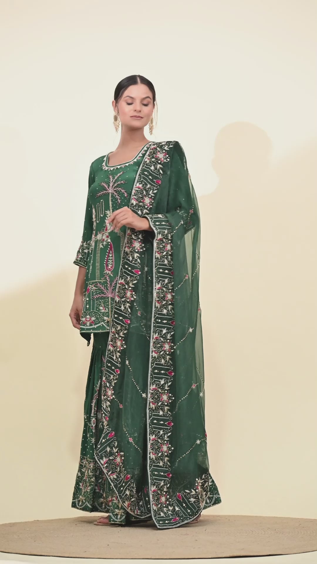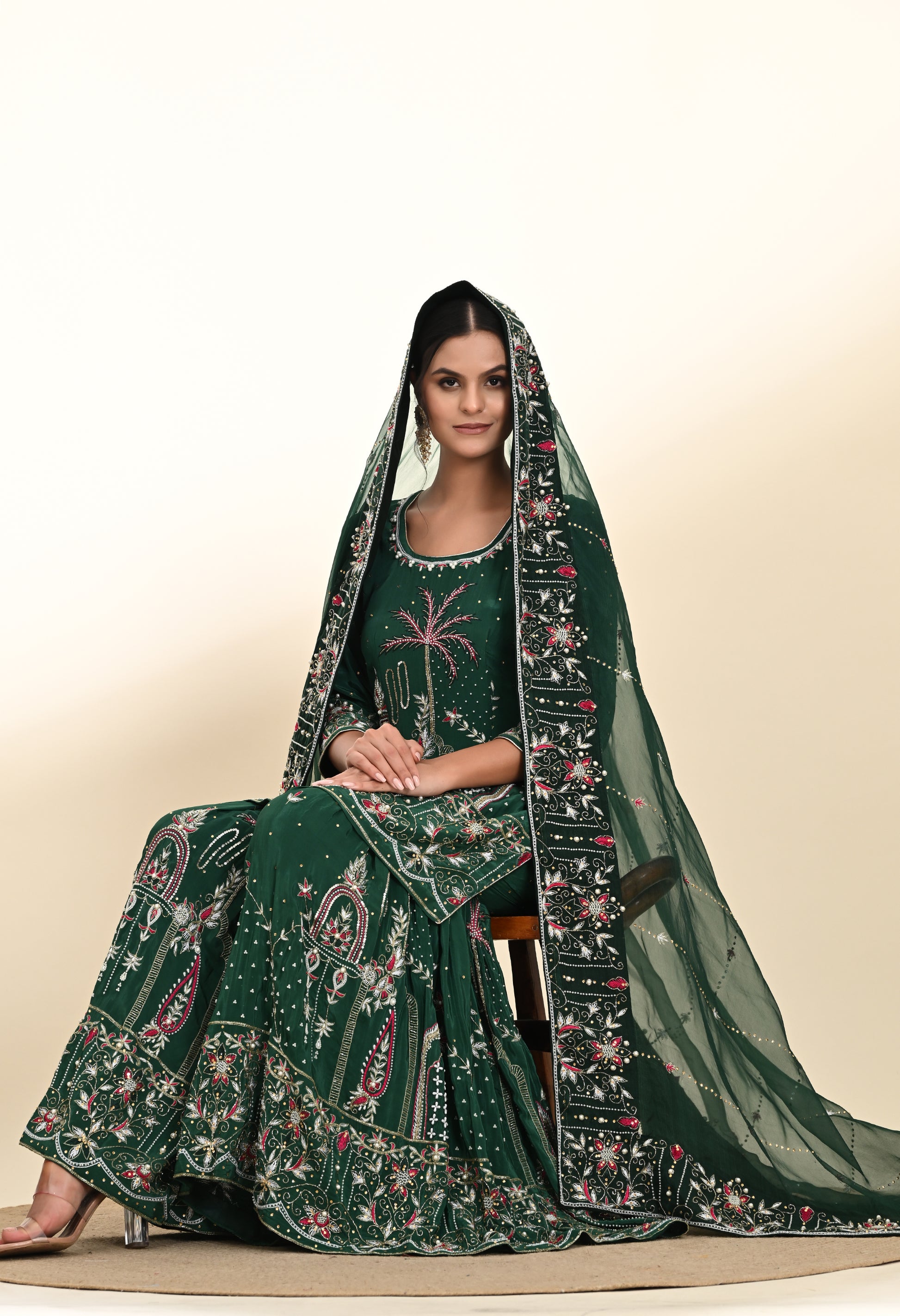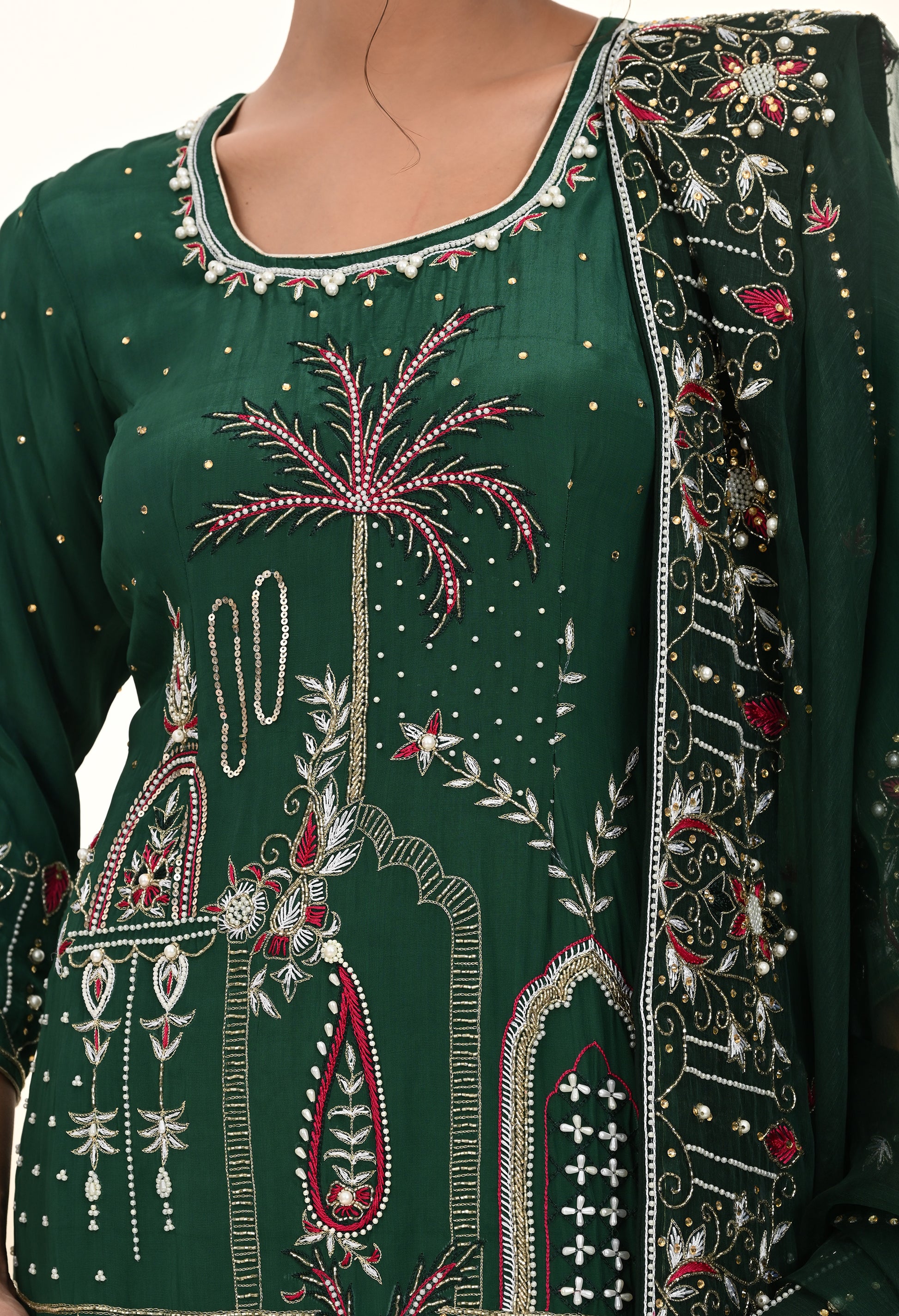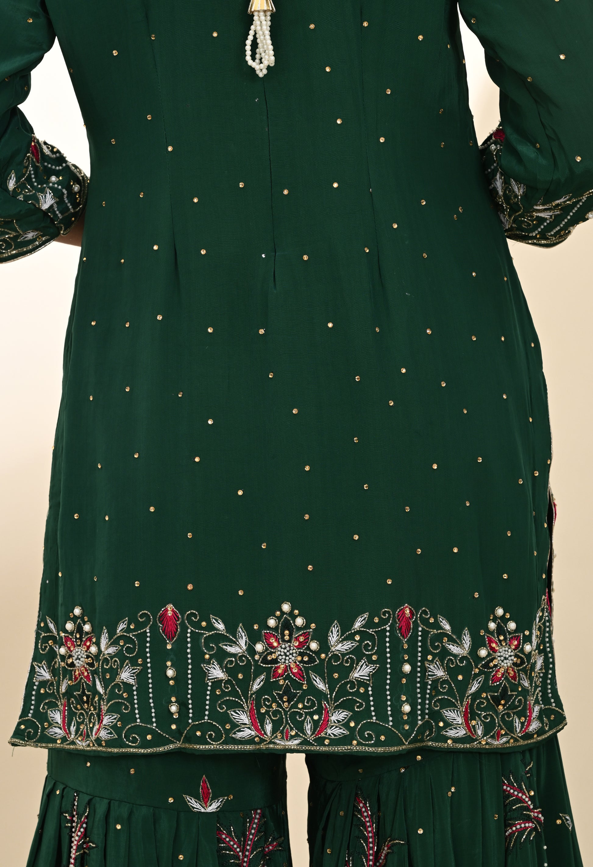 Royal Bottle Green Sharara Set with Exquisite Zardozi Embroidery