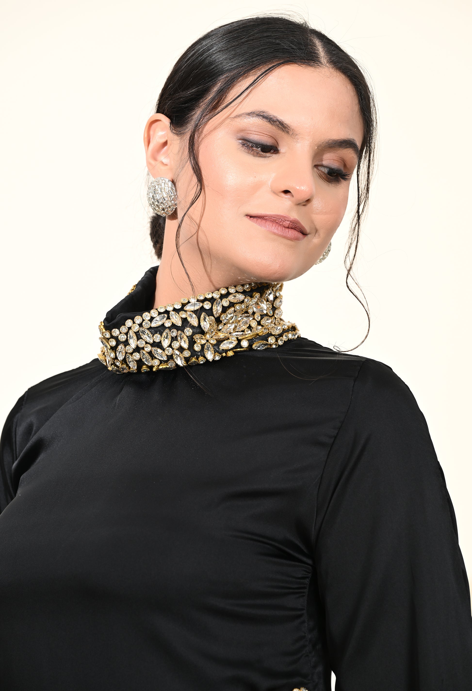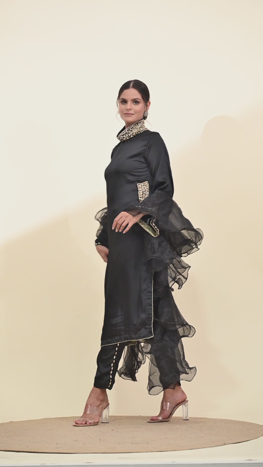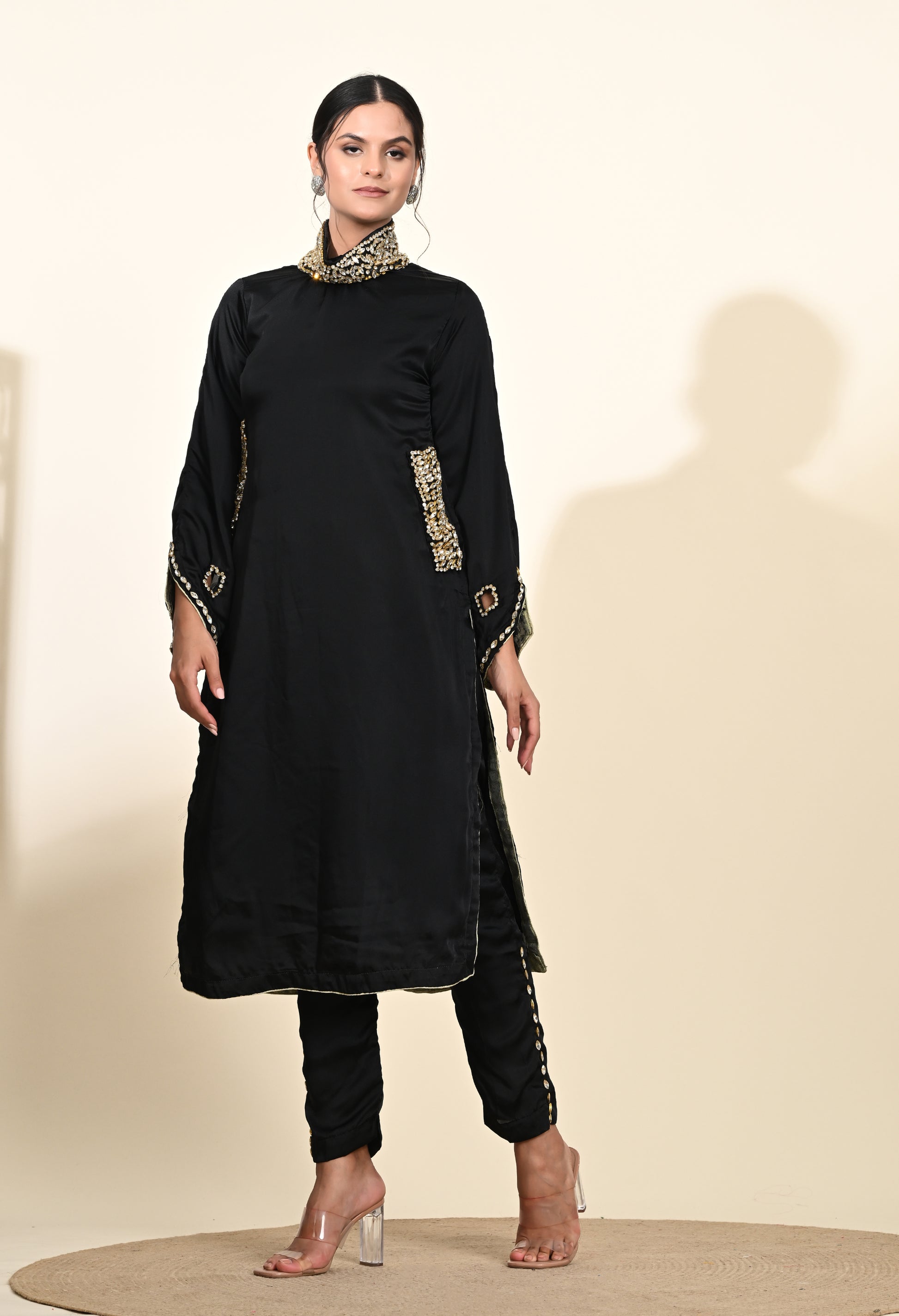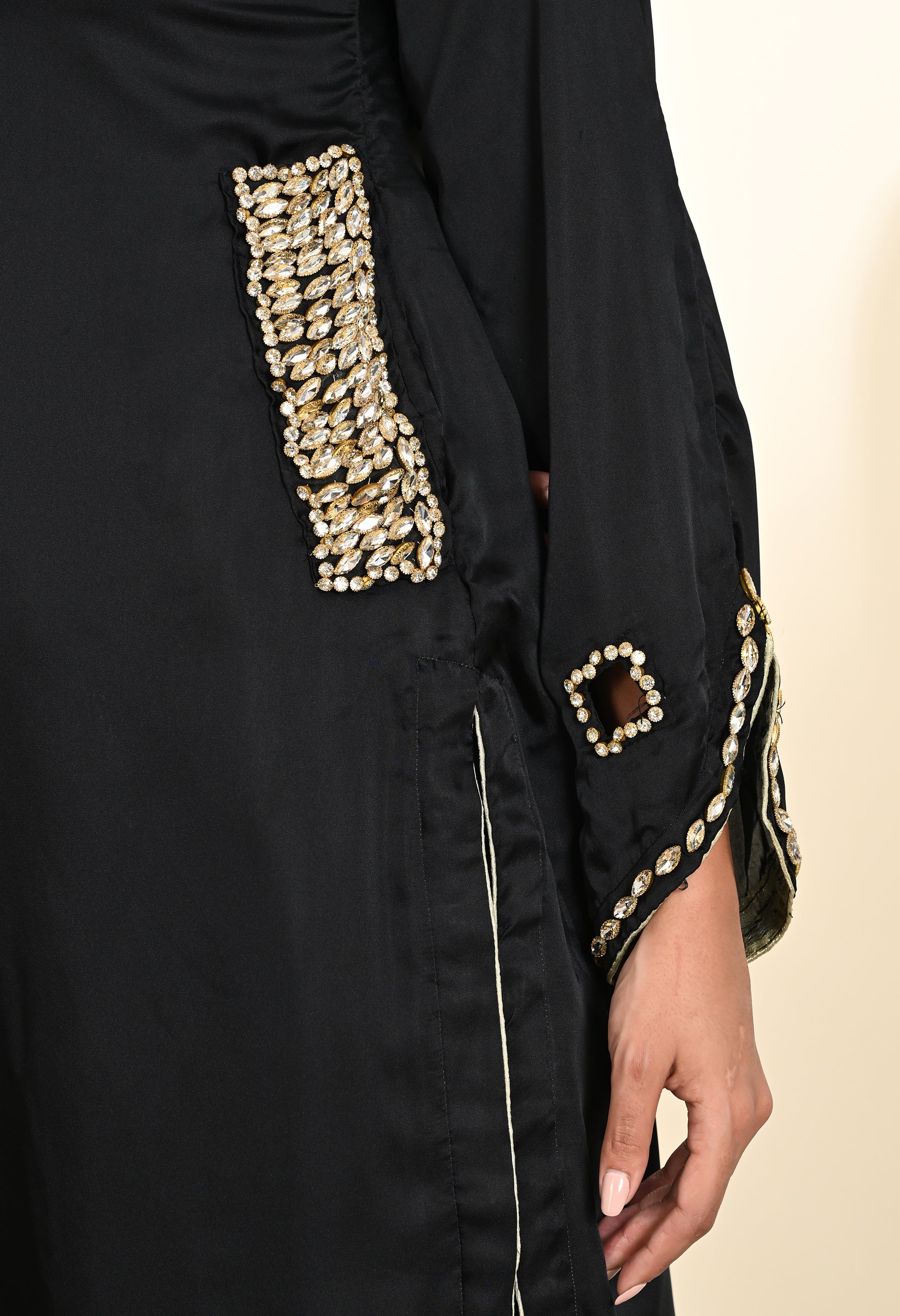 Sophisticated Black Kurta Set with Exquisite Crystal Embroidery