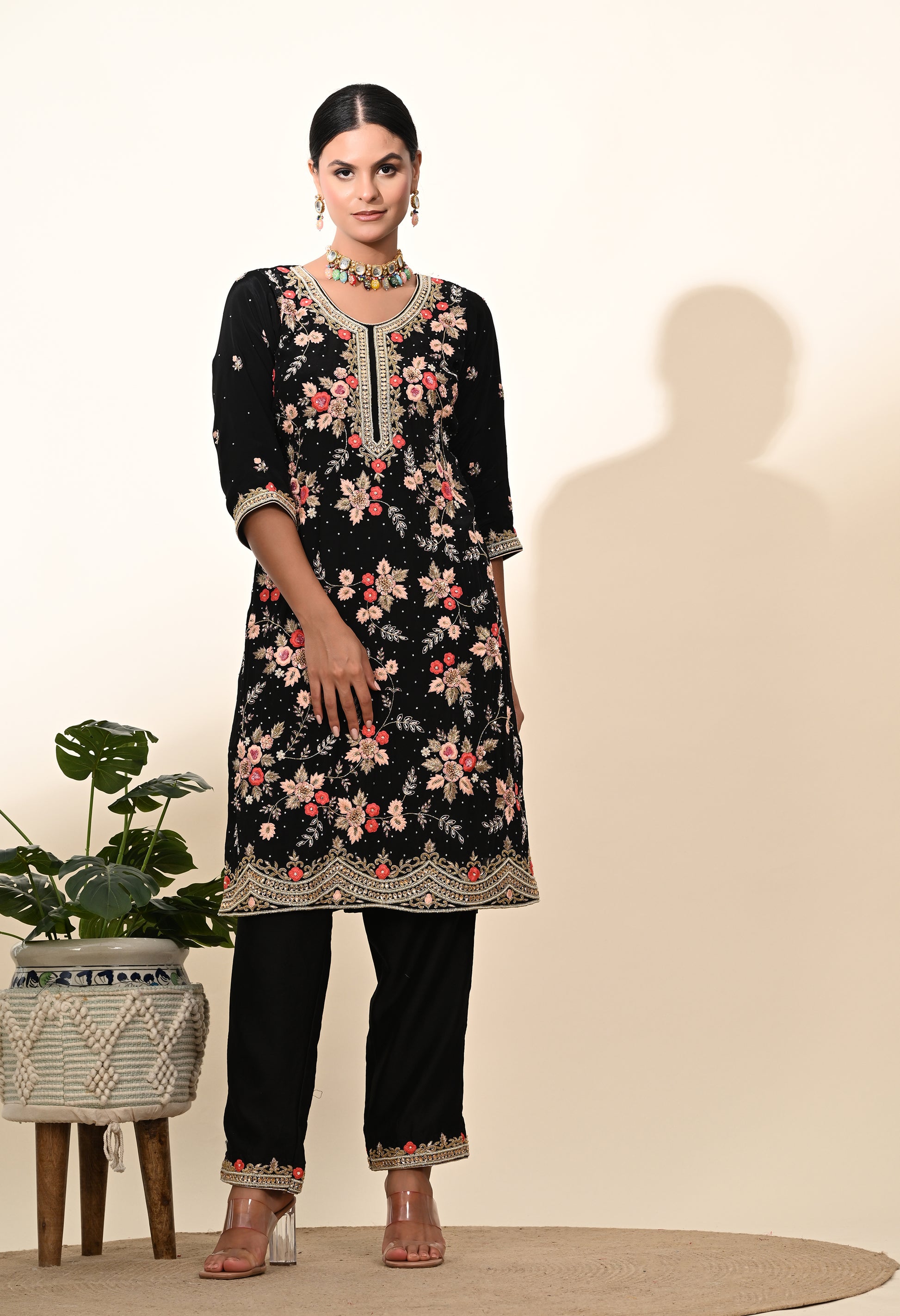 Striking Black Kurta Set with Elegant Zardozi Embroidery