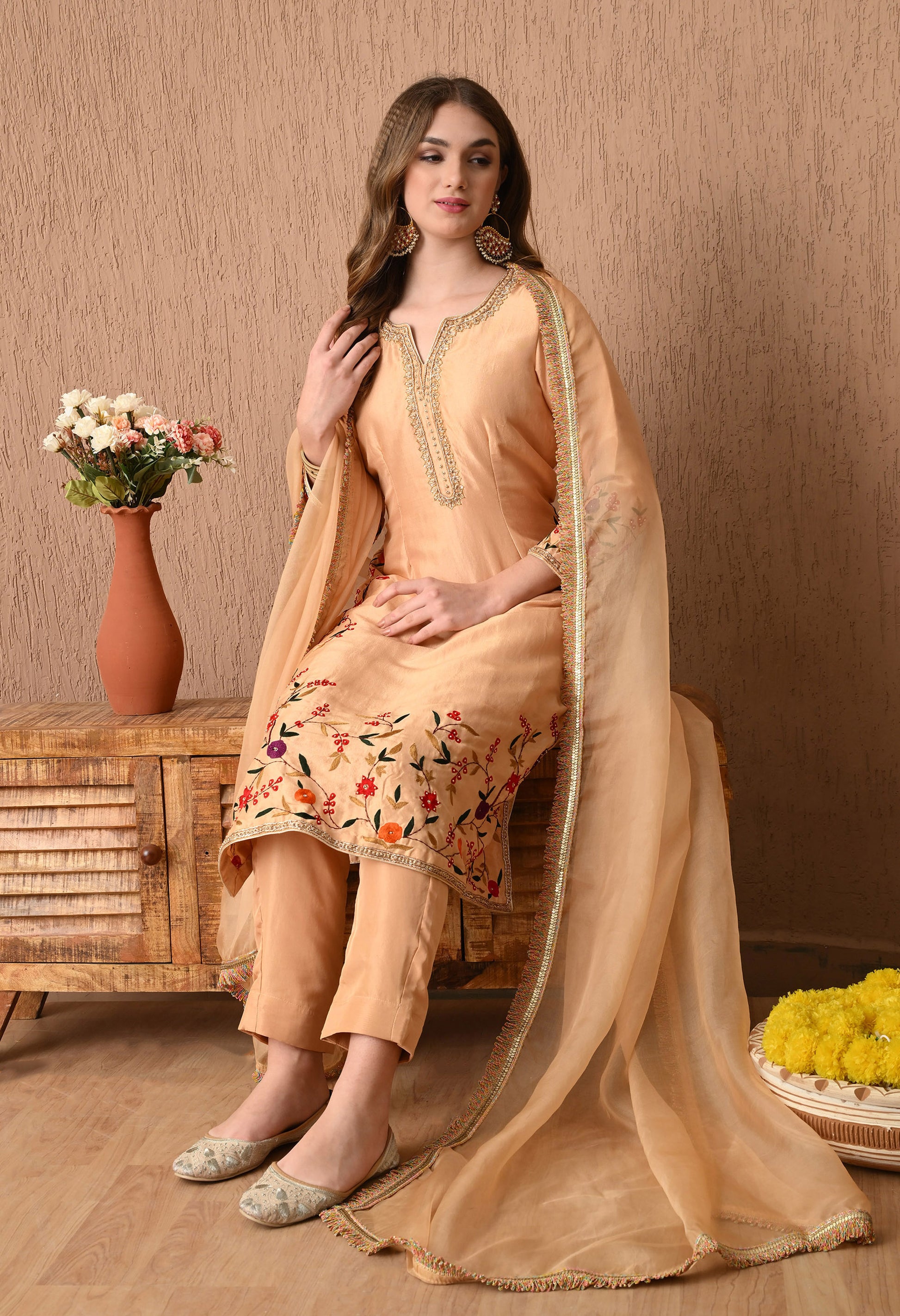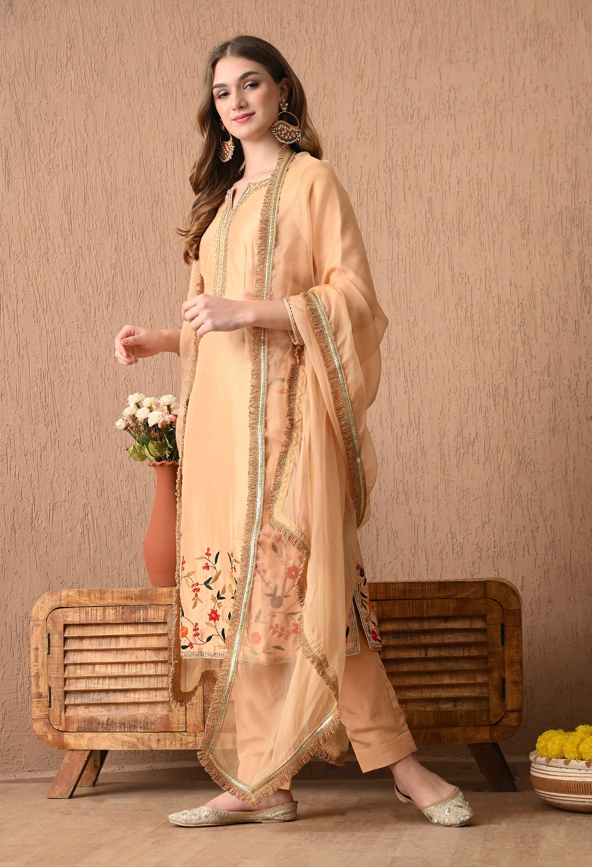 Components: Kurta, Dupatta, and Straight Pant