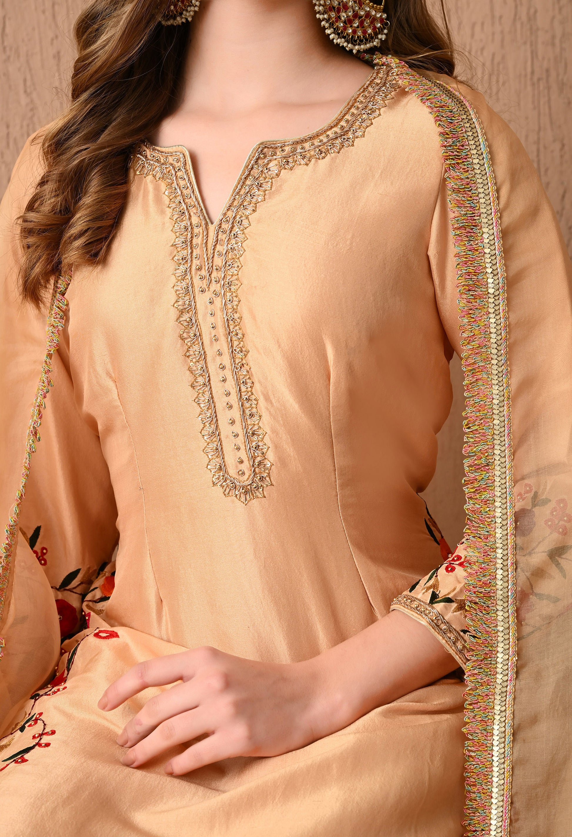 - Zardozi works on the Neck