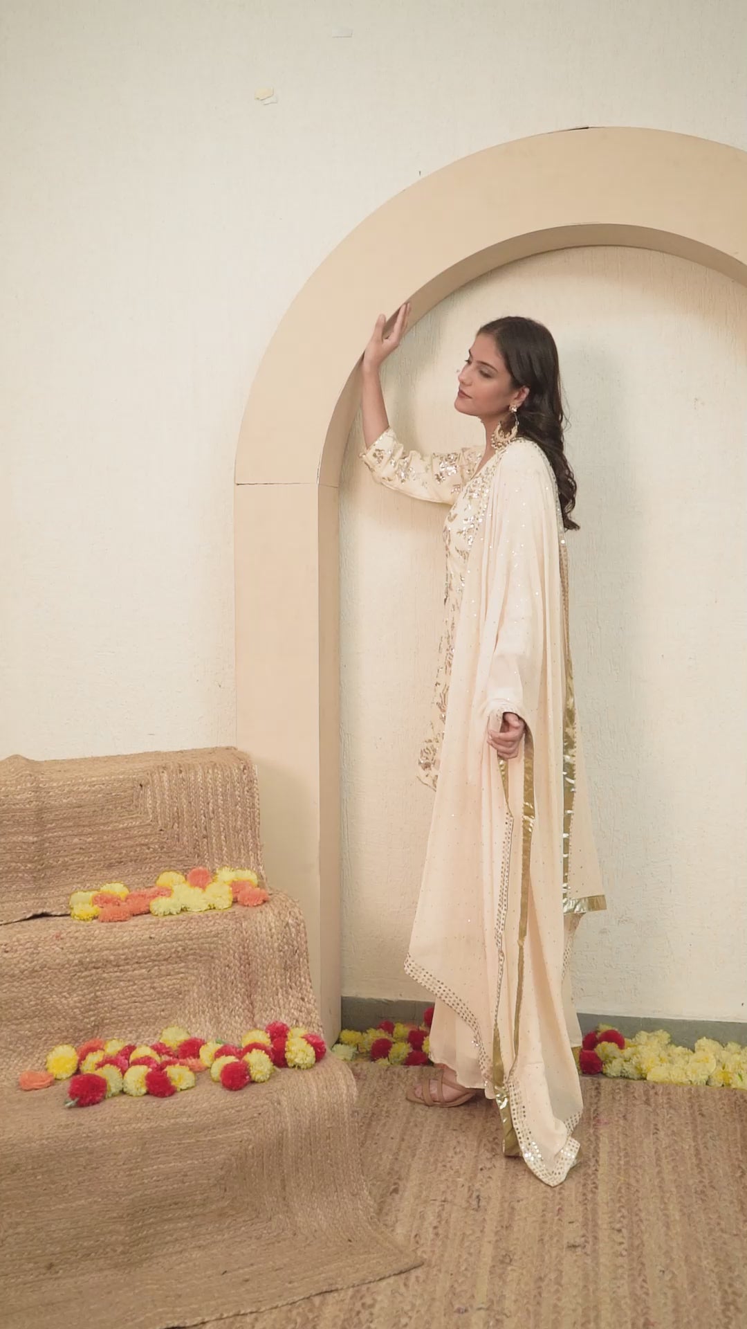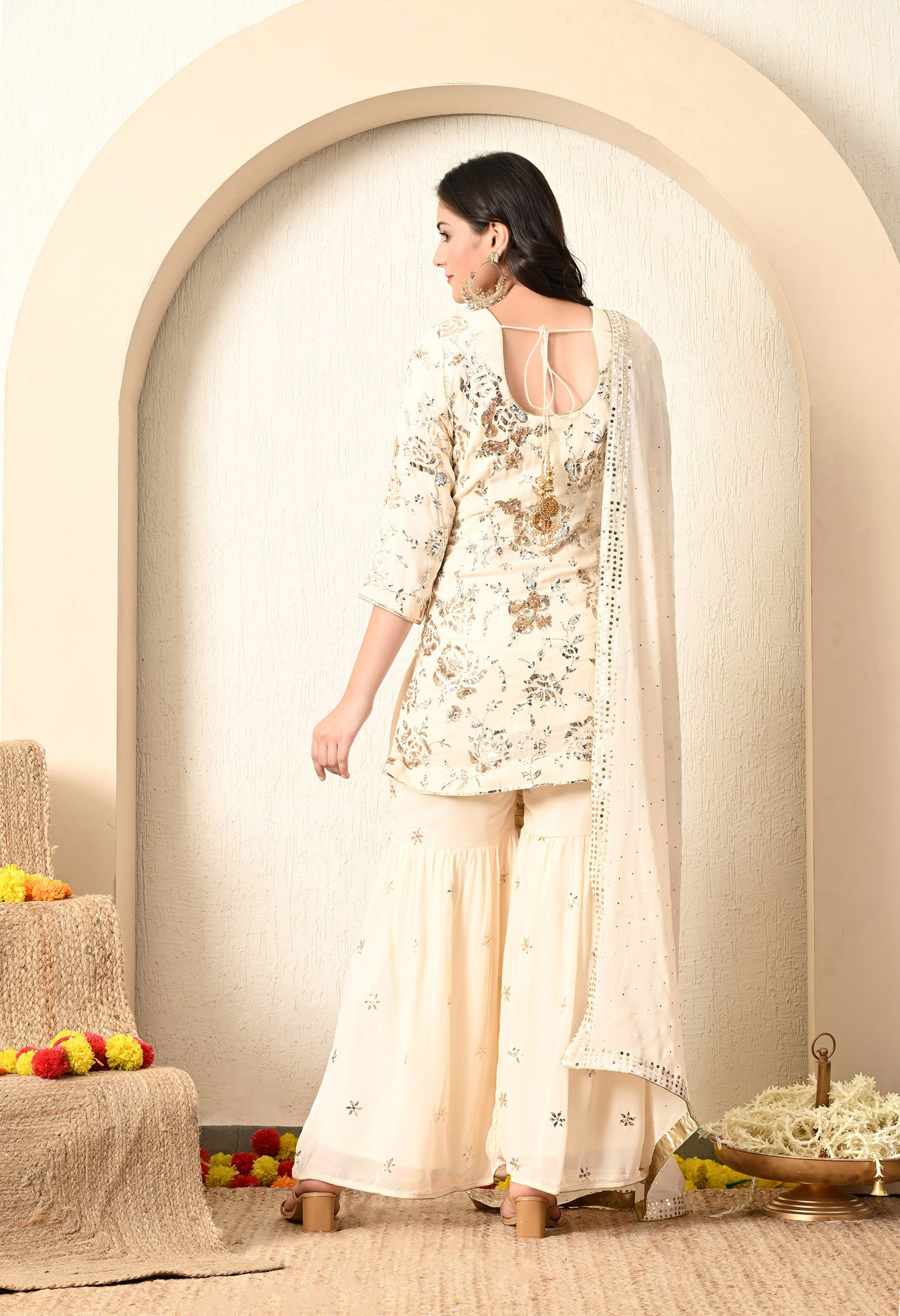 Subtle Cream Gharara Set with beautiful Mukaish Work