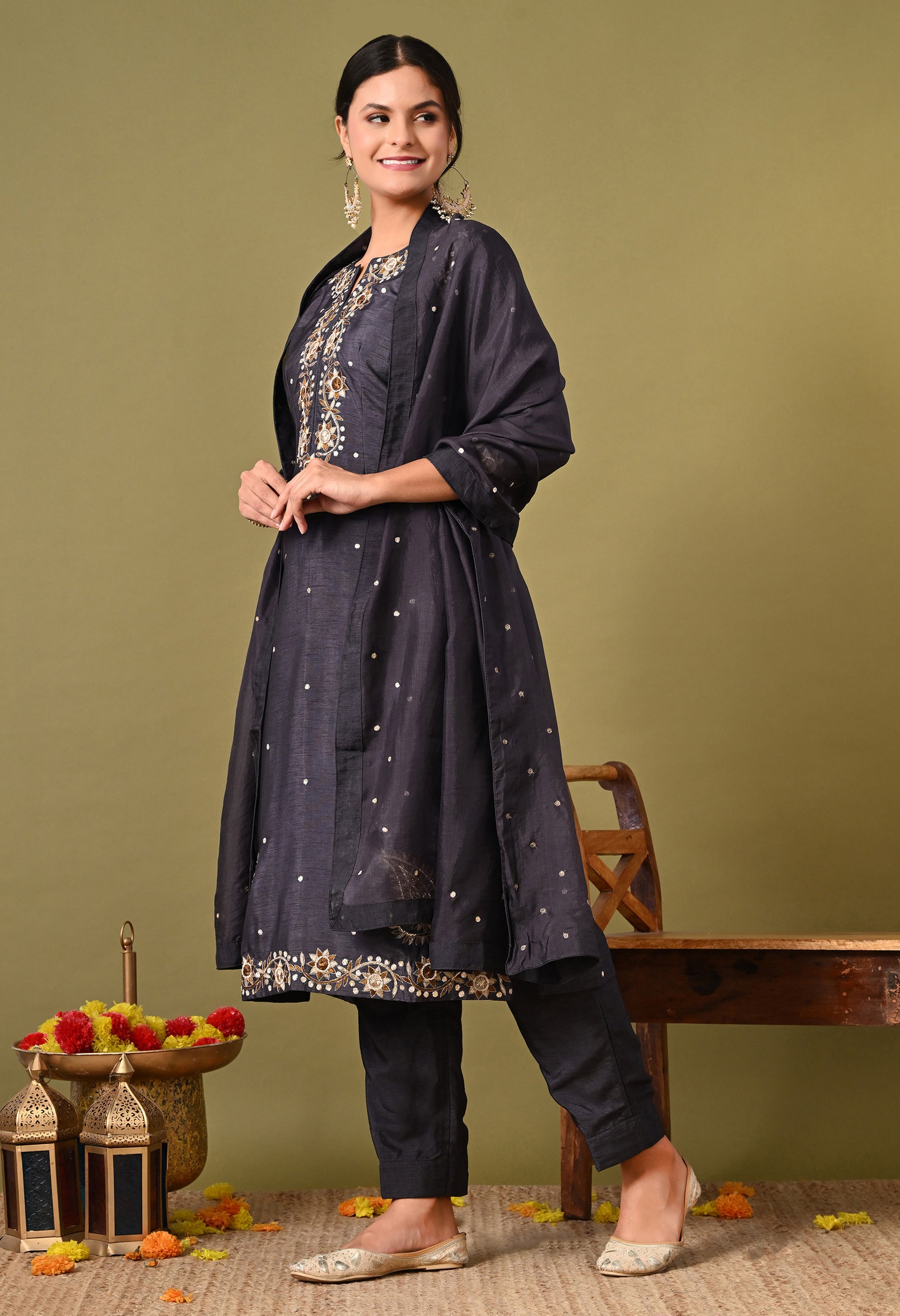 Subtle Dark Grey Kurta Set with Intricate Mukaish Work