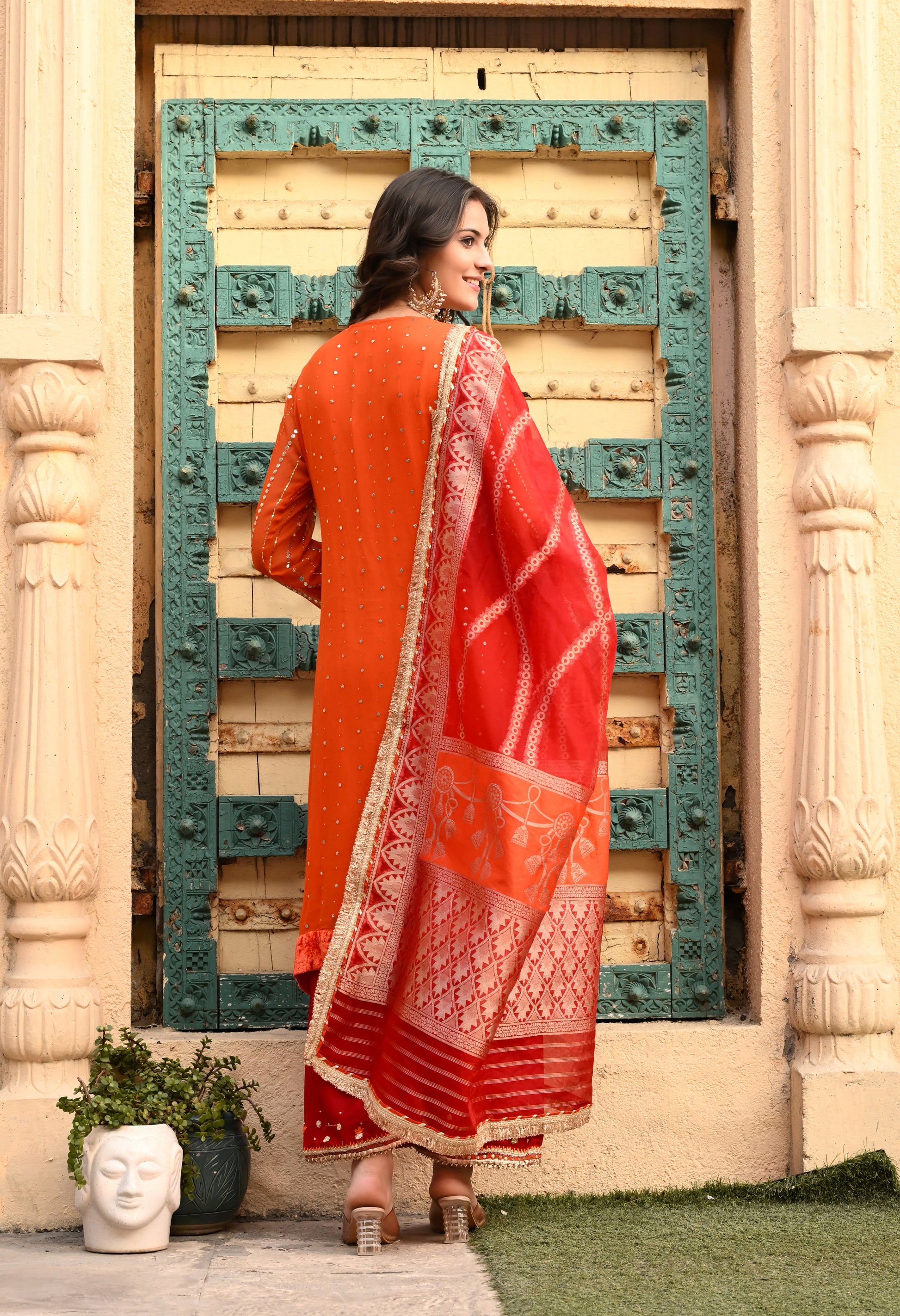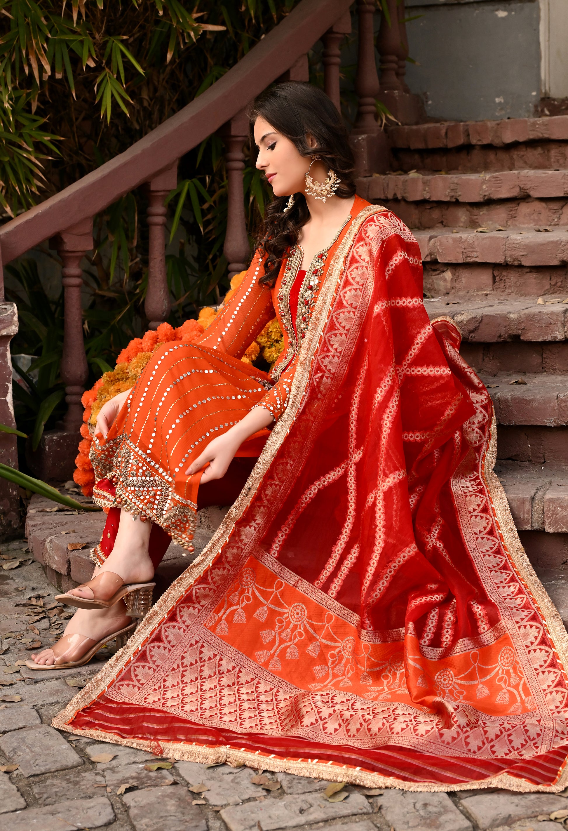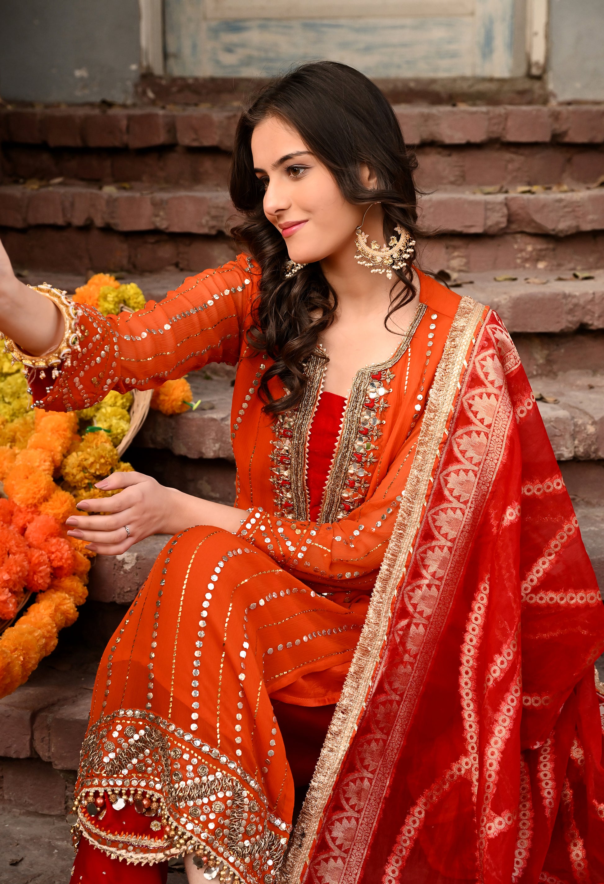 Timeless Orange / Green Kurta Set with Gotta, Sequence, Kora, and Dabka Work