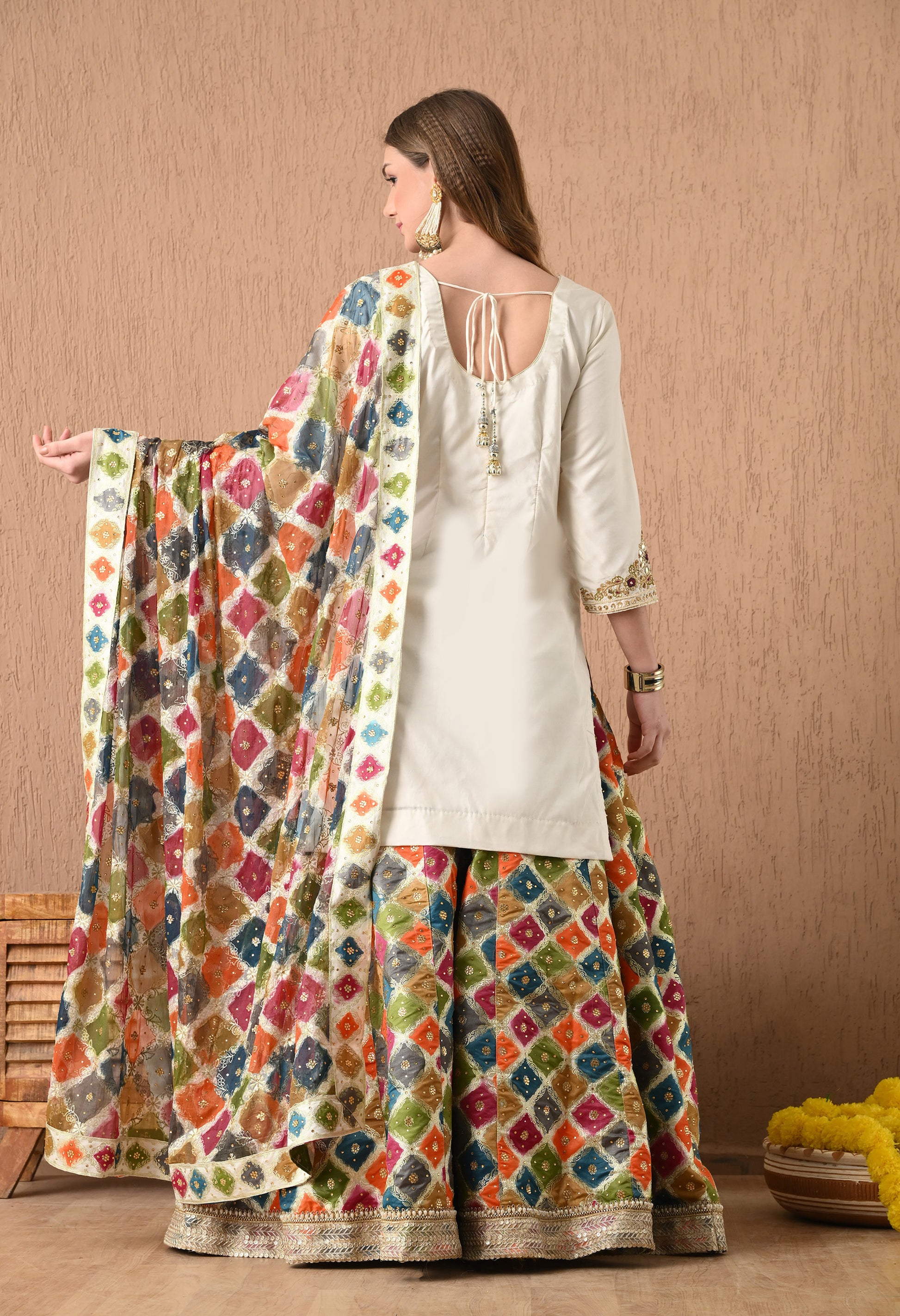 - Multi-colored Chatapatti Dupatta with crystal work.
