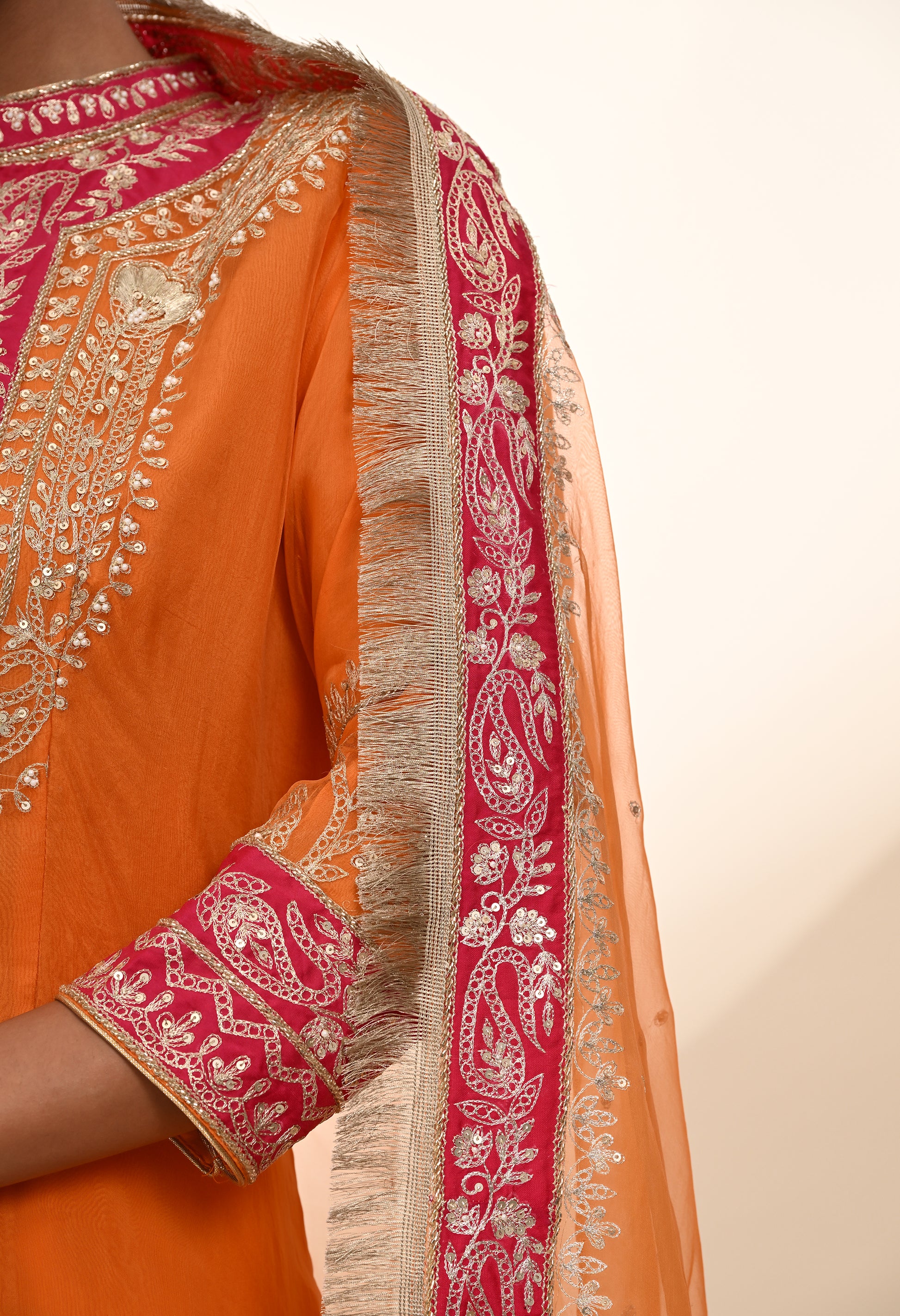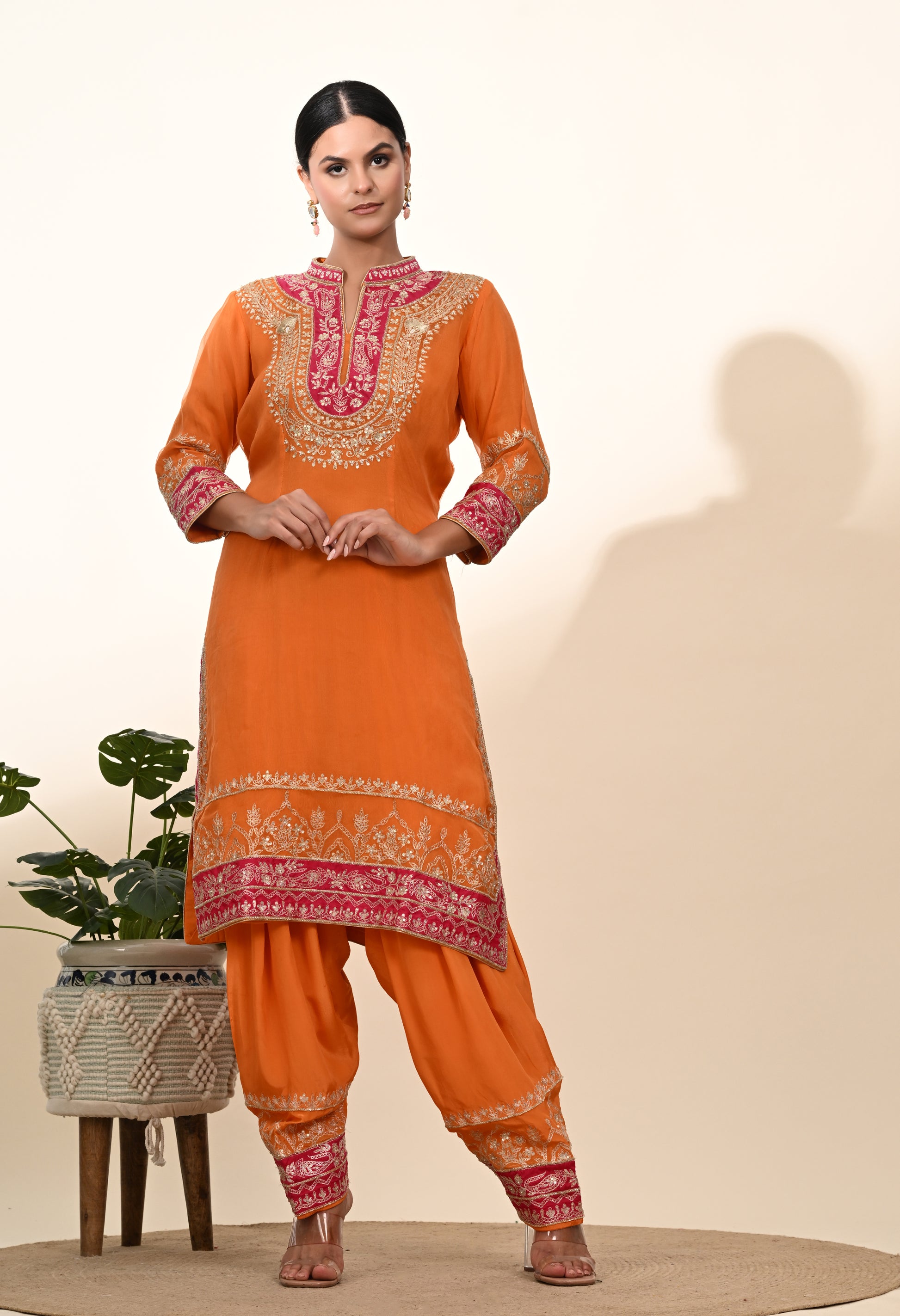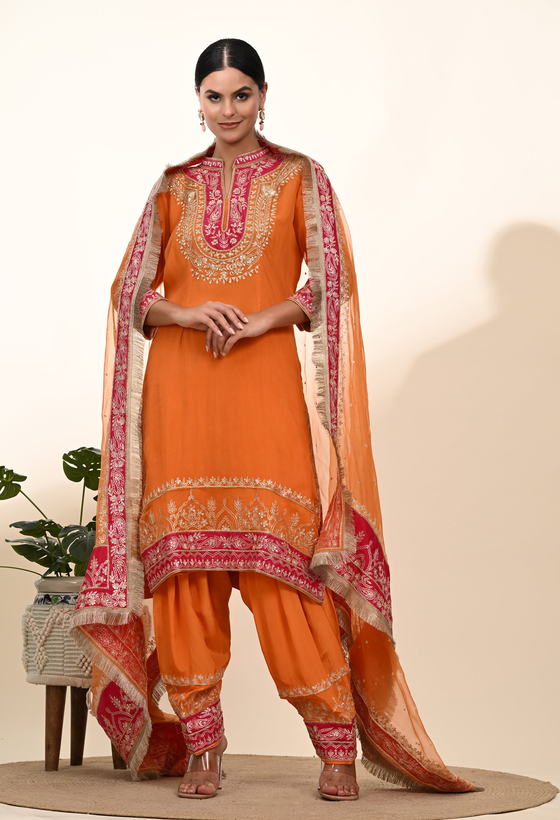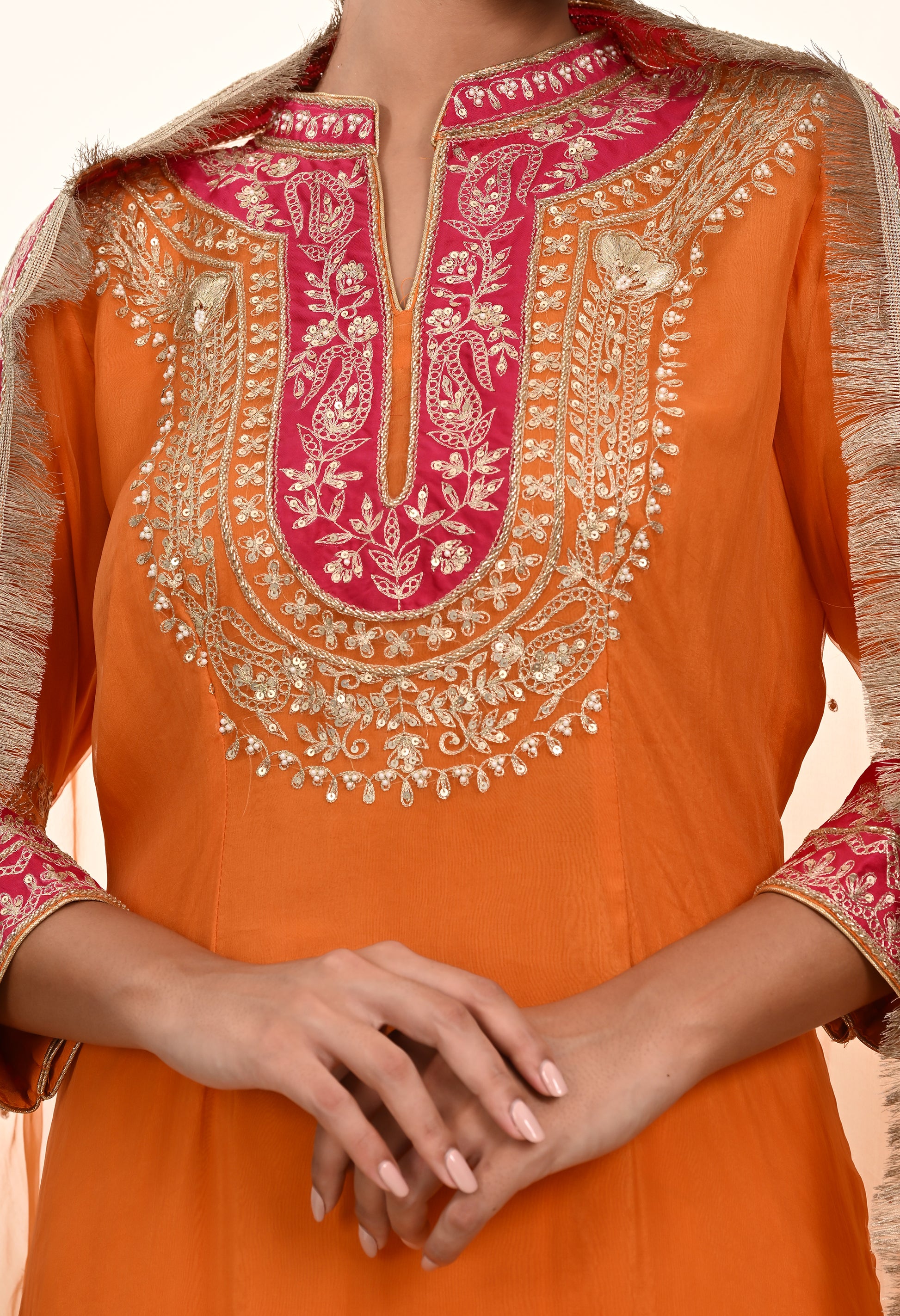 Vibrant Orange Kurta Set with Exquisite Zardozi Embroidery