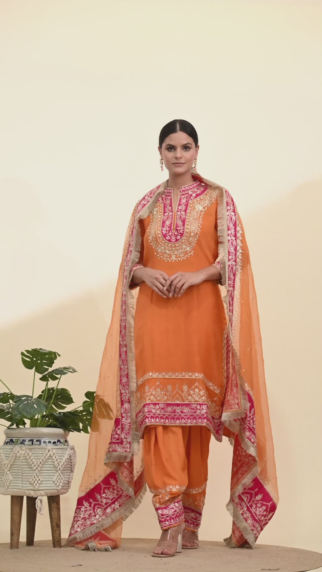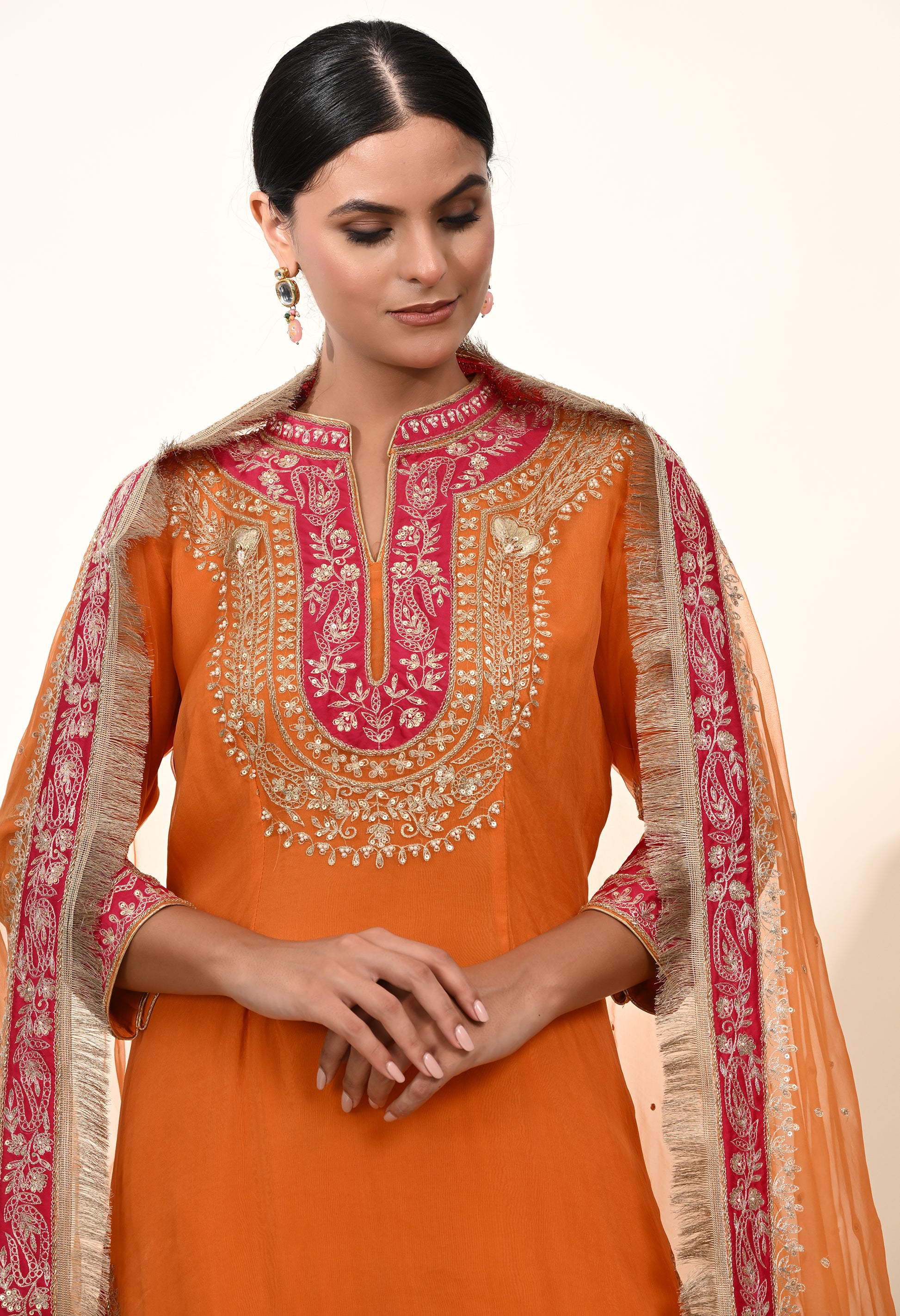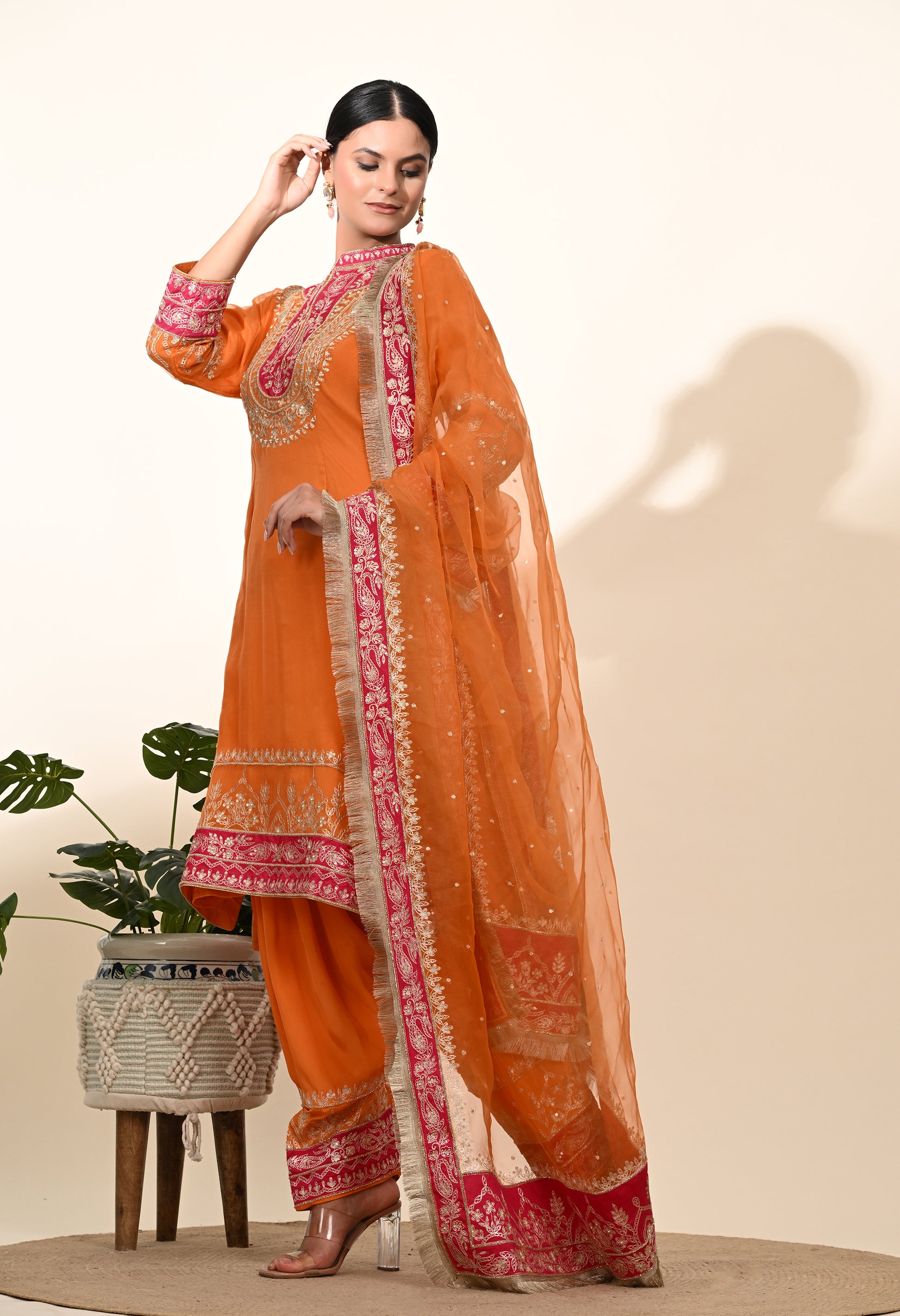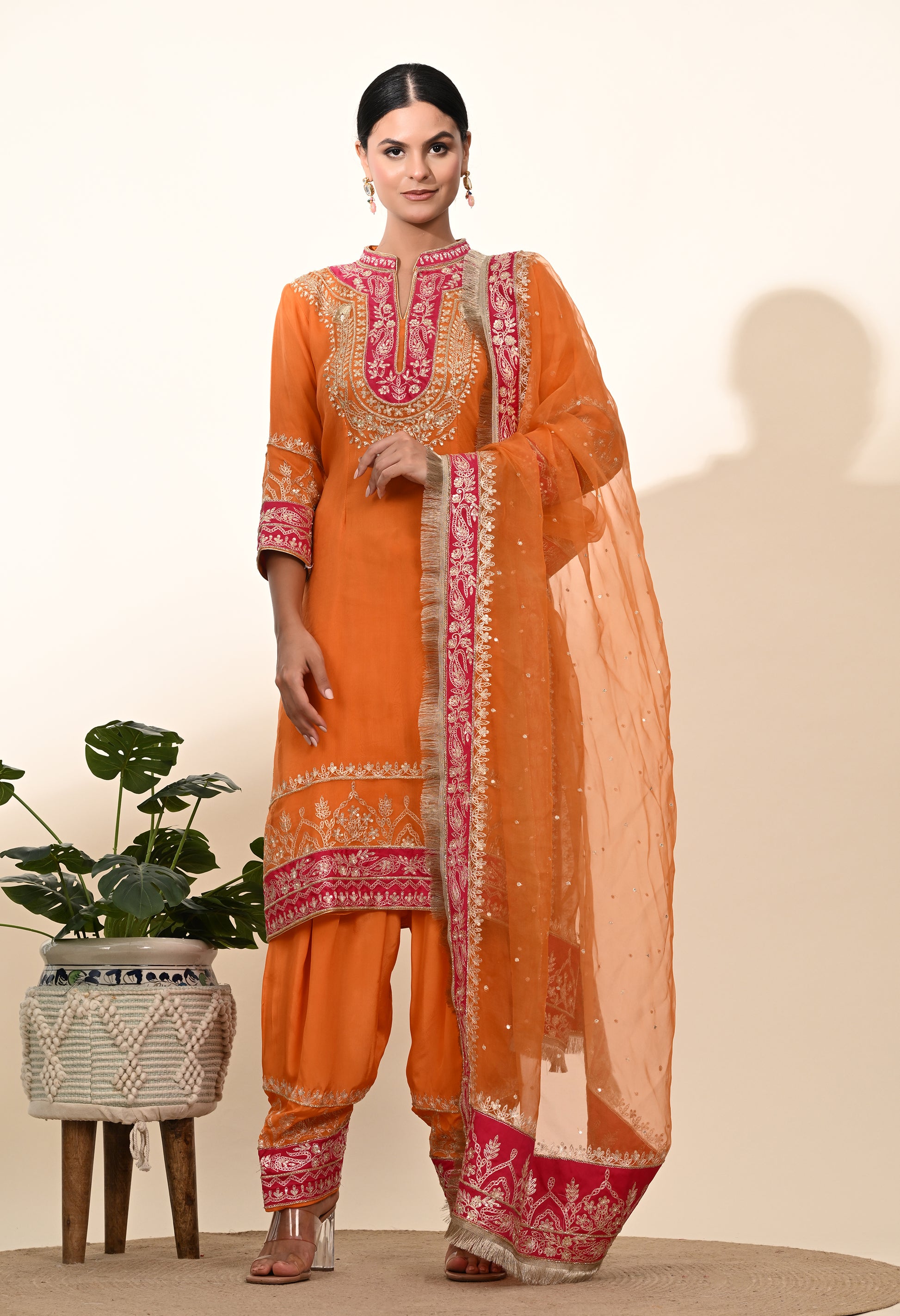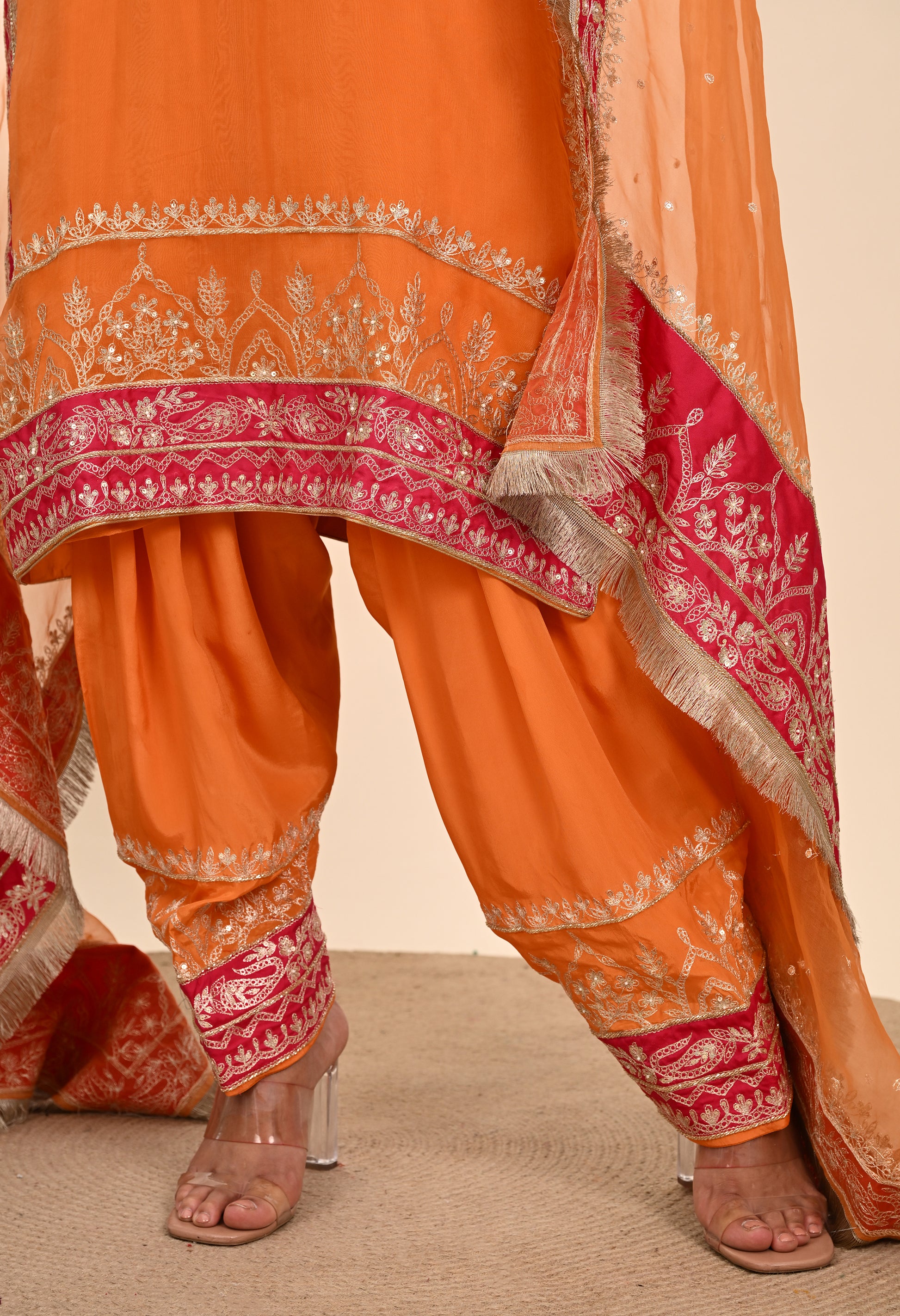 Vibrant Orange Kurta Set with Exquisite Zardozi Embroidery