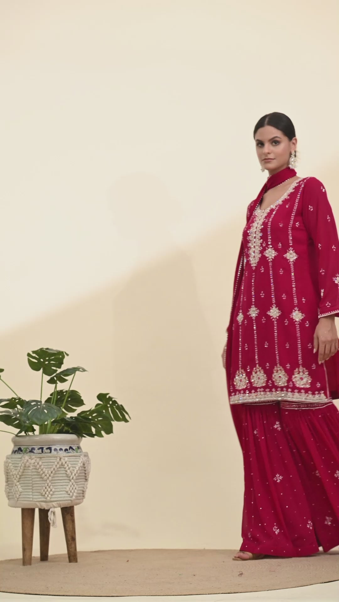 Vibrant Pink Magenta Georgette Sharara Set with Thread and Crystal Embroidery